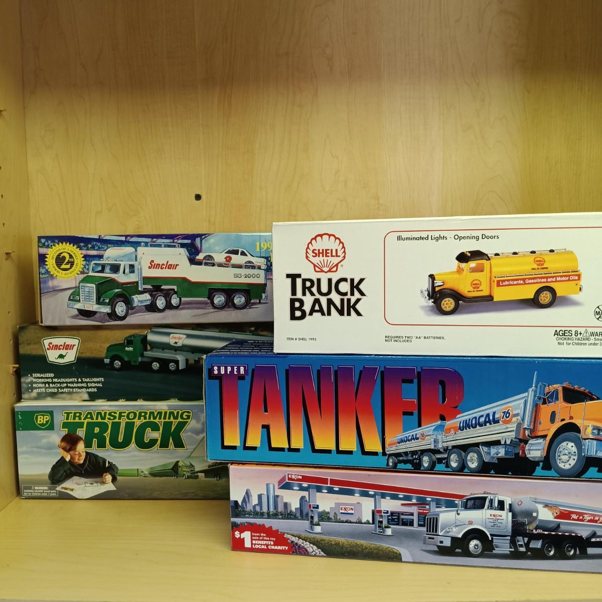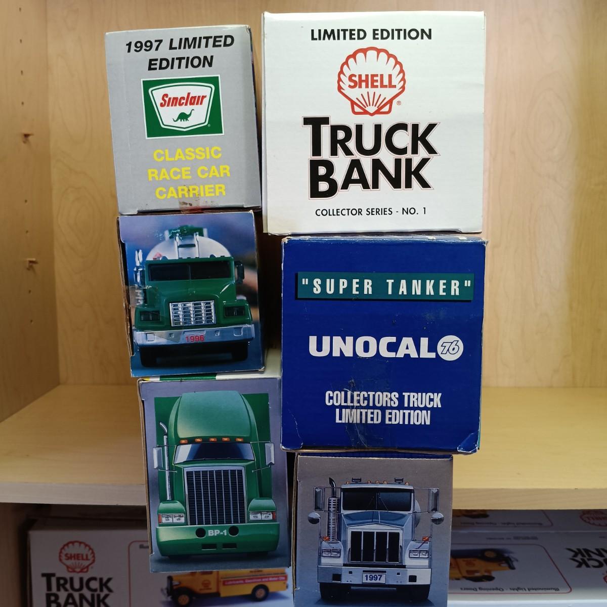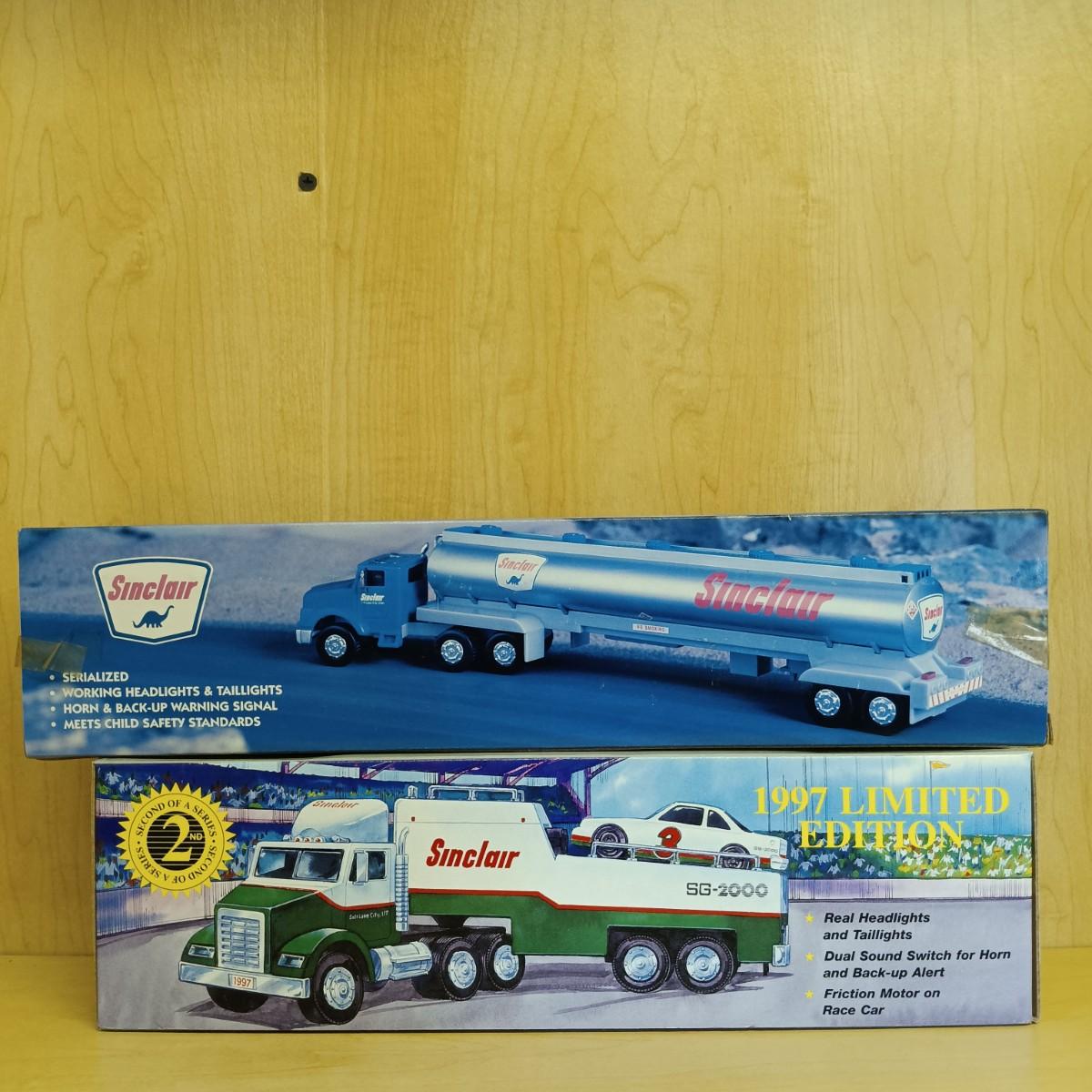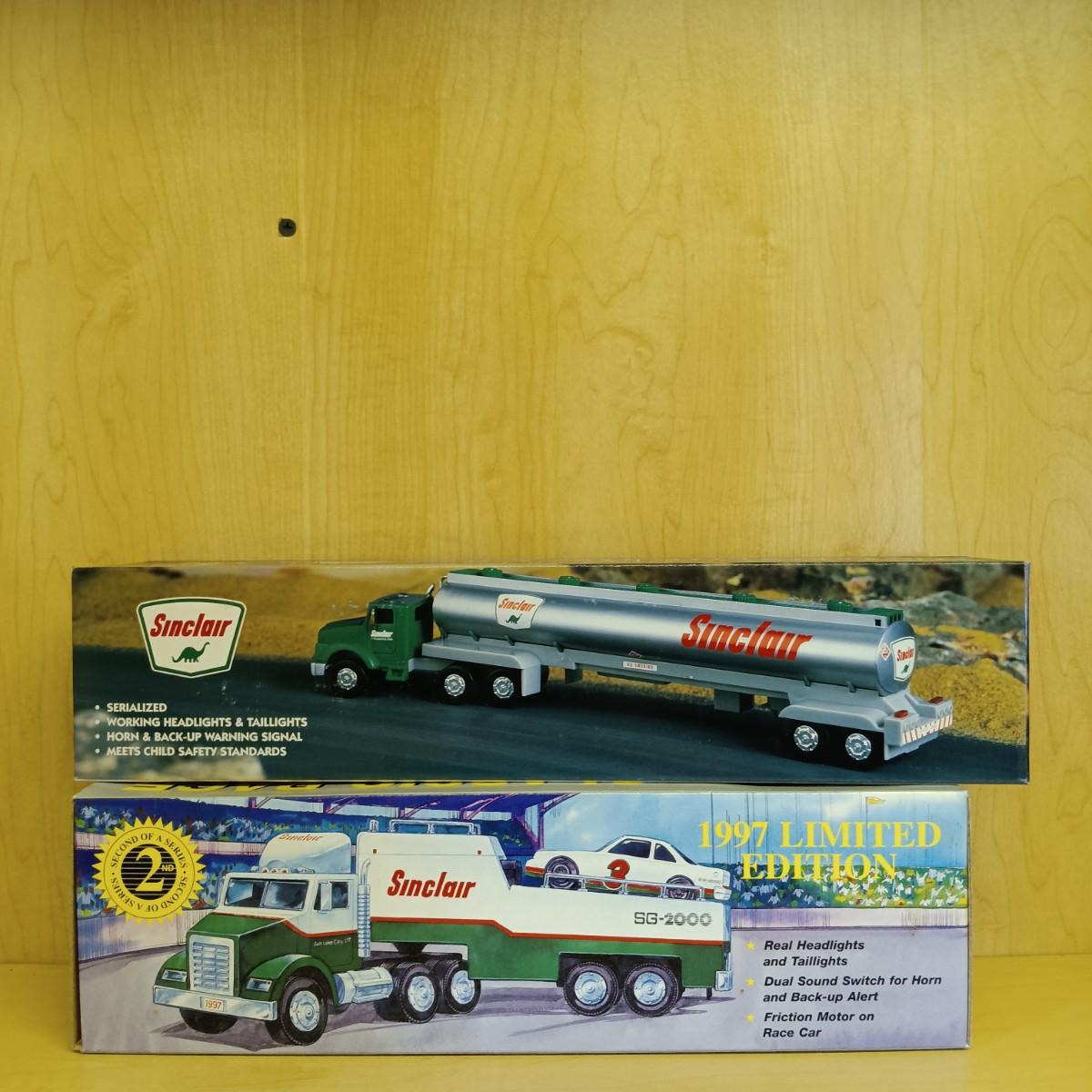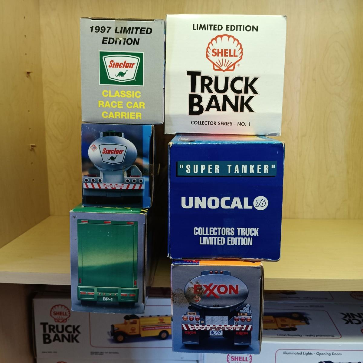 LOT 20: Limited Edition 1997 Sinclair Race Car Carrier, 1997 BP Transforming Truck, Shell Truck Bank & More