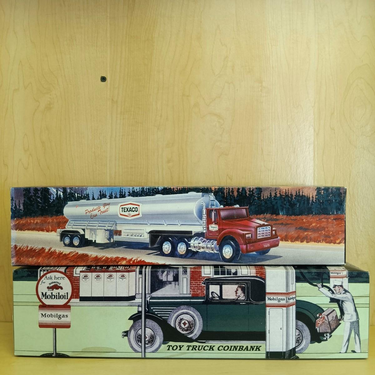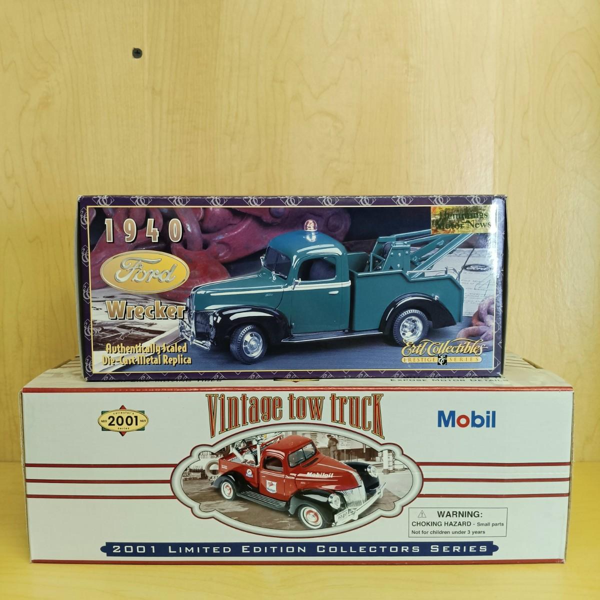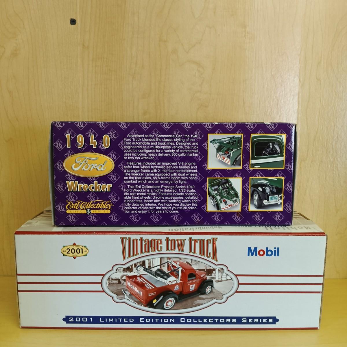 LOT 22: Diecast 1940 Ford Wrecker Replica, Lube Oil Legends Mobil Tanker Truck (Only 5,000 Made), Shell Toy Tow Truck & More