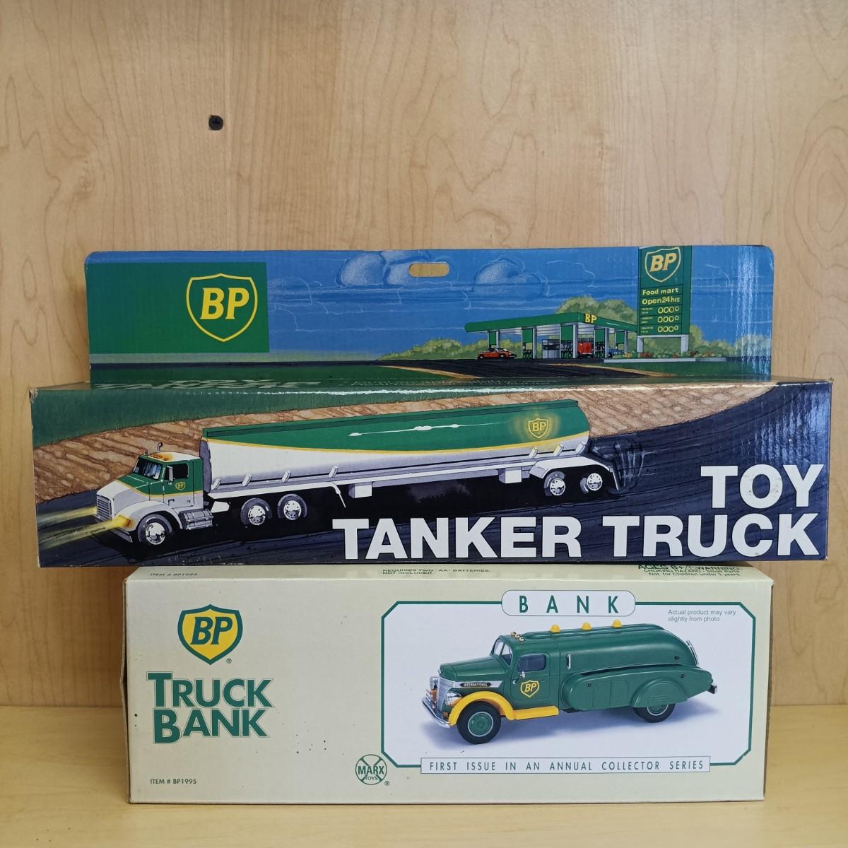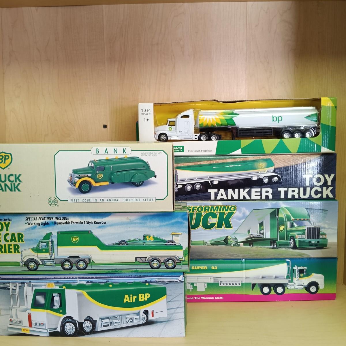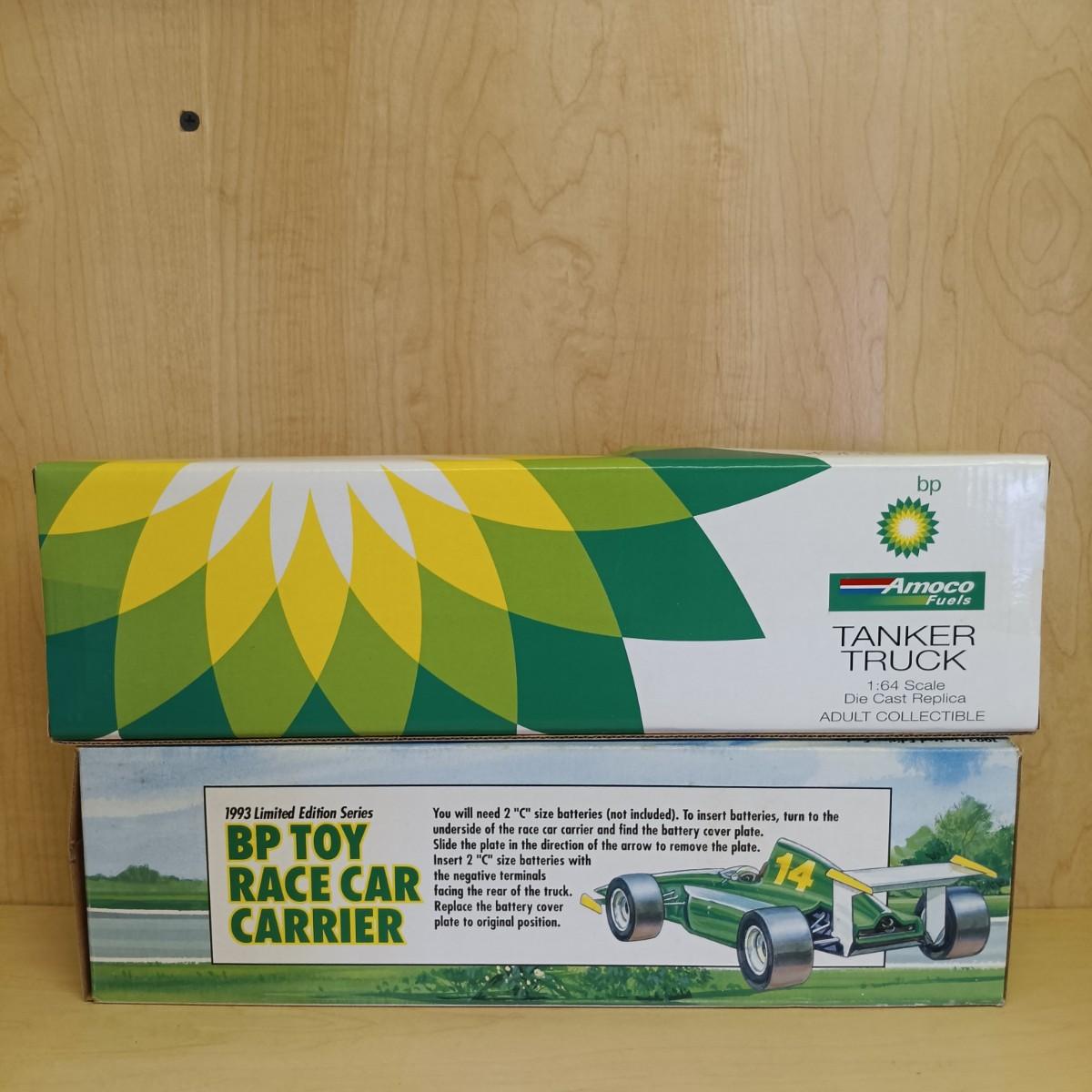 LOT 29: Diecast BP Tanker Truck, 1993 Lim. Ed. BP Race Car Carrier, BP Truck Bank & More