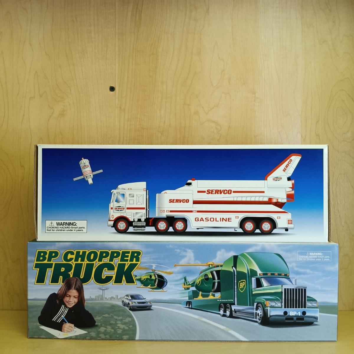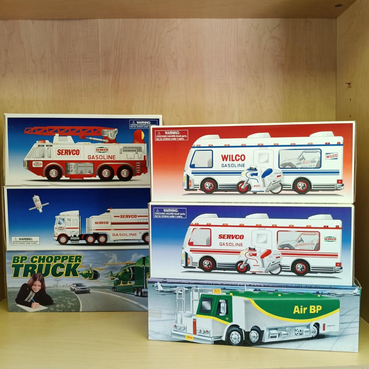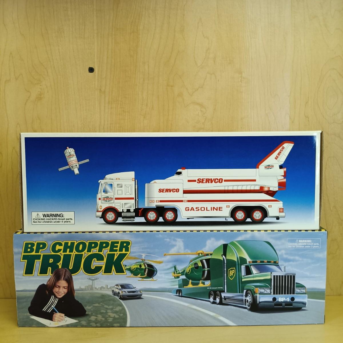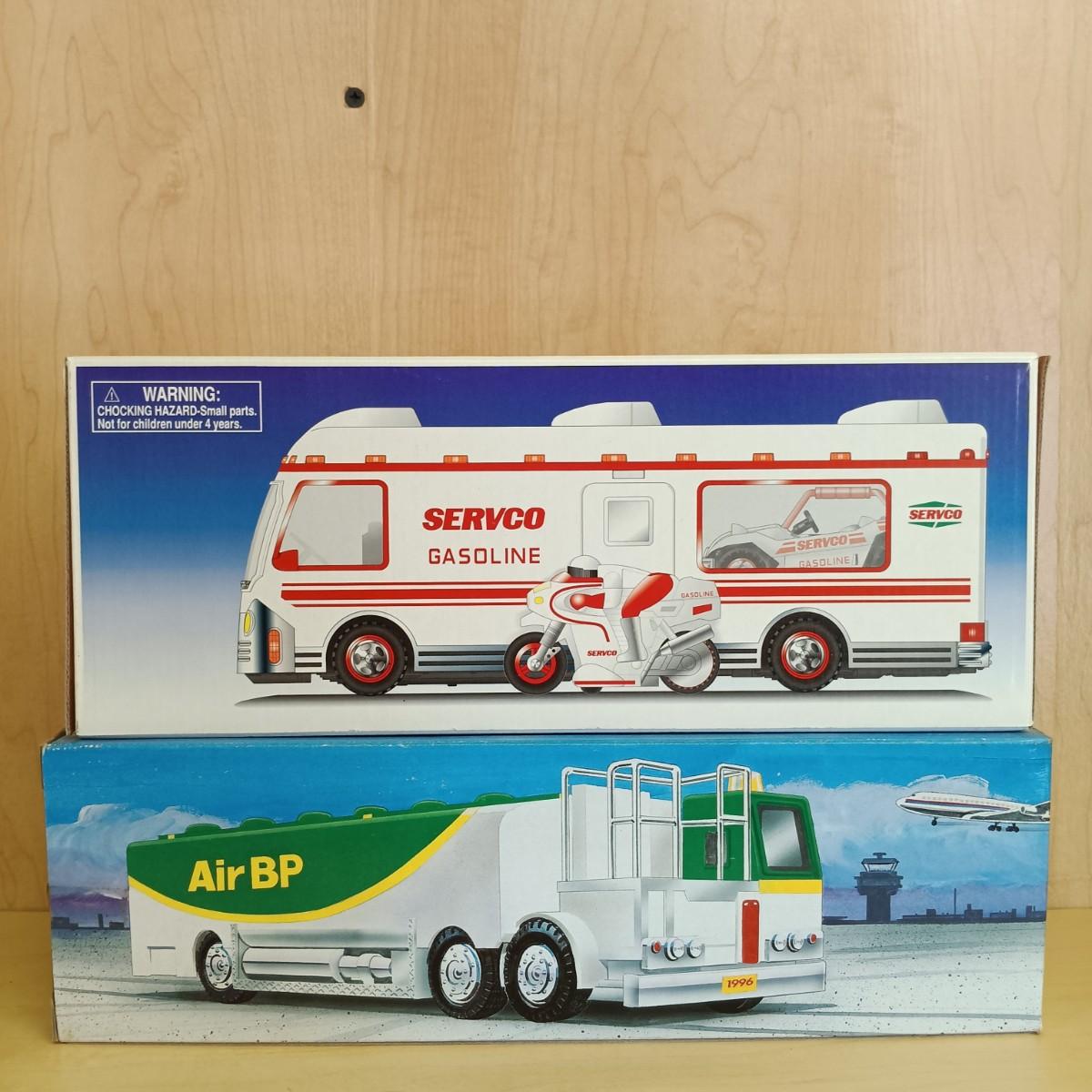 LOT 41: BP Chopper Truck, 1999 Wilco Recreation Van with Dune Buggy and Motorcycle, 1996 BP Aviation Tanker & More
