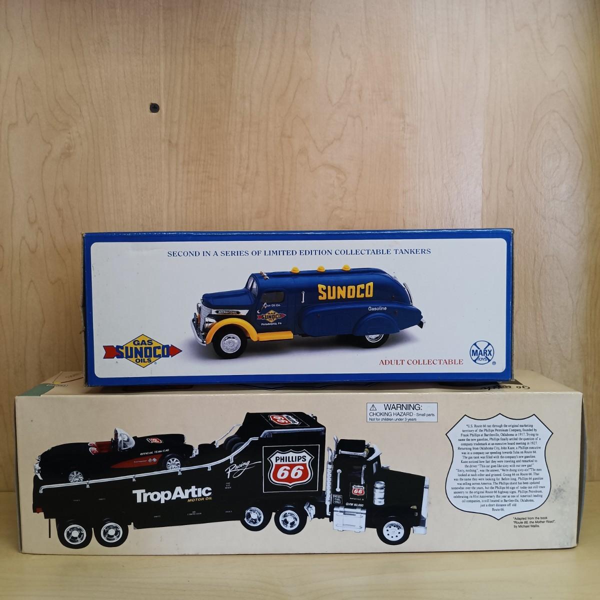 LOT 49: 1998 Phillips 66 Trop Artic Car Carrier, Sunoco Airflow Tanker Car Bank & More