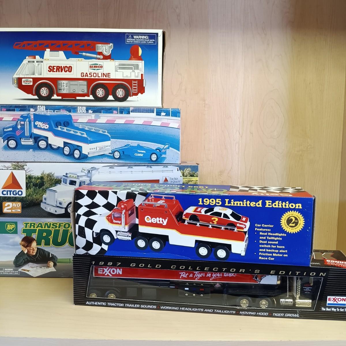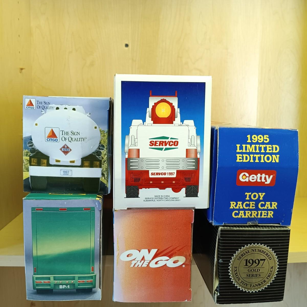 LOT 51: 1997 Gold Series Collector's Edition Exxon Toy Tanker, 1995 Limited Edition Getty Race Car Carrier & More