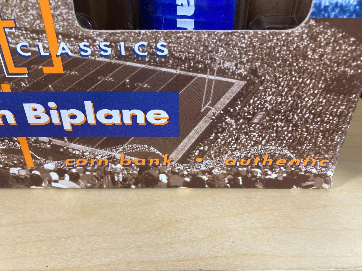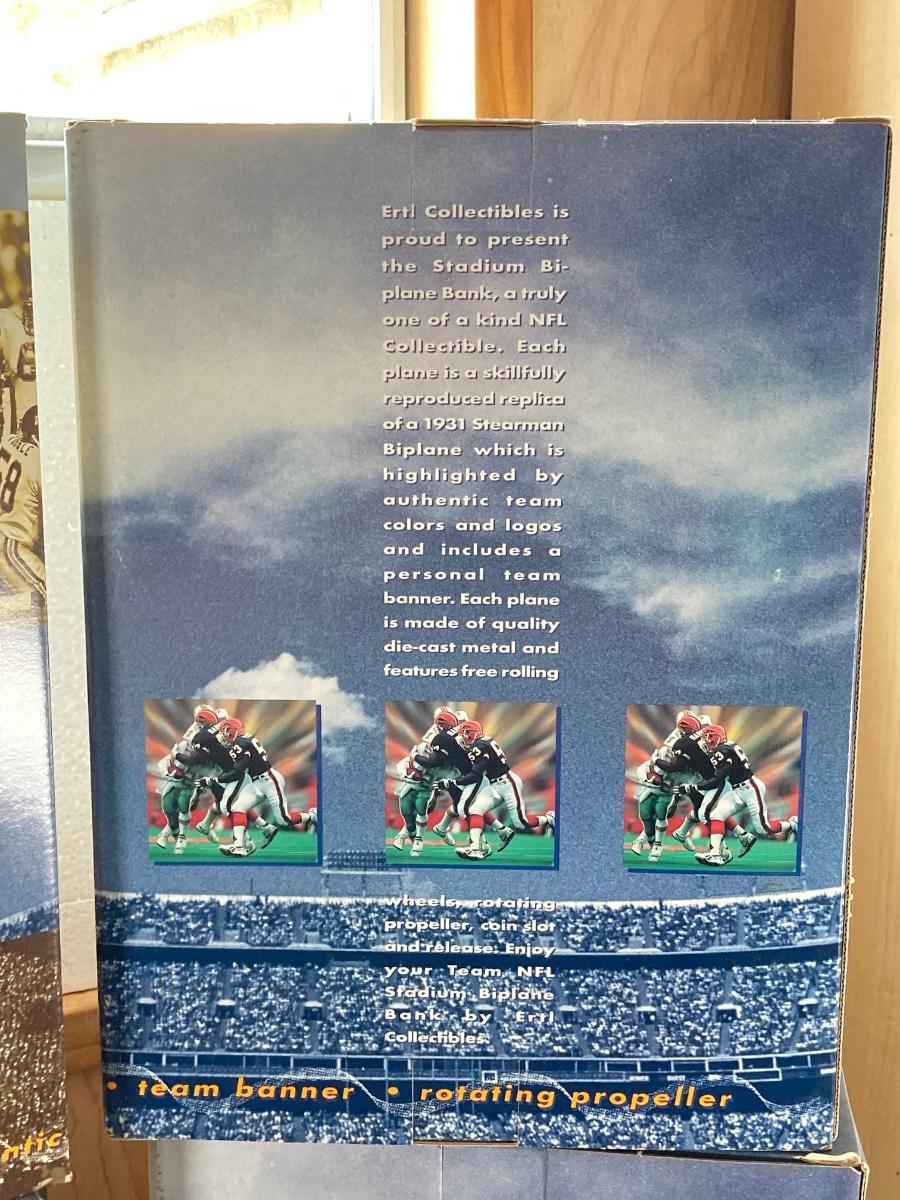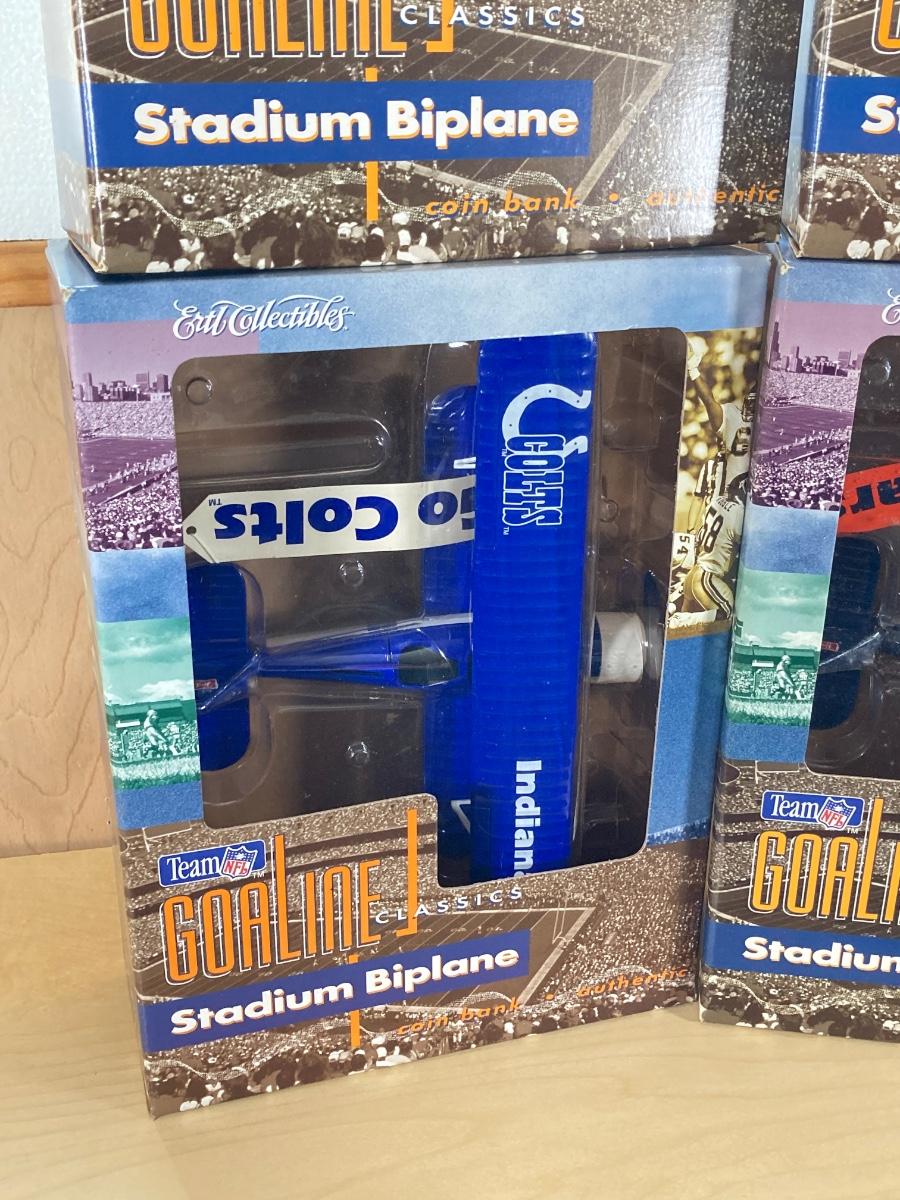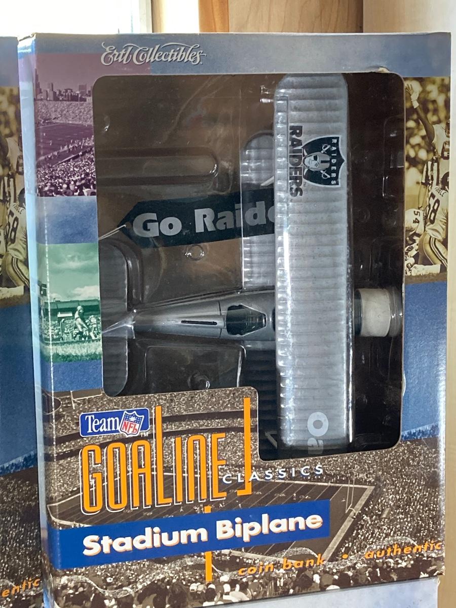 LOT 57: Ertl Collectibles Goaline Stadium Biplane NFL Bank Collection - Lions, Raiders, Colts and Bears