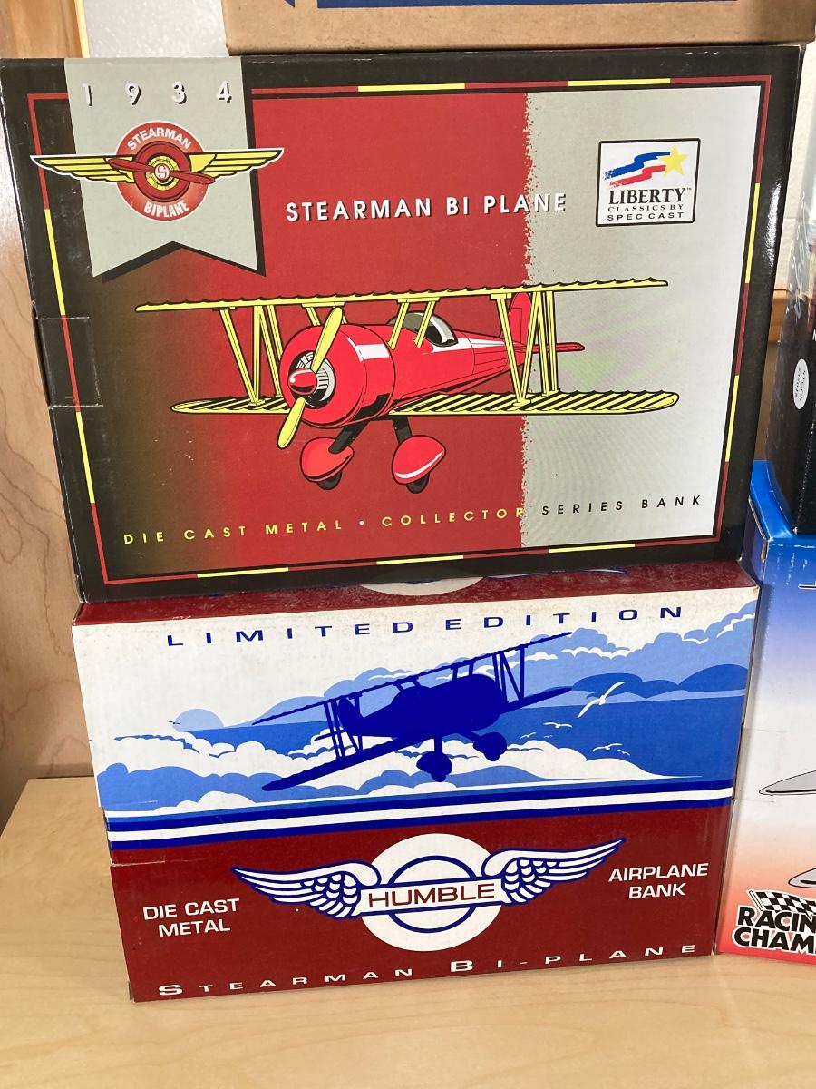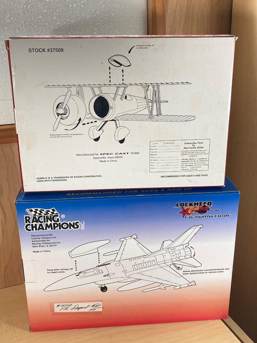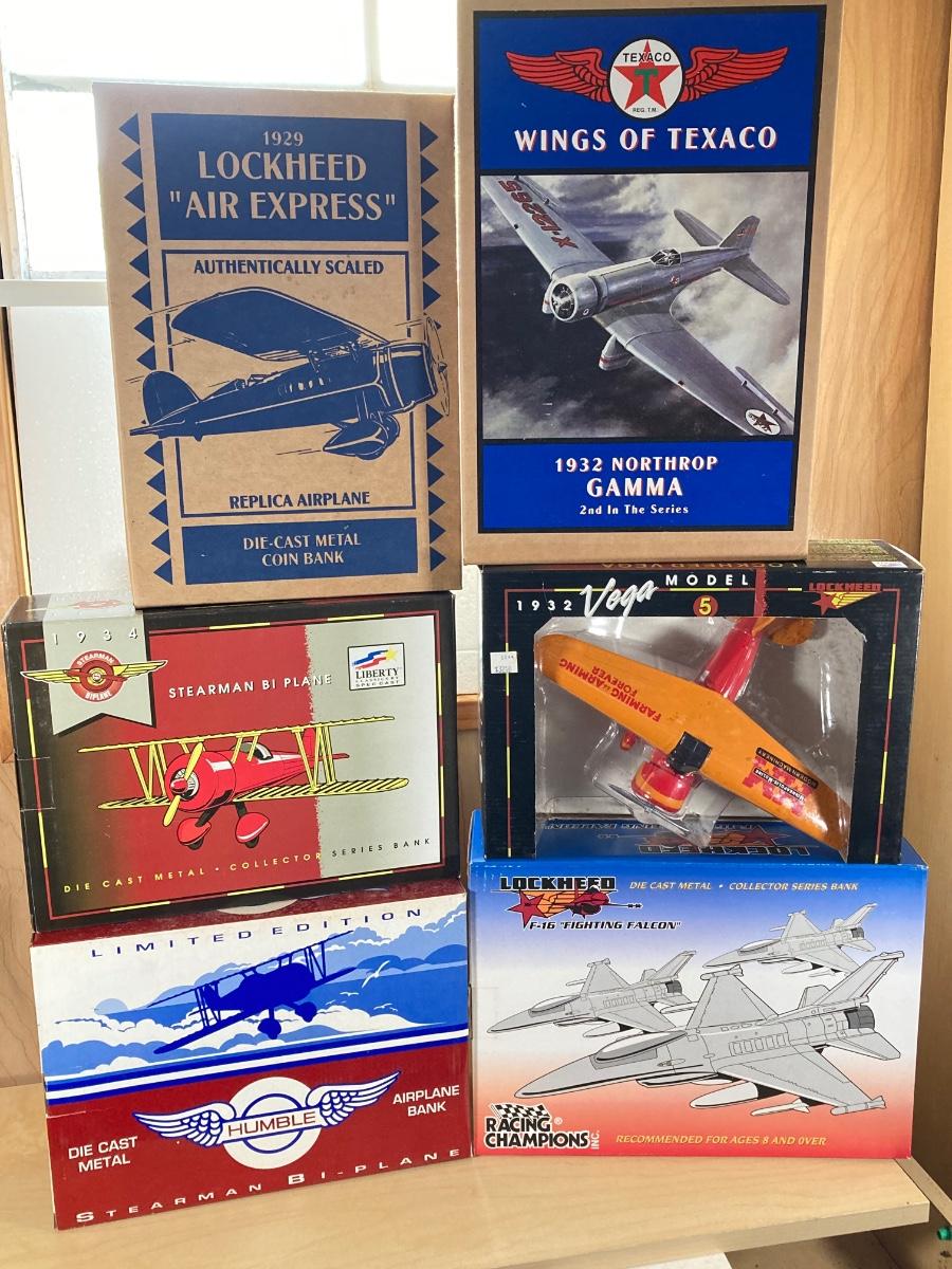 LOT 59: Collection of Six Die Cast Airplane Banks - Lockheed, Wings of Texaco, Liberty and Humble