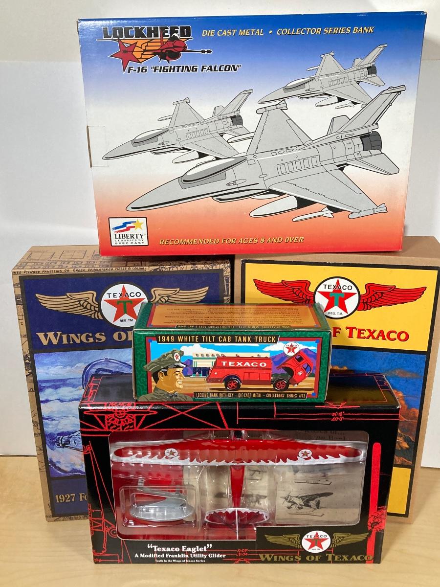 LOT 70: Texaco (Ertl) and Liberty Classics Collection of Die Cast Airplanes / Banks and More