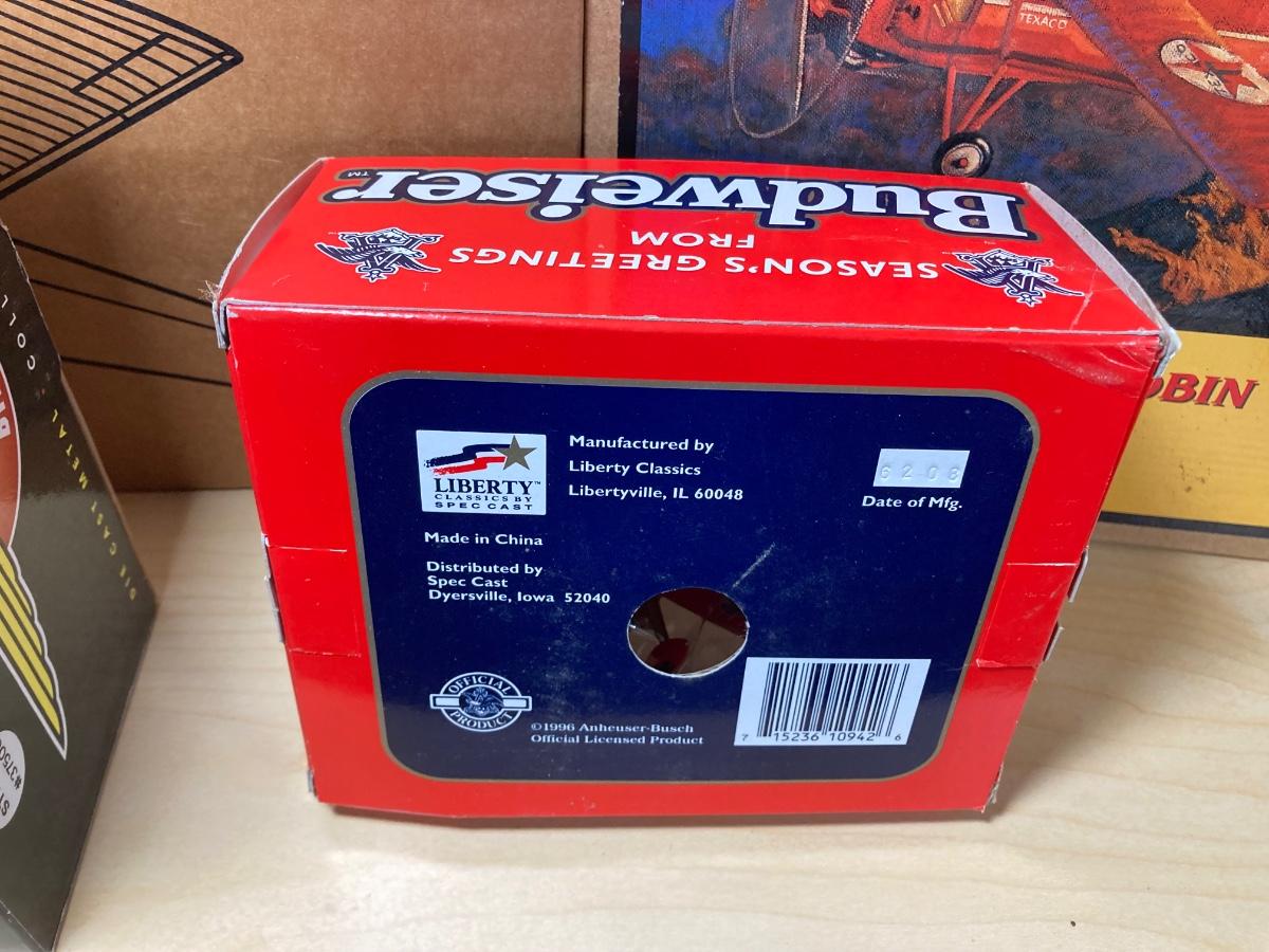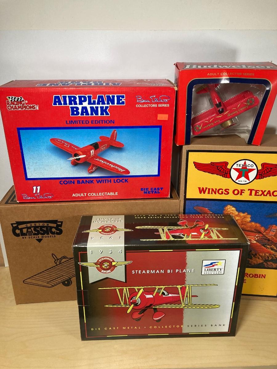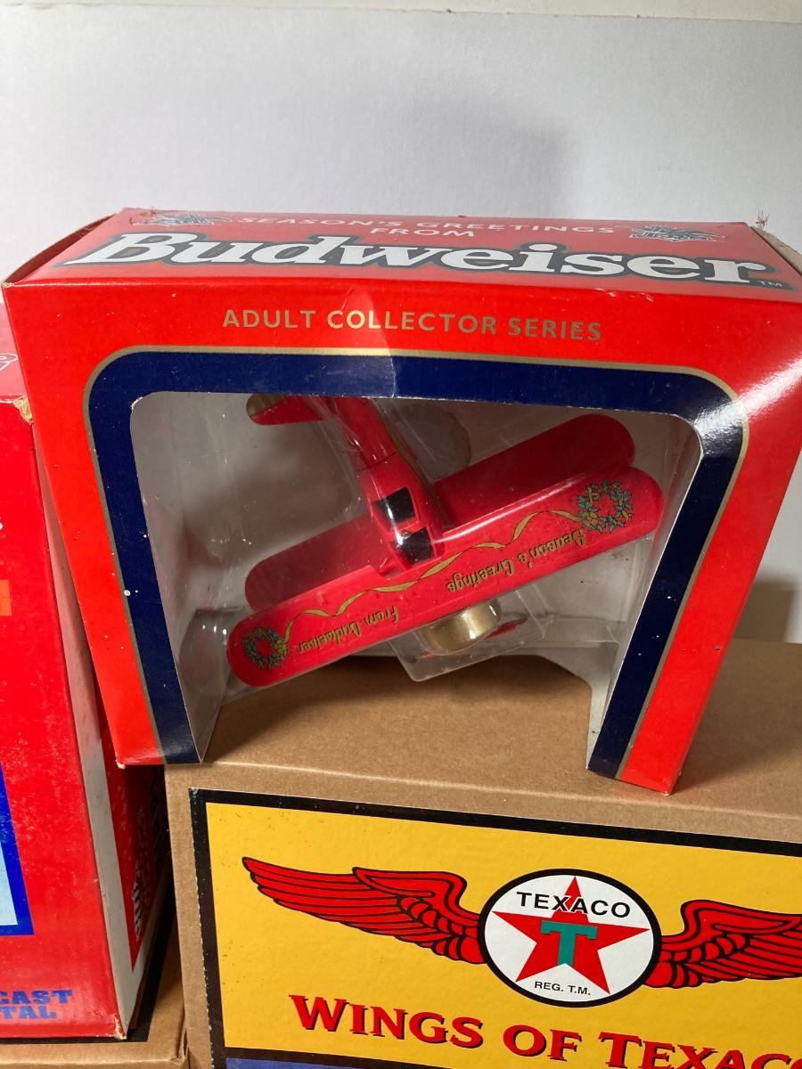 LOT 73: Five Die Cast Airplanes / Banks - Budweiser, Texaco, Custom Classics, Ornament and More