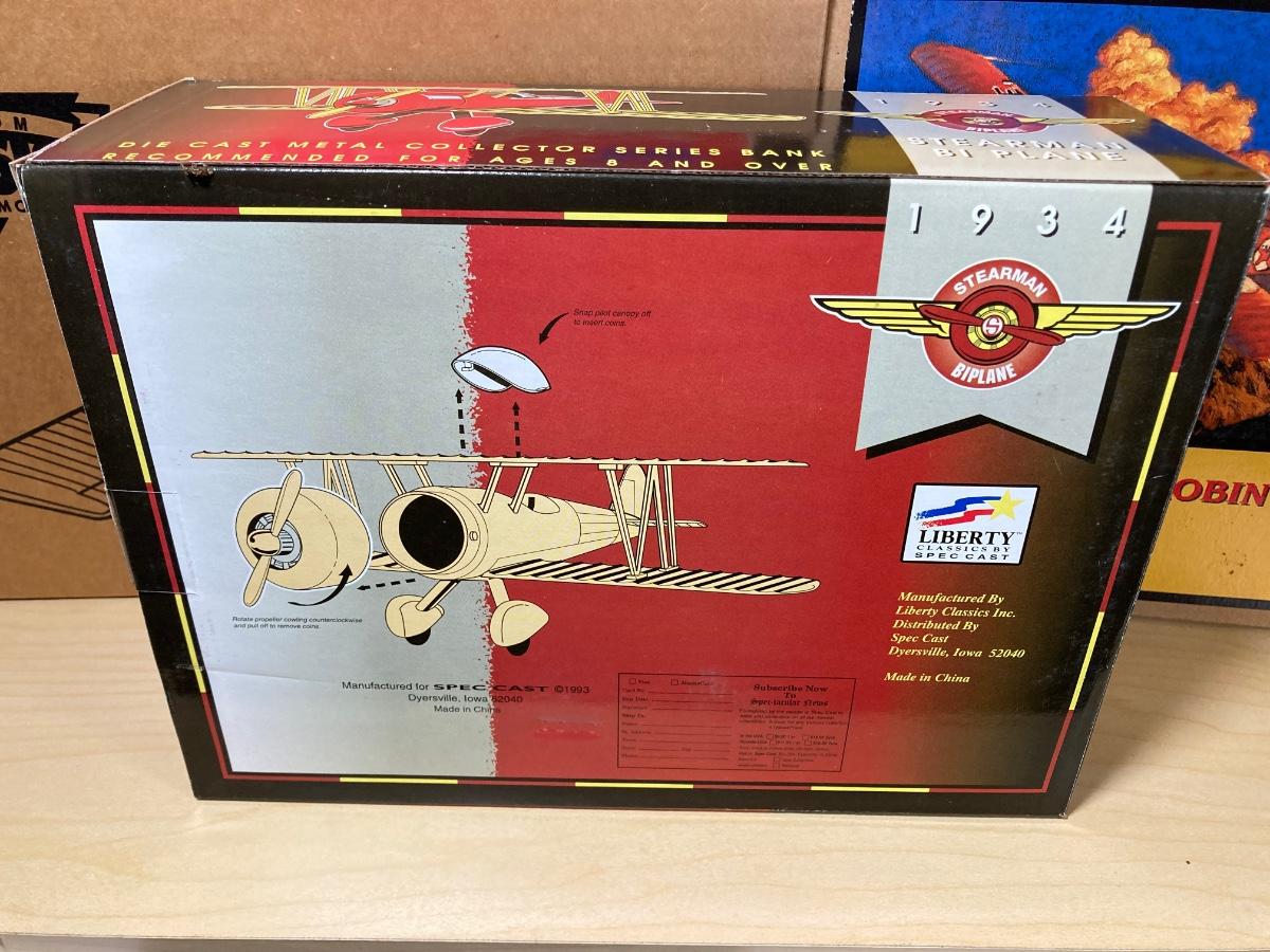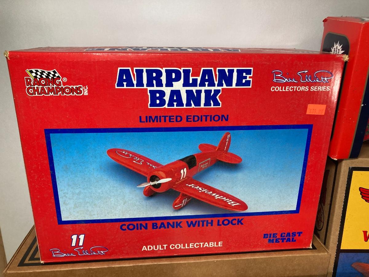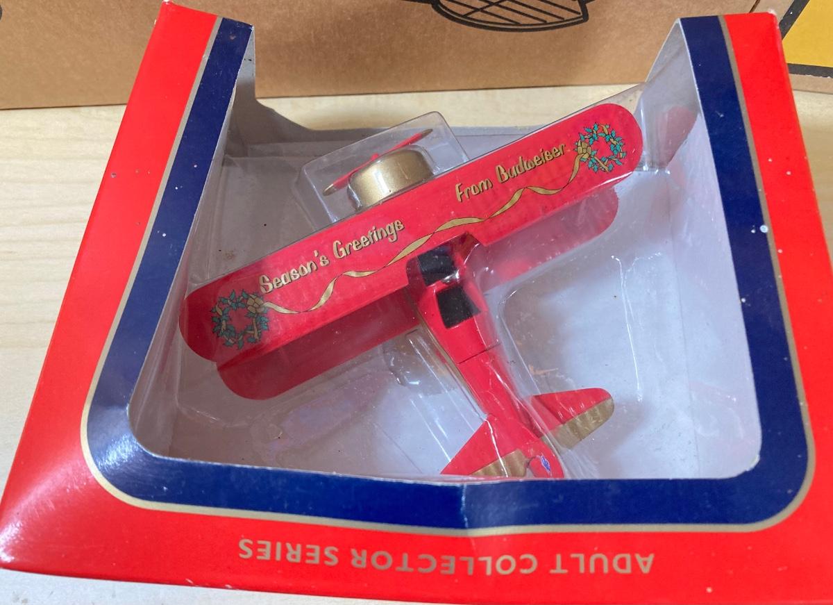 LOT 73: Five Die Cast Airplanes / Banks - Budweiser, Texaco, Custom Classics, Ornament and More