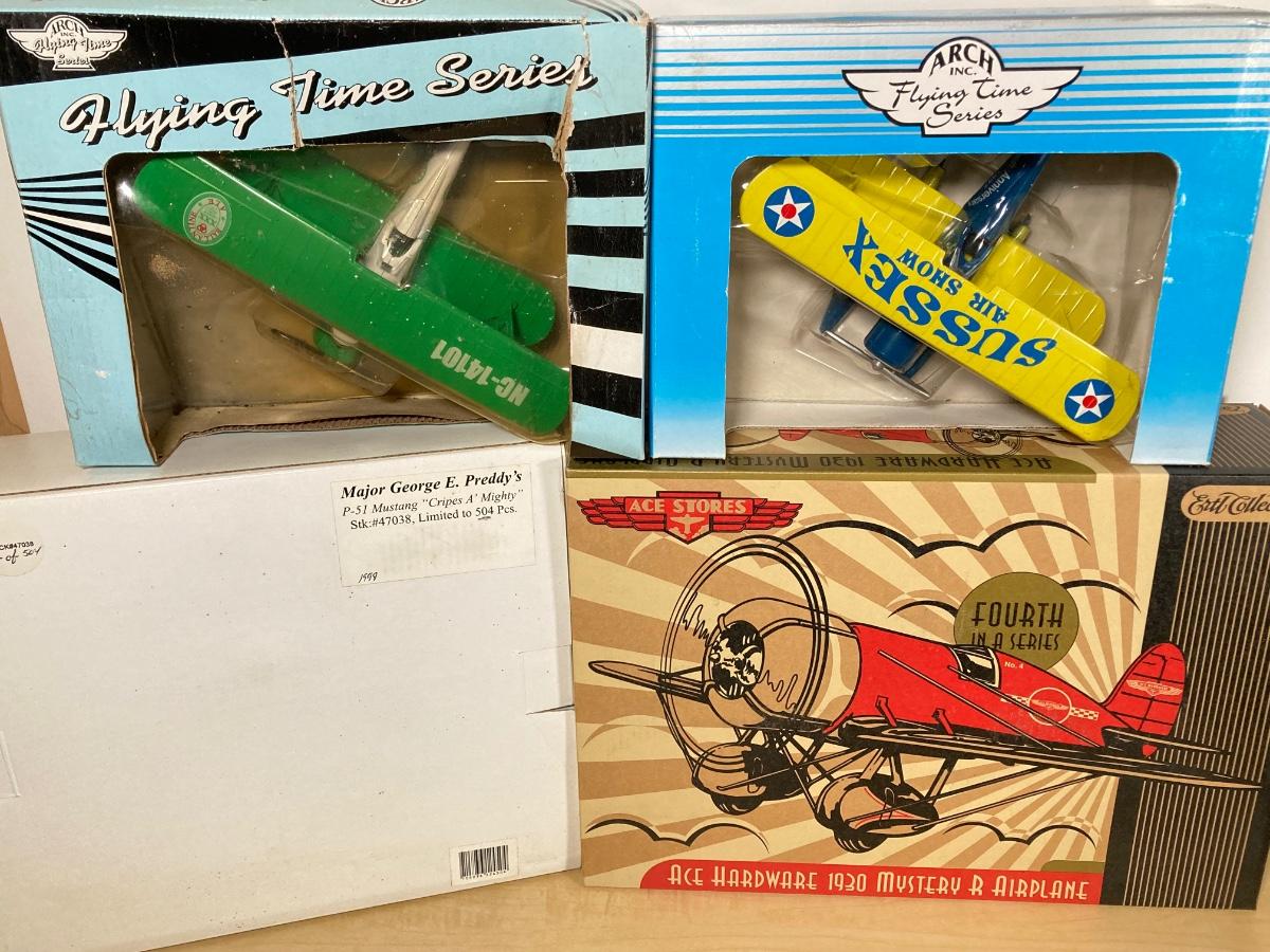 LOT 75: Four Collectible Airplanes - Arch Flying Time, Ertl Ace Stores and Major George E. Preddy's P-51 Mustage "Cripes A' Mighty"