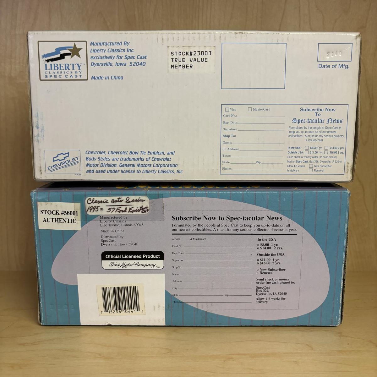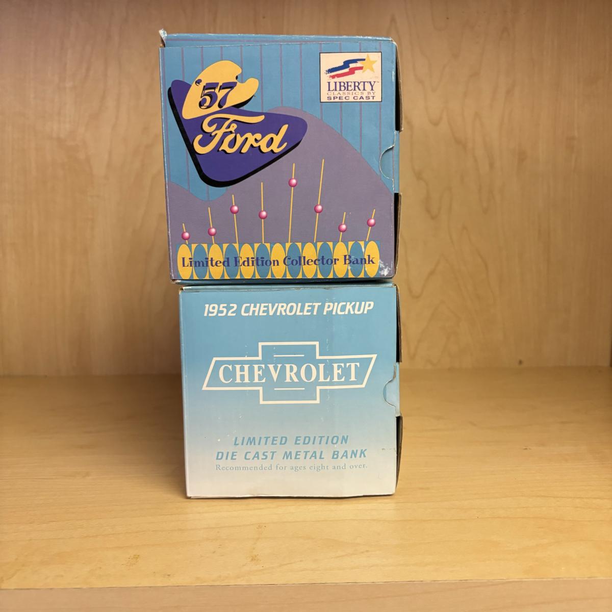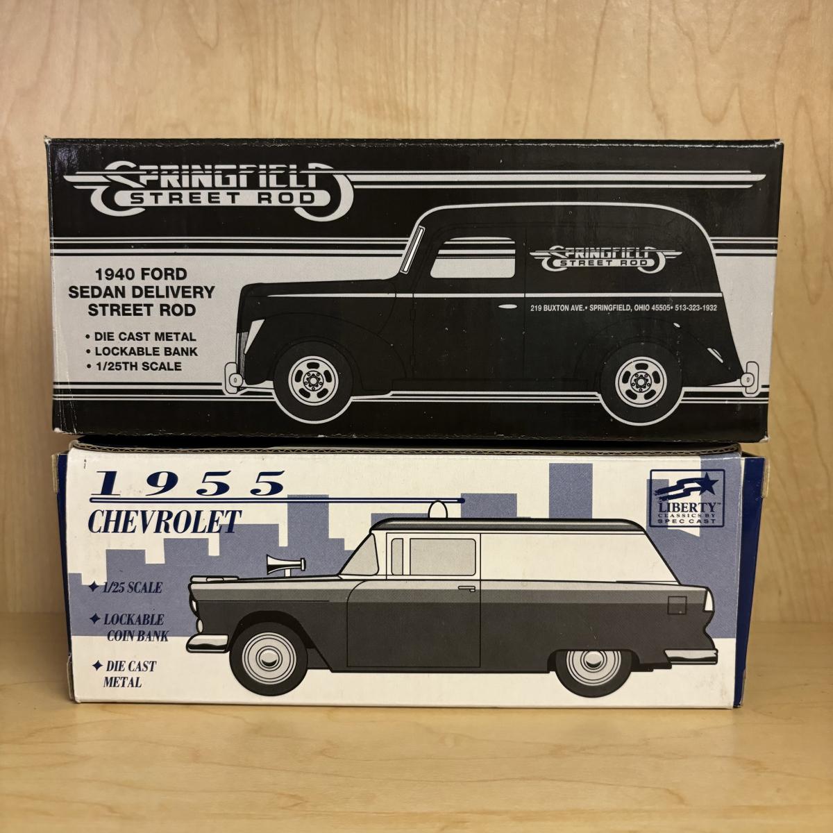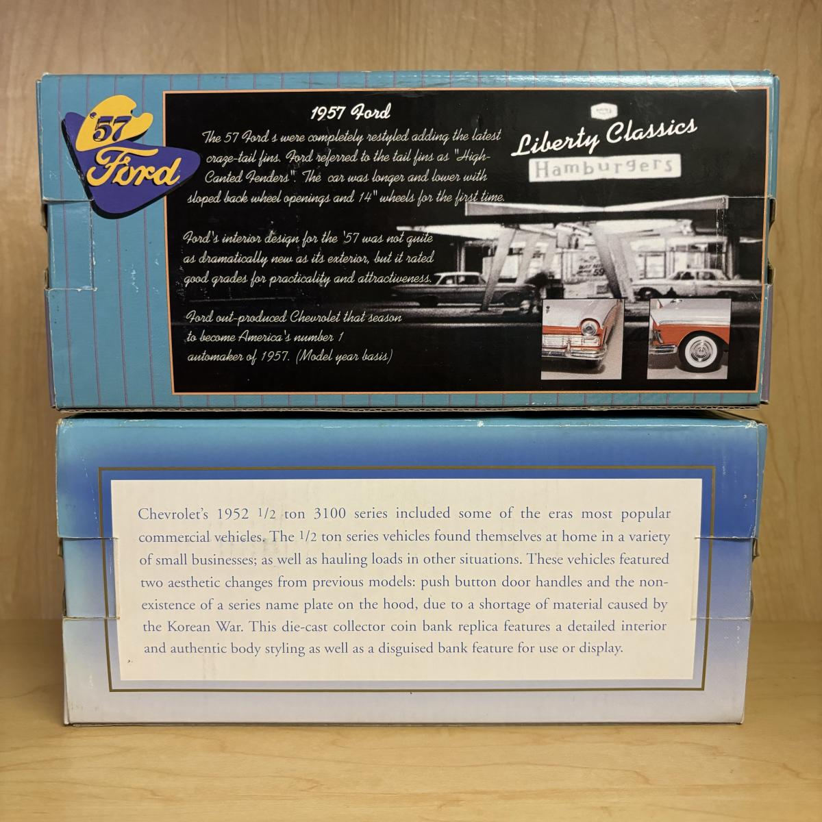 LOT 85: Die Cast Collectibles: Ertl 1940 Woody Station Wagon, Liberty Spec 1957 Ford, Eastwood 1952 1/2-ton Chevrolet Pk Up & Springfield 1955 Chevrolet Street Road