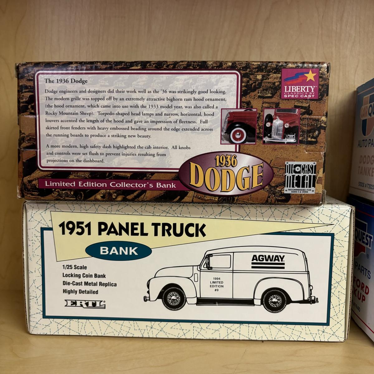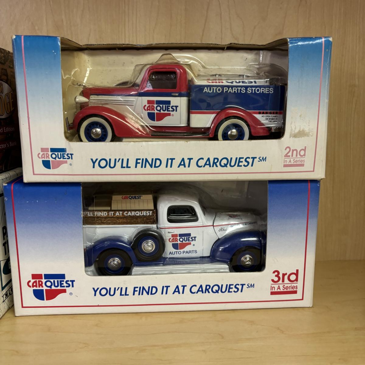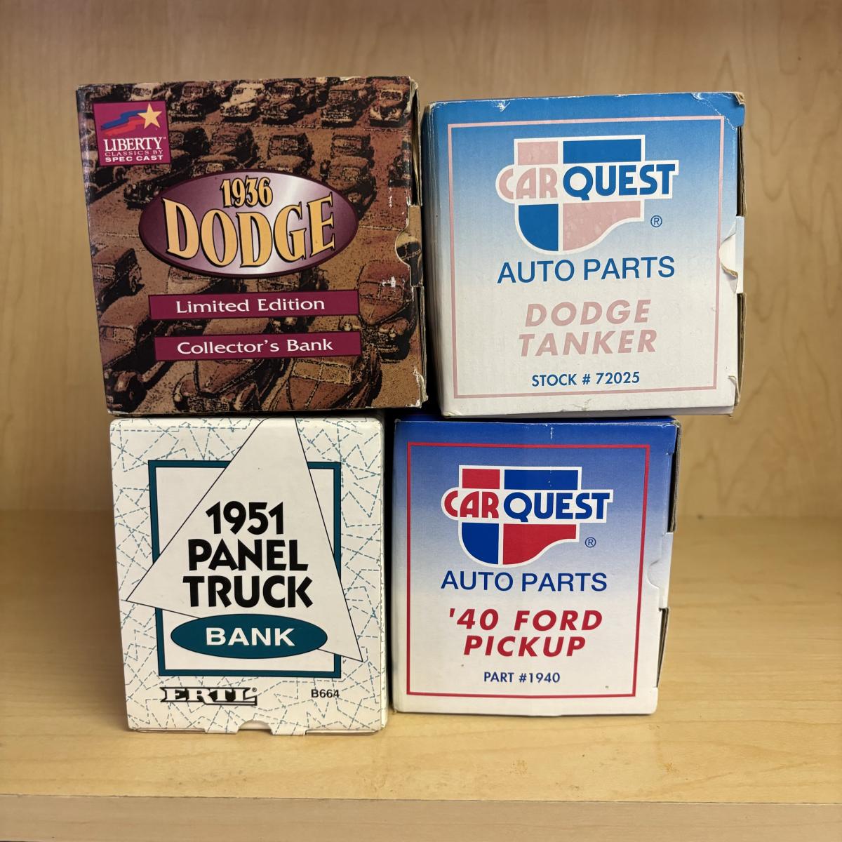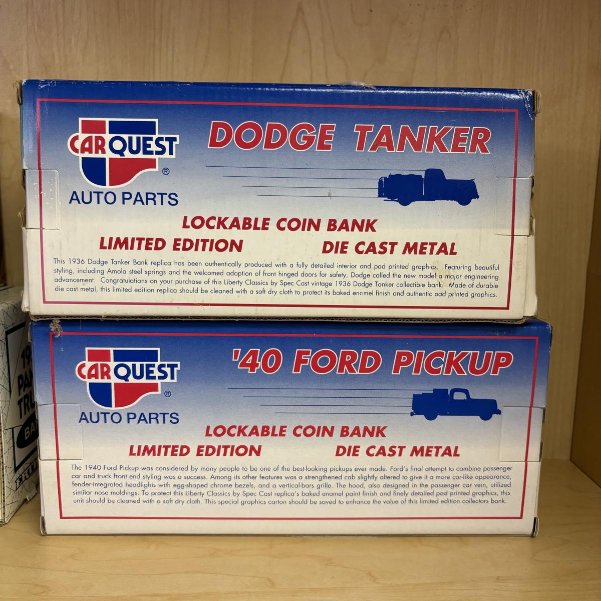LOT 91: Vintage Model Truck Die Cat Metal Bank Collection: American Airlines, Agway Panel Truck, Car Quest & Others