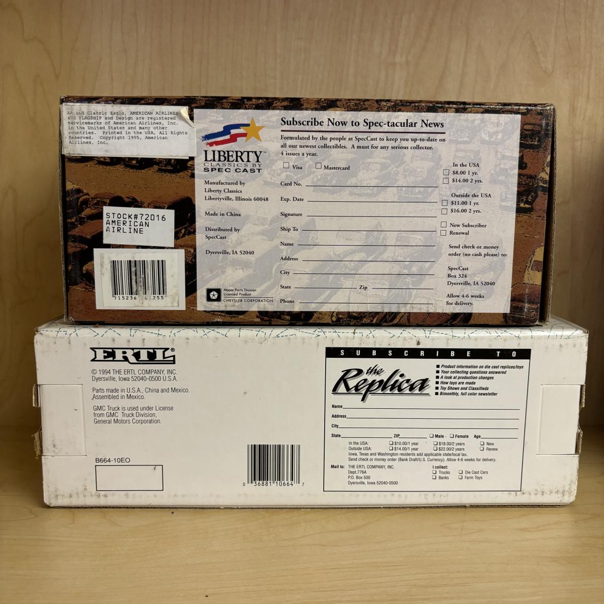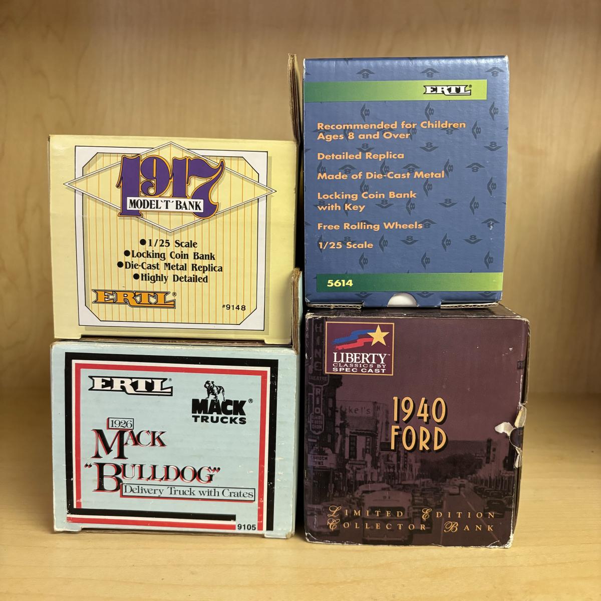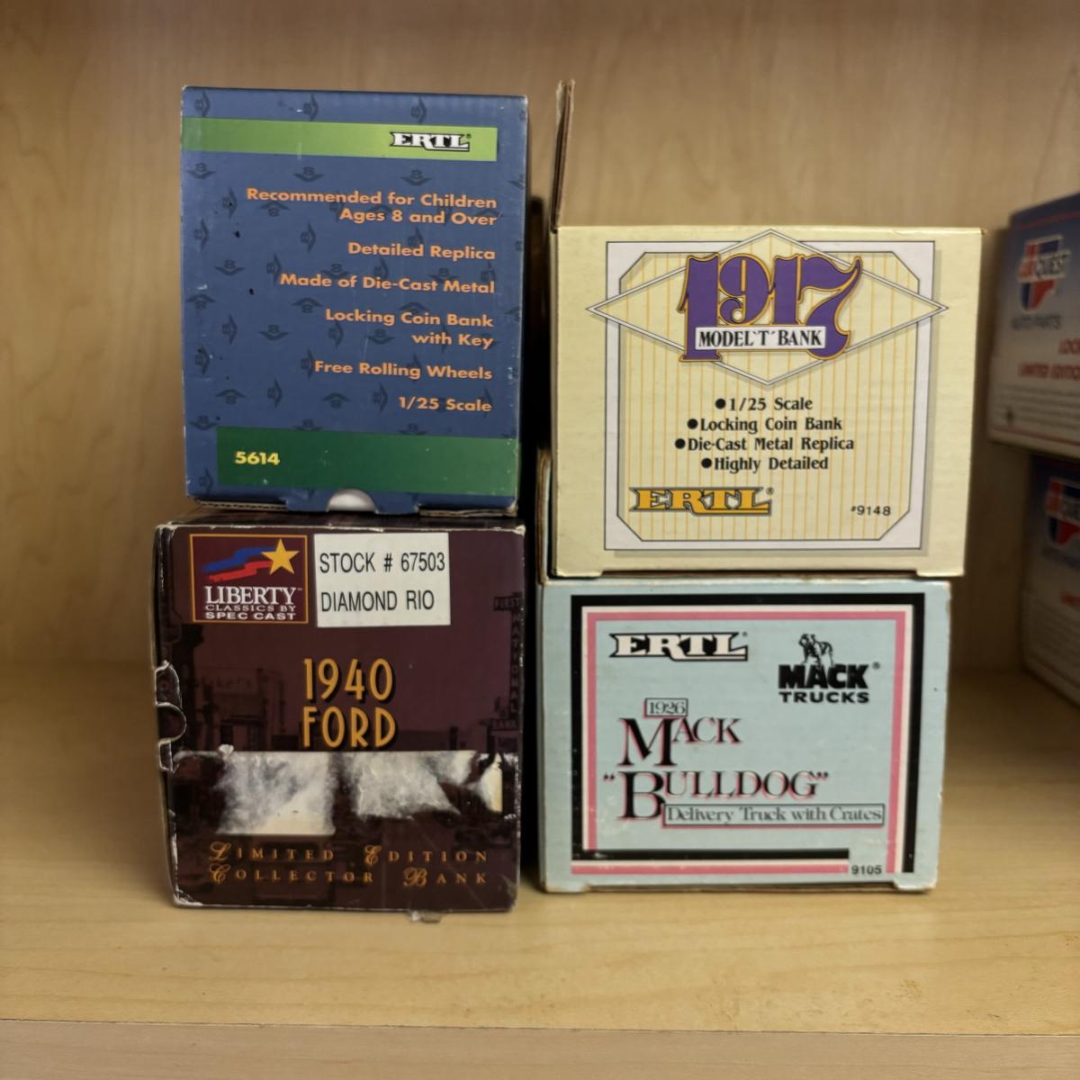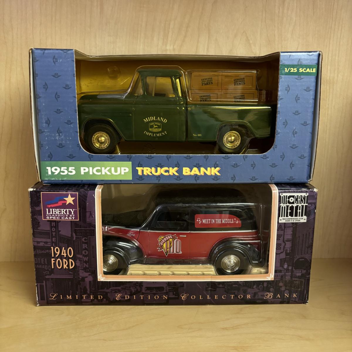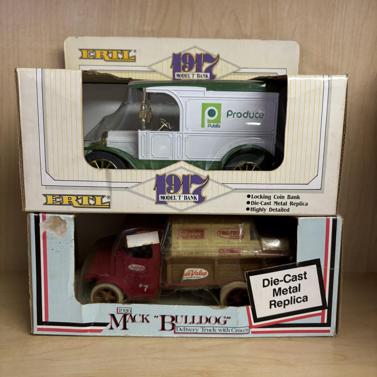 LOT 91: Vintage Model Truck Die Cat Metal Bank Collection: American Airlines, Agway Panel Truck, Car Quest & Others