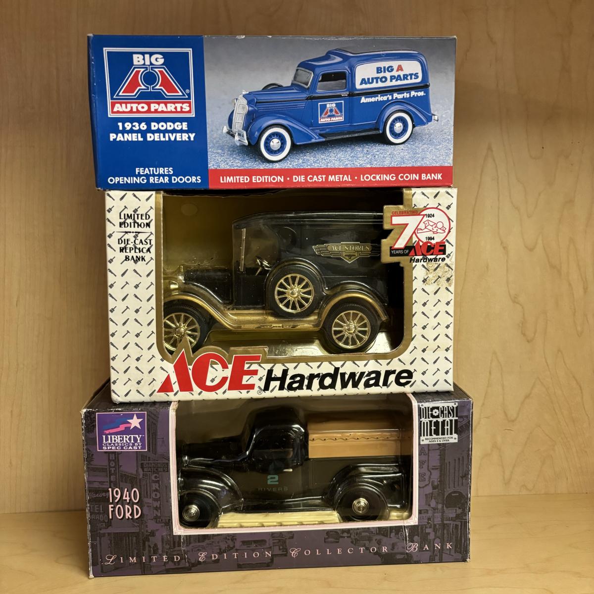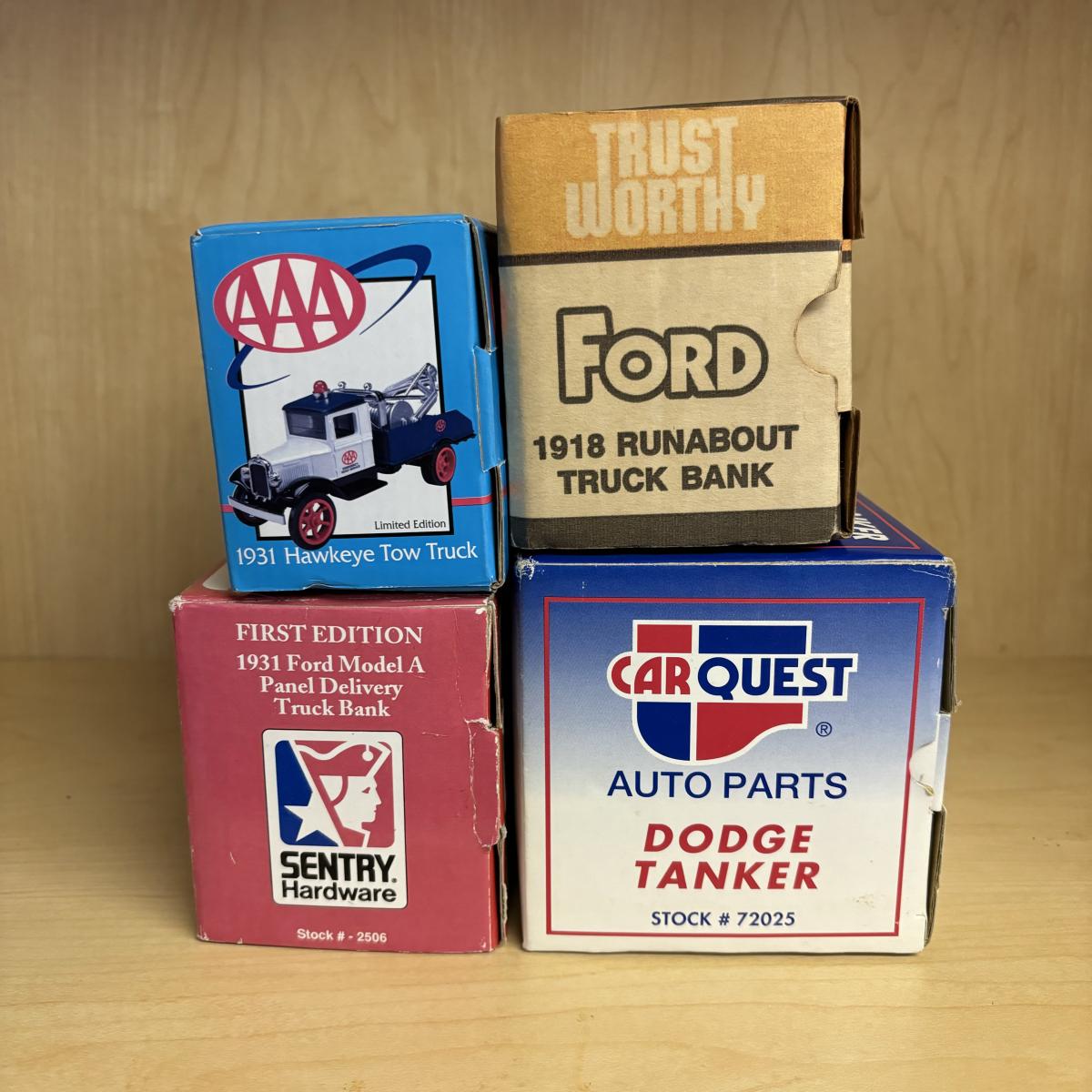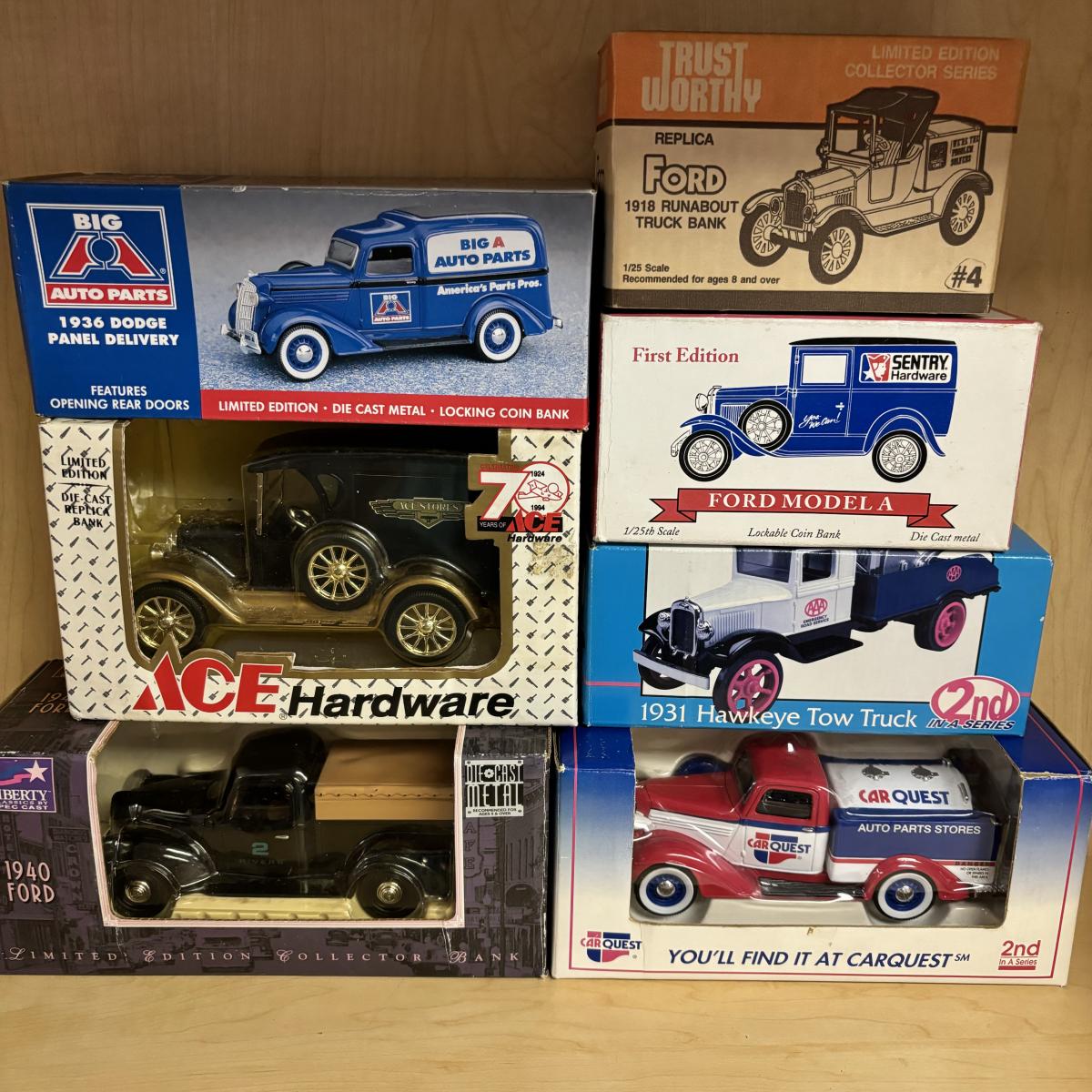 LOT 97: Collectible Die Cat Metal Banks: Limited Editions Trustworthy, First Edition Ford Model A, Liberty and Ertl