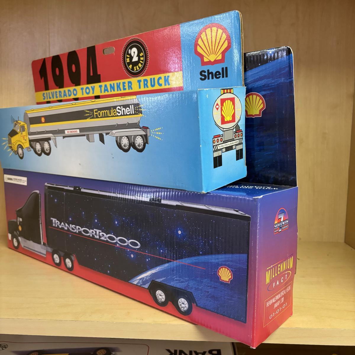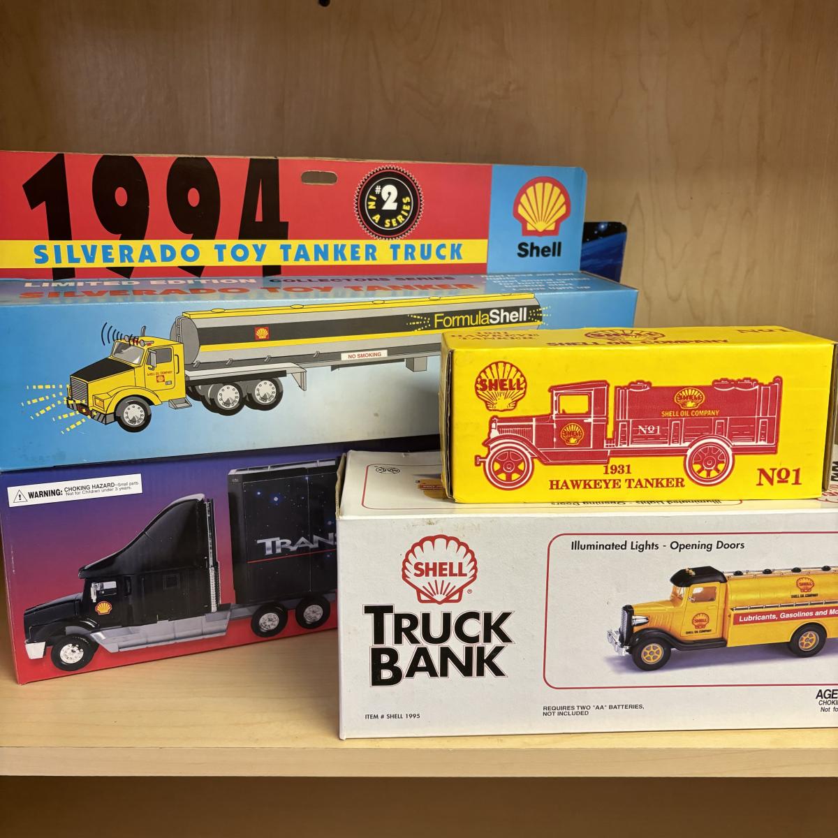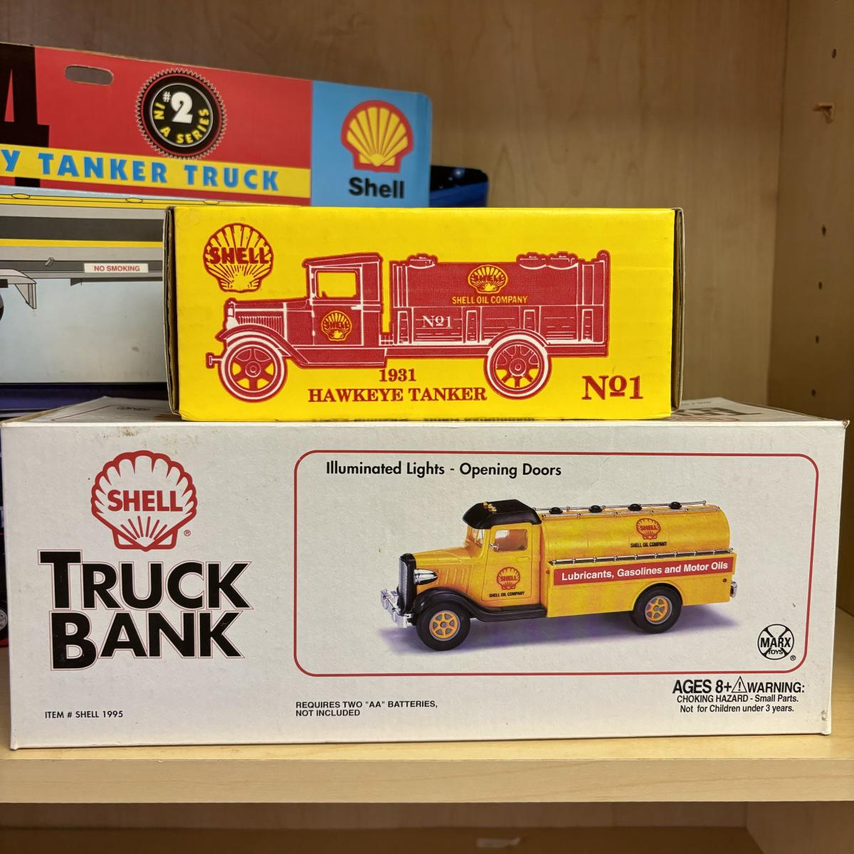 LOT 110: Shell Oil Toy Collectibles: Tanker Truck, Transporter 2000 Truck, Marx Truck & Ertl die Cast #2149