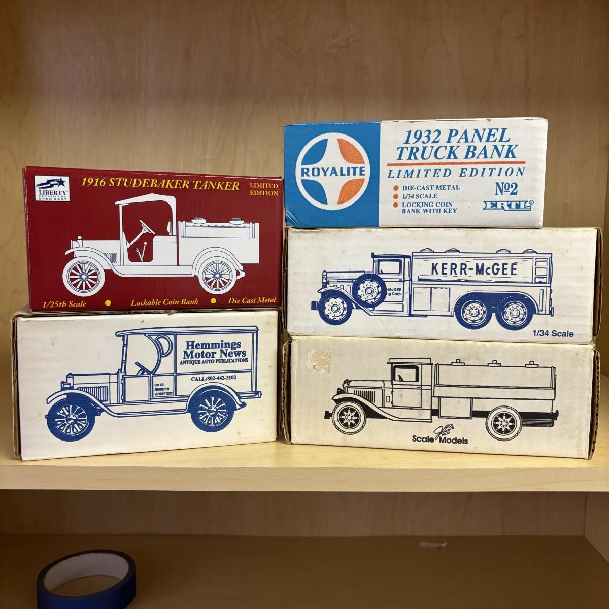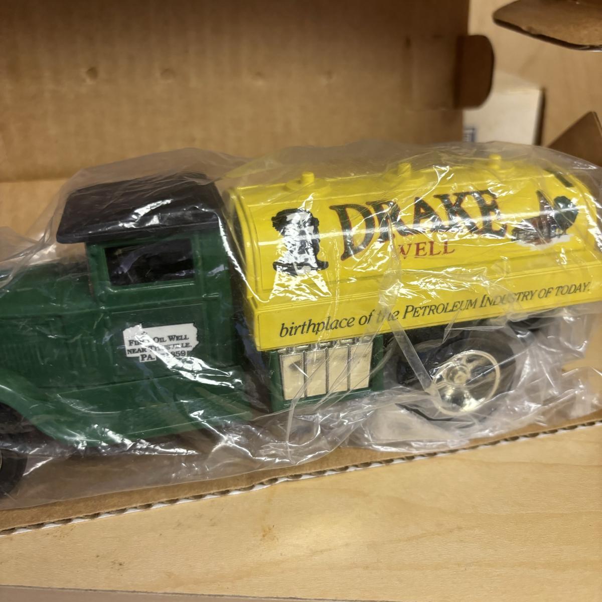 LOT 115: Ertl & Liberty Die Cast Metal Banks including a Ertl Drake Oil 1931 Internationa Tanker Truck 1 of 600