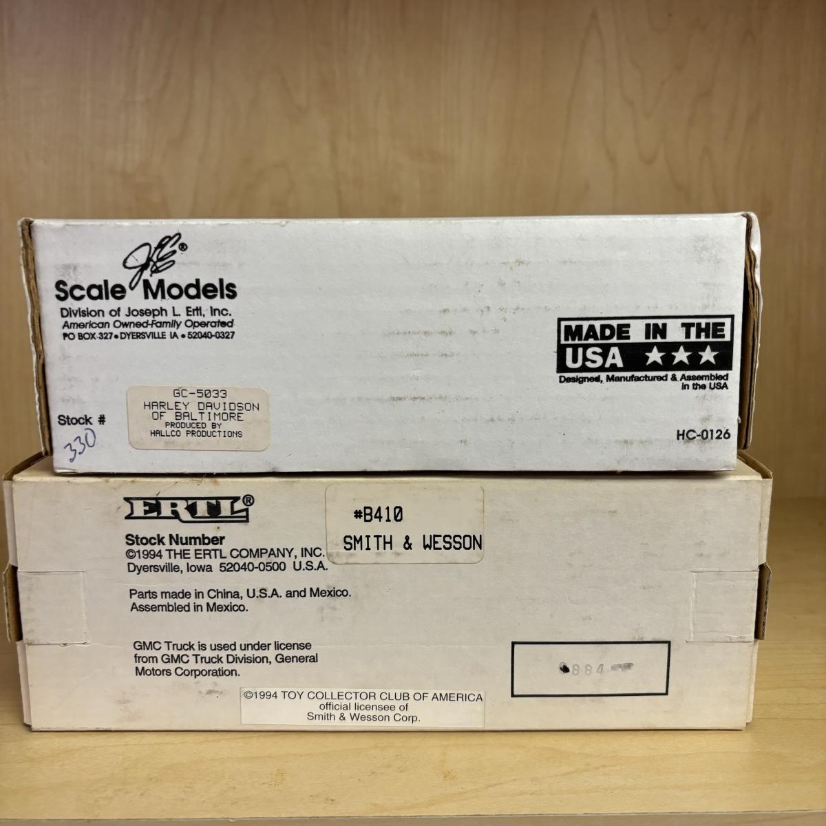 LOT 120: Die Cast Metal Collectible Banks: #GC-5033 Harley Davidson of Baltimore, #B410 Smith & Wesson, #8023 JC Whitney alone with Liberty Classics #74047 Teds Cycle