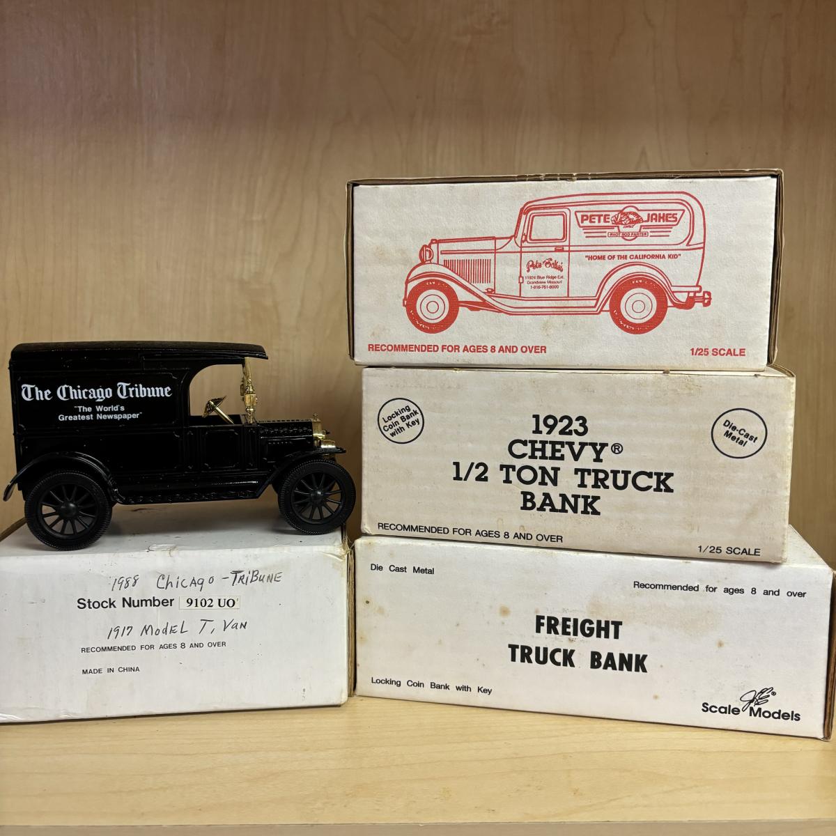 LOT 121: Colecctible Die Cast Metal Banks: Ertl, Hot Rod Shop Model Series & More