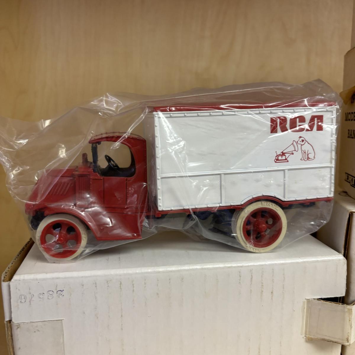 LOT 125: Ertl Die Cast Trucks/Banks: RCA 1926 Mack Truck and others