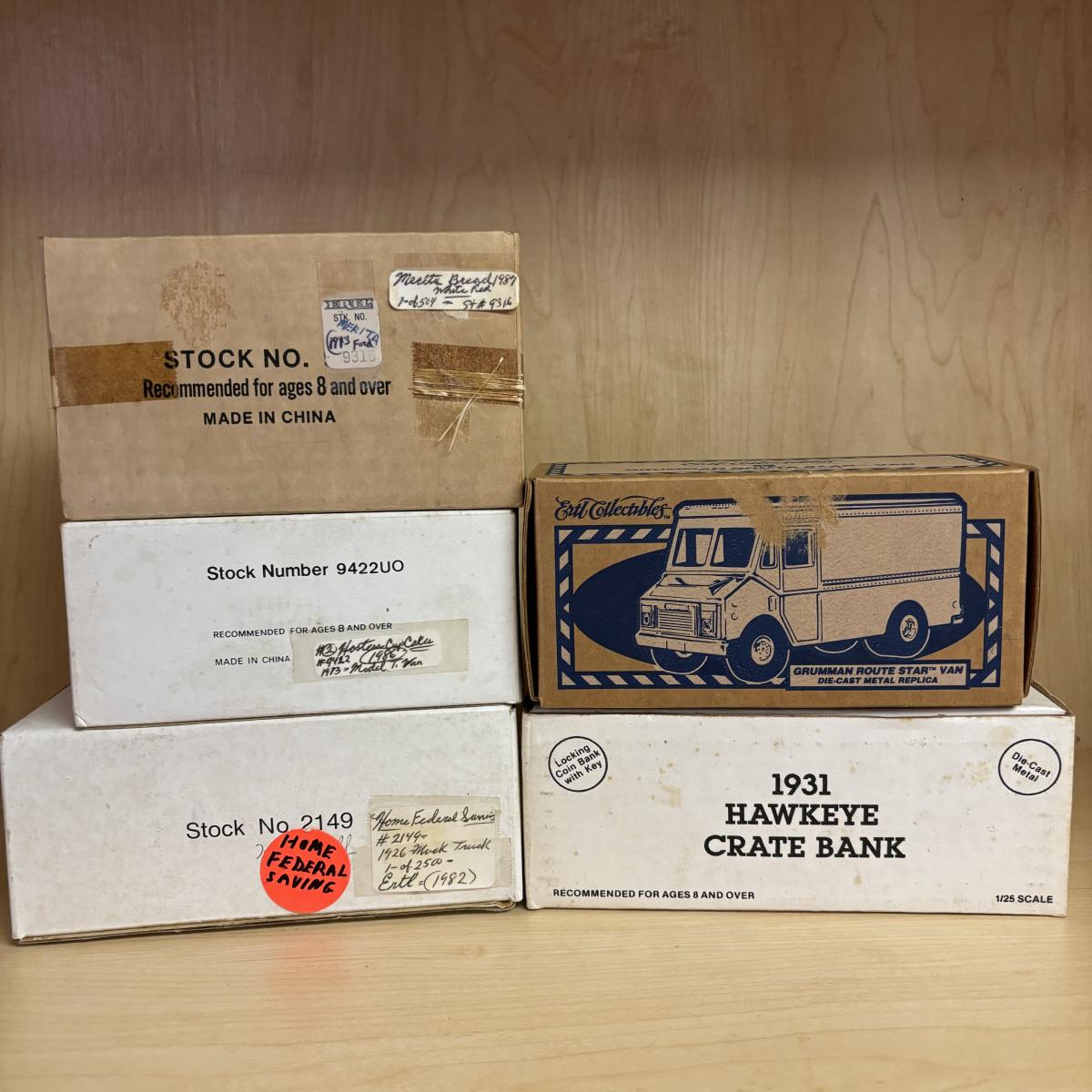 LOT 129: Ertl 1913 Ford Merita Bread Truck #9316, 1 of 504, 1926 Mack Truck Home Federal Savings #2149: 1 of 2500 & More