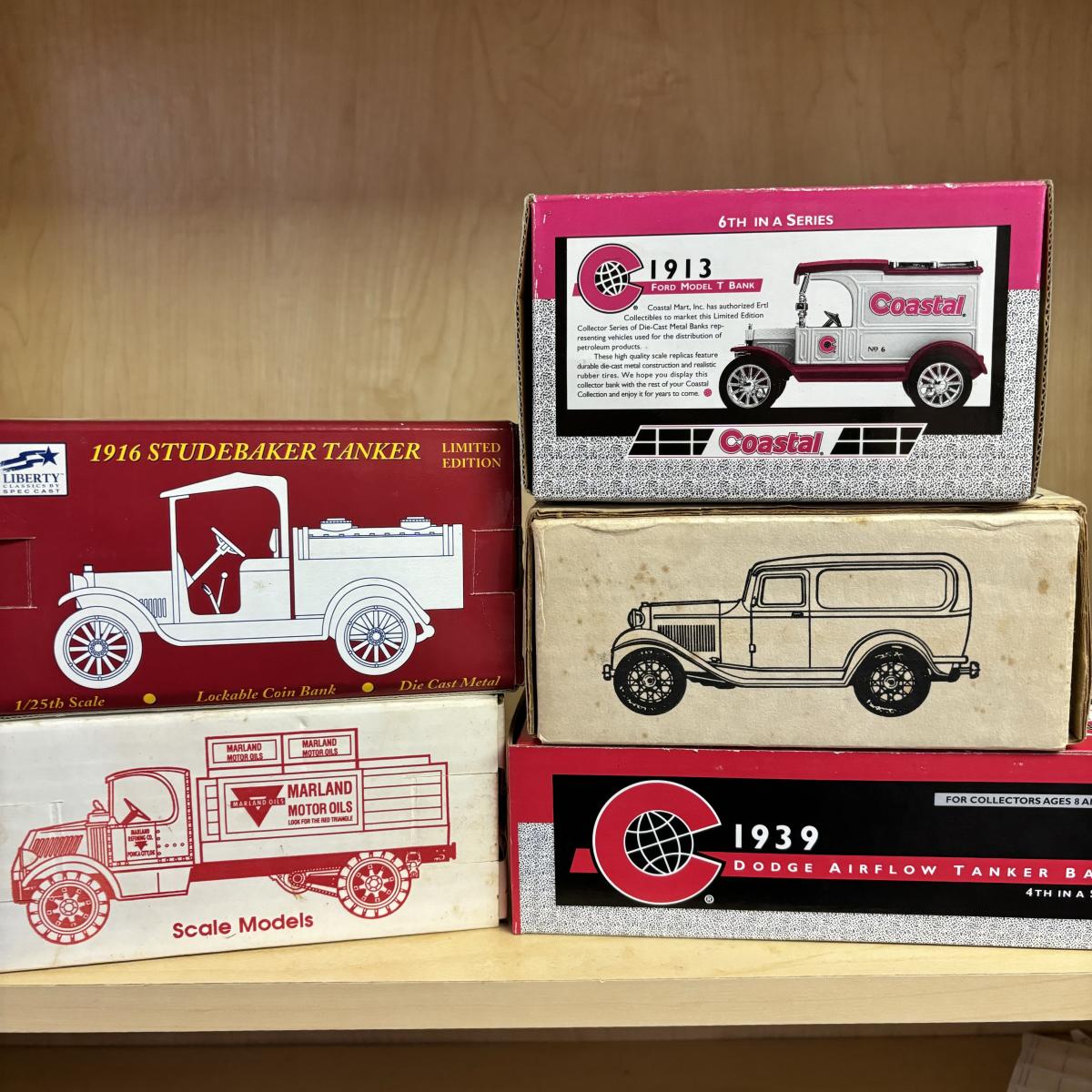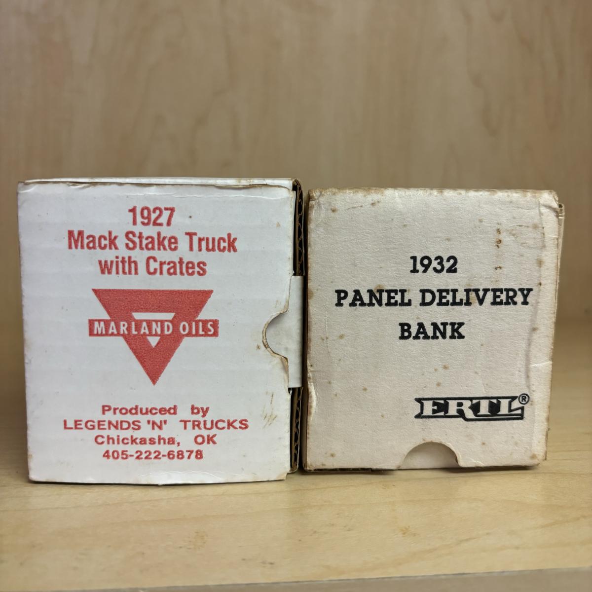 LOT 132: Liberty Classics 1916 Studebaker/Guld Oil Die Cast Bank, Ertl Legends 'n' Trucks 1927 Mack Stake Truck/Marland Oils (1 of 500)