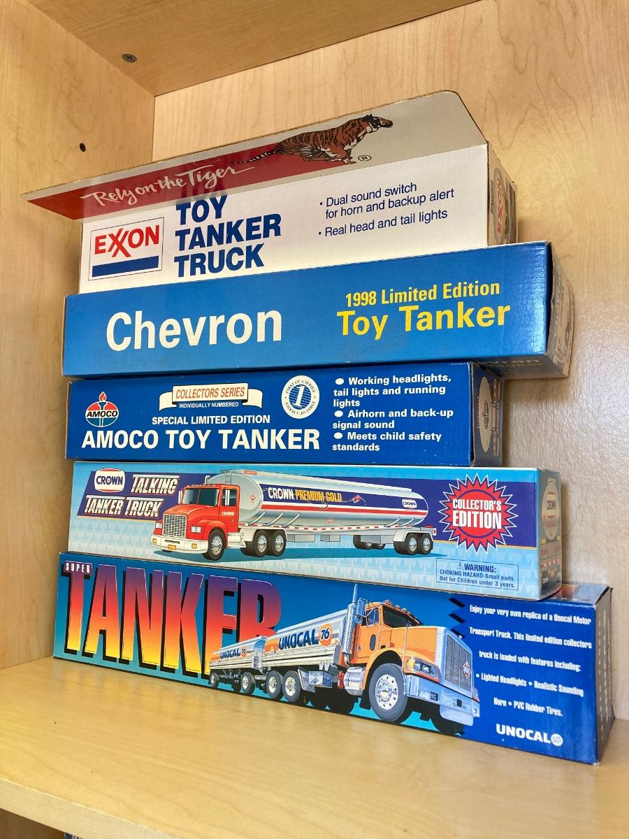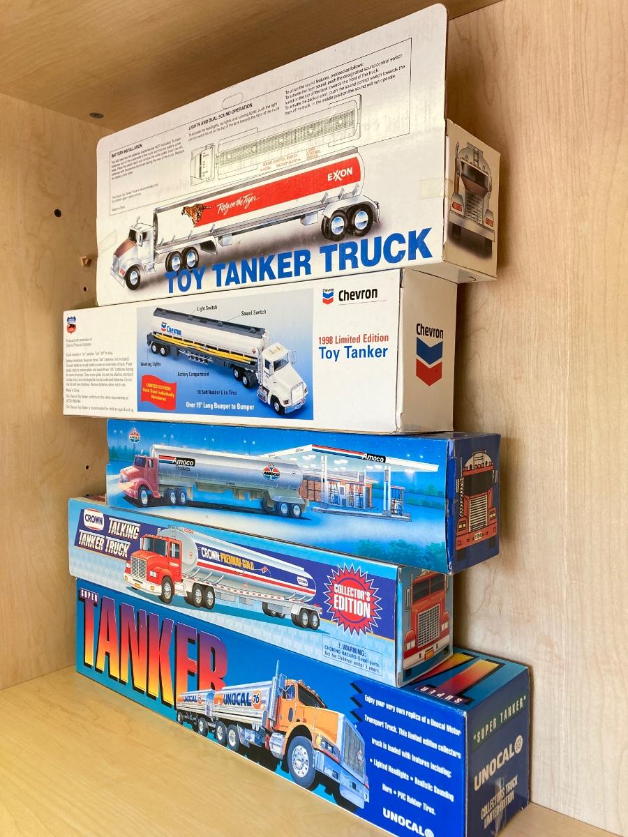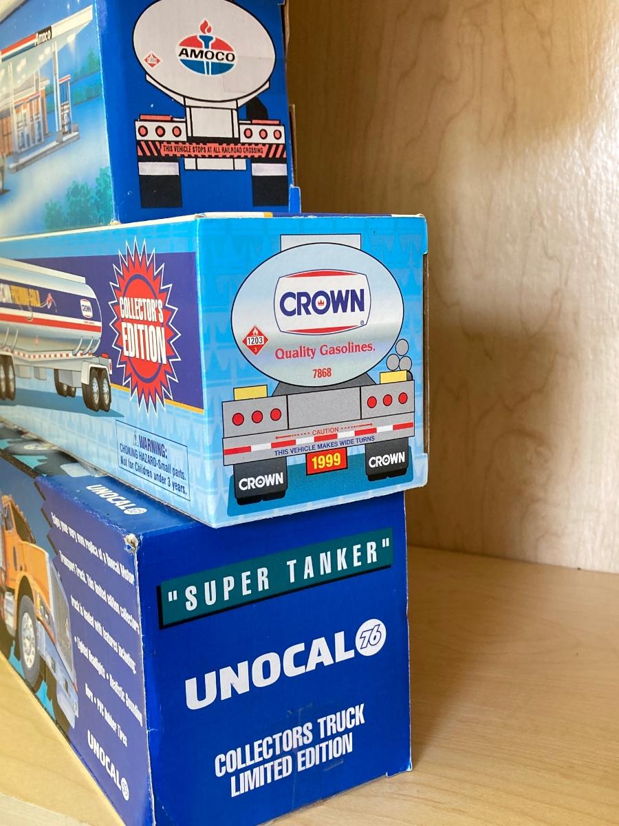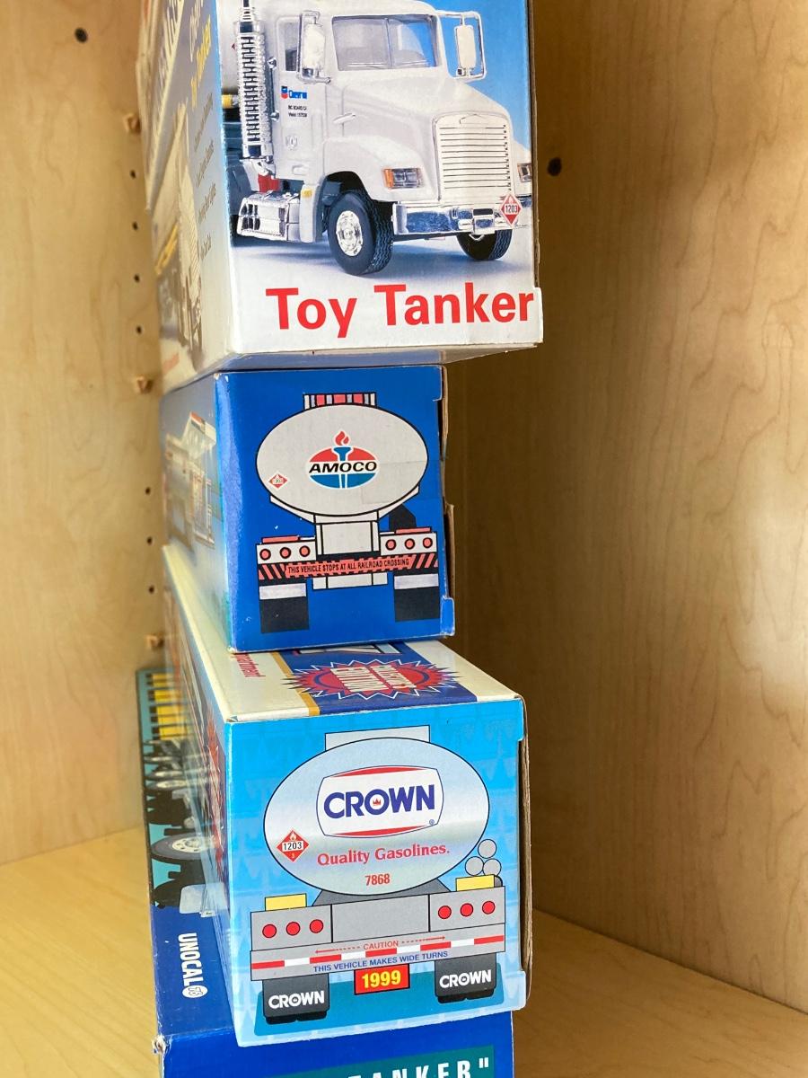 LOT 139: Collectible Toy Tanker Trucks - Amoco, Chevron, Crown, Exxon and Unocal 76