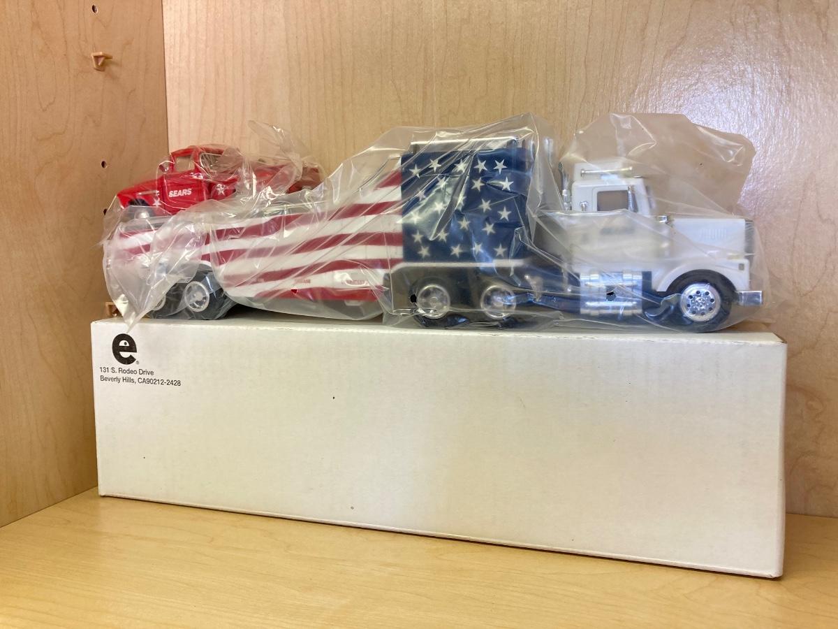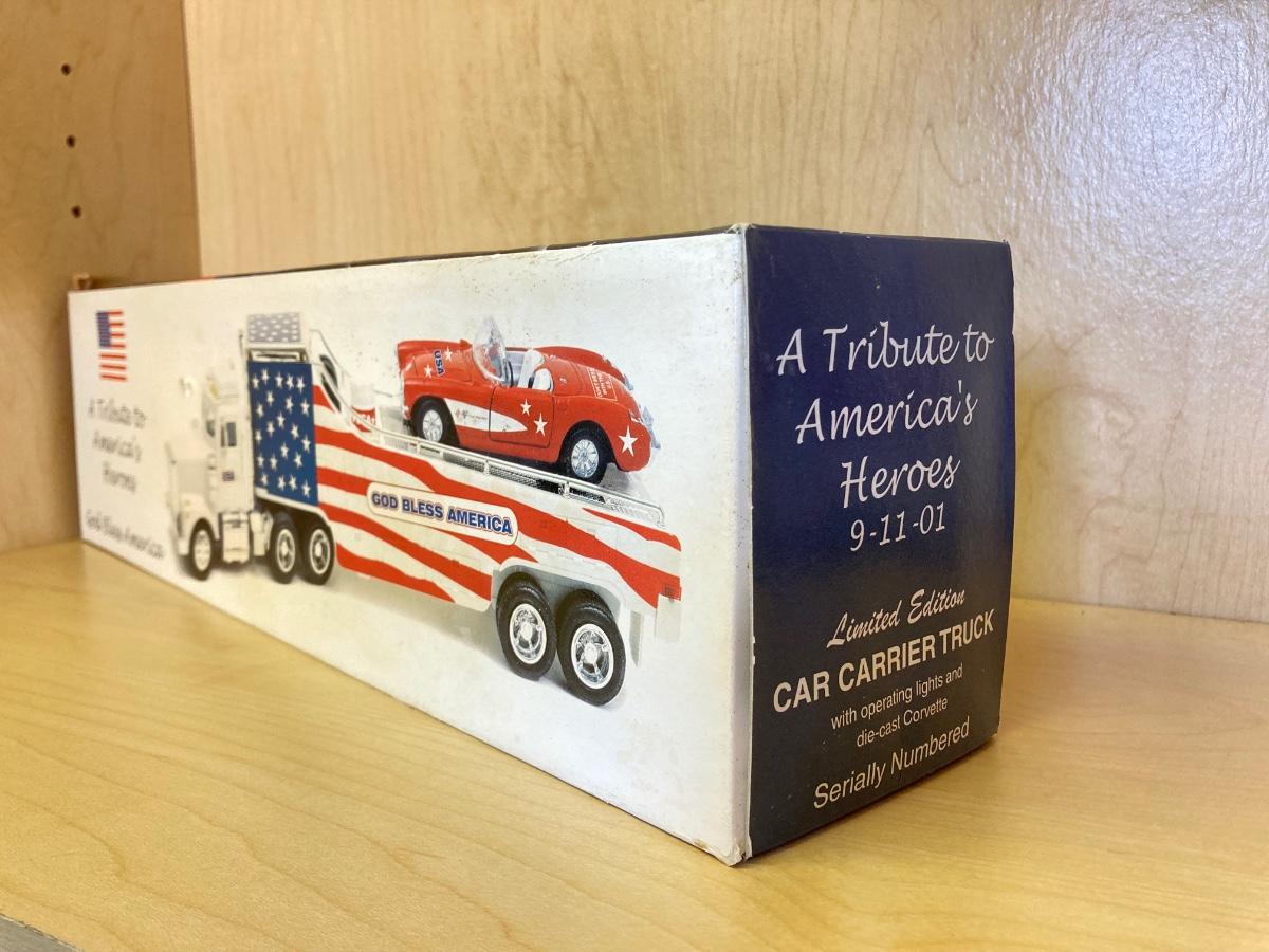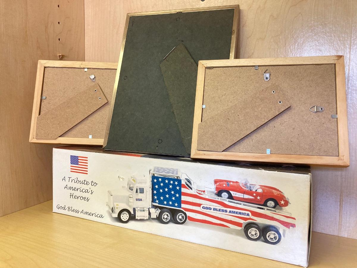 LOT 147: Tribute to America's Heroes Collection - Two Toy Trucks and Three Framed Wall Pictures