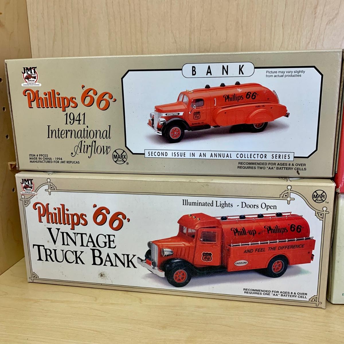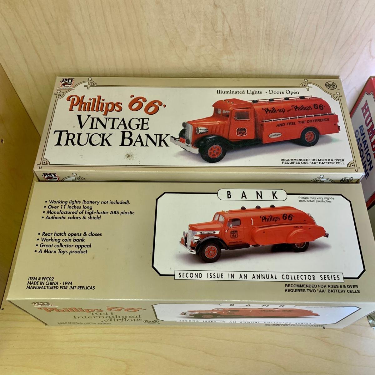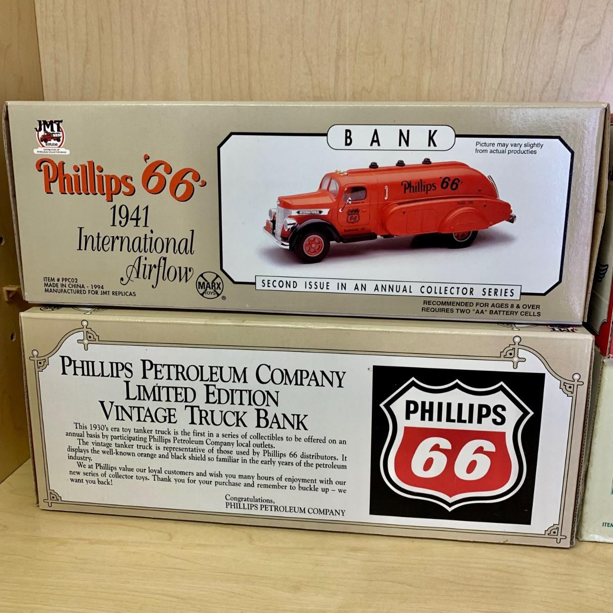 LOT 190: 1994 Phillips '66' 1941 International Airflow Second Issue Collectors Bank, Millennium 2000 Limited Edition American Commemorative Society Truck, Rickel, Humble, BP, & More