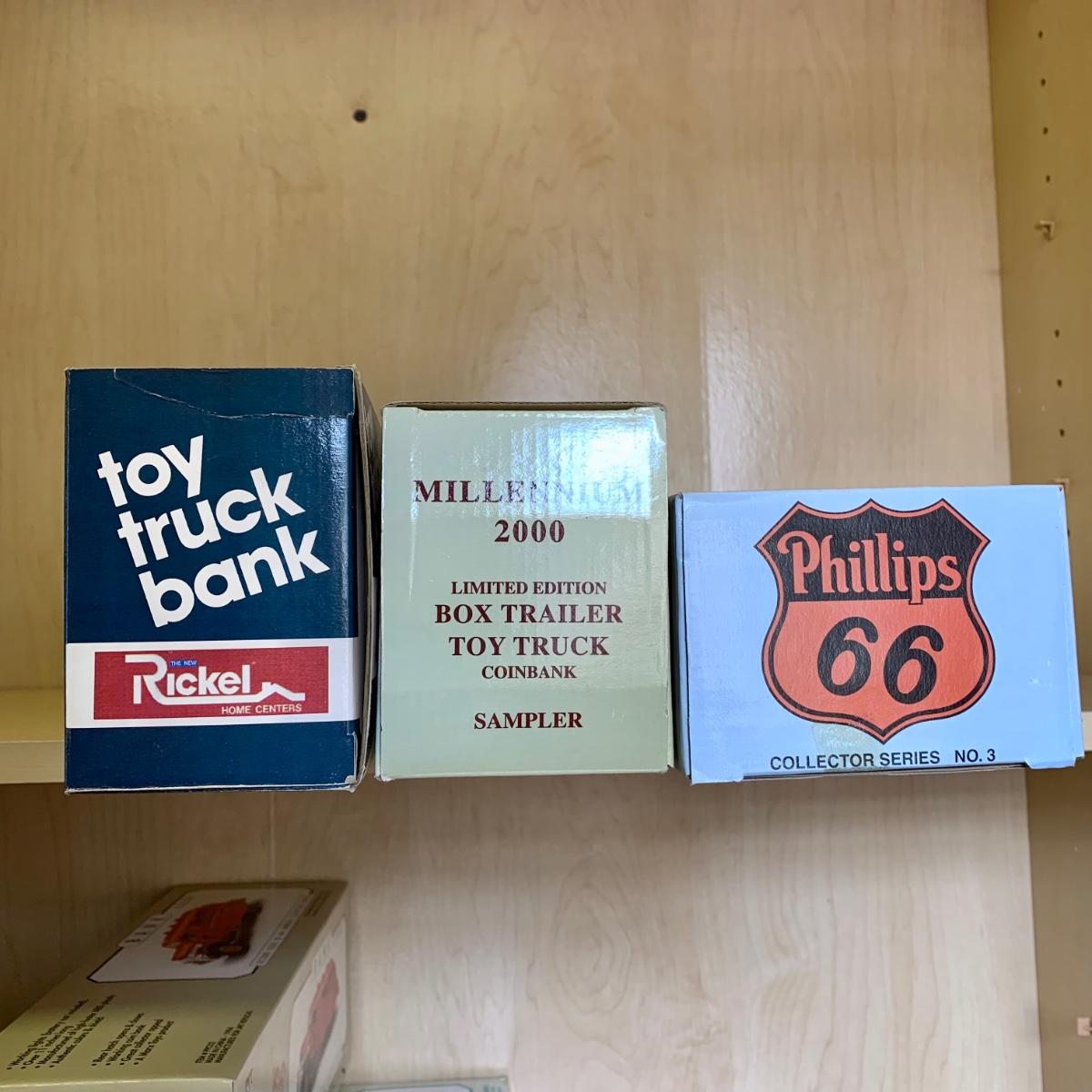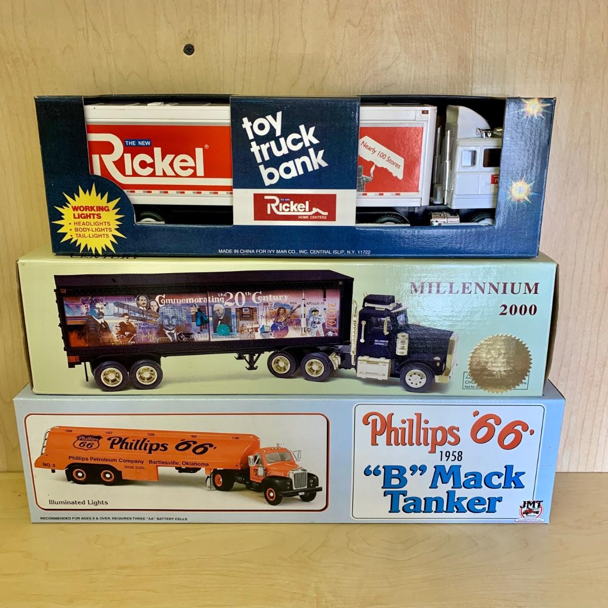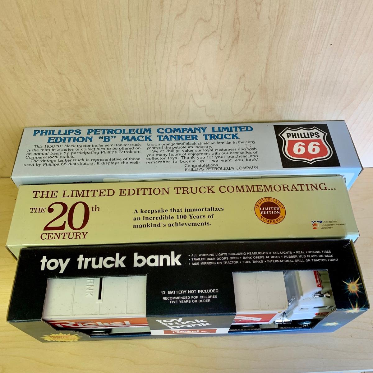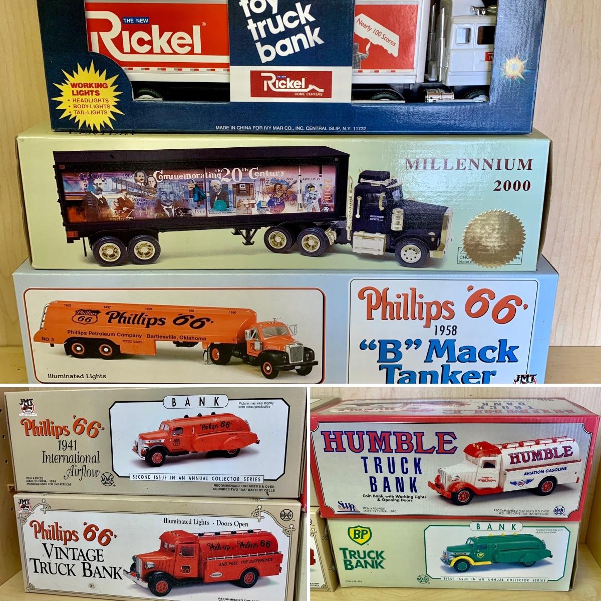 LOT 190: 1994 Phillips '66' 1941 International Airflow Second Issue Collectors Bank, Millennium 2000 Limited Edition American Commemorative Society Truck, Rickel, Humble, BP, & More