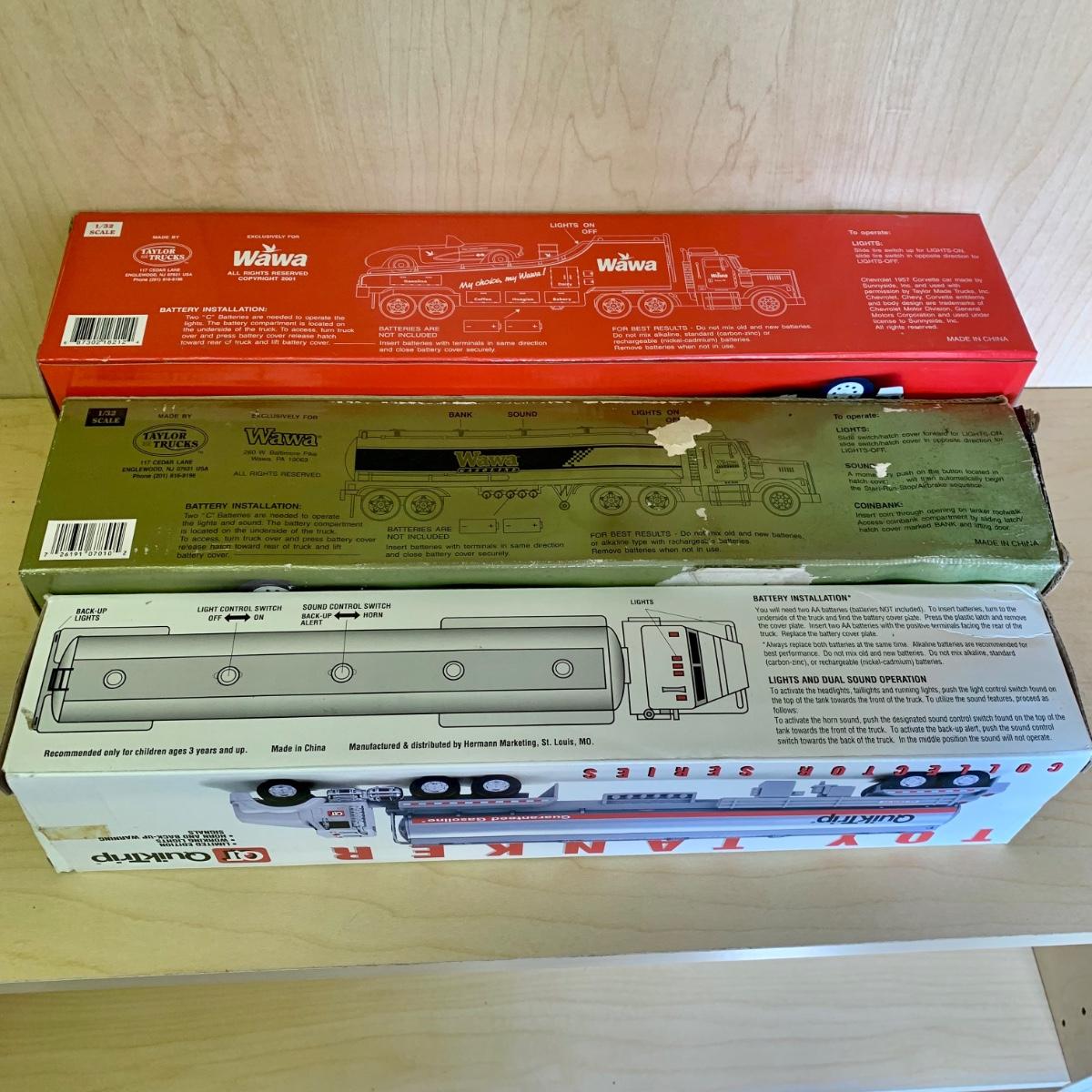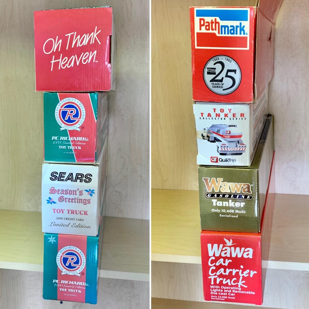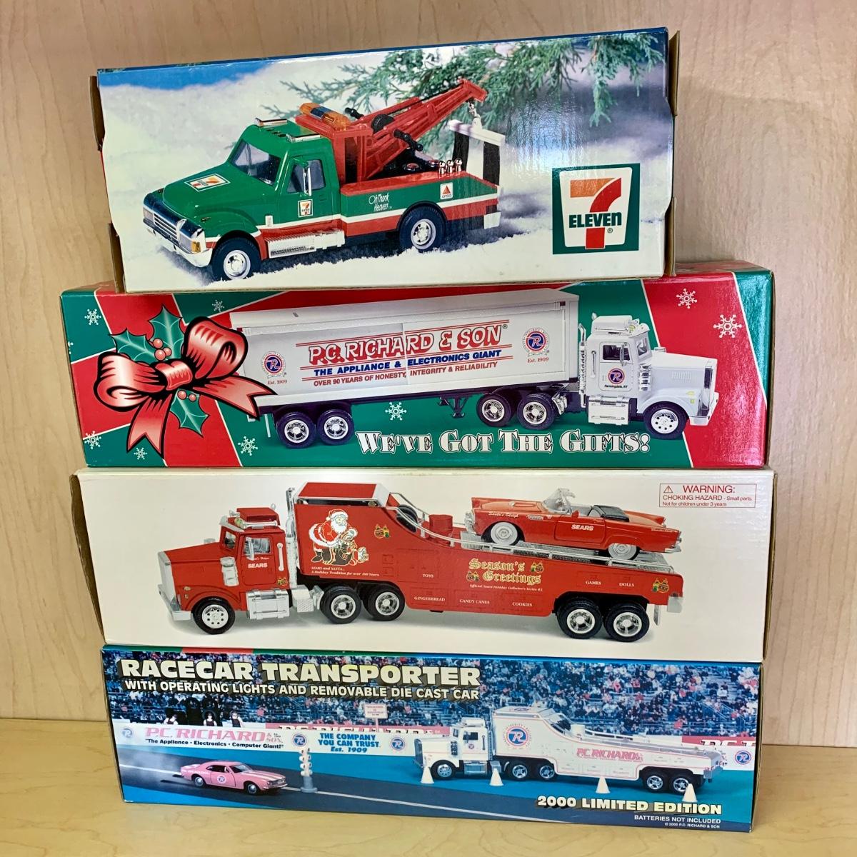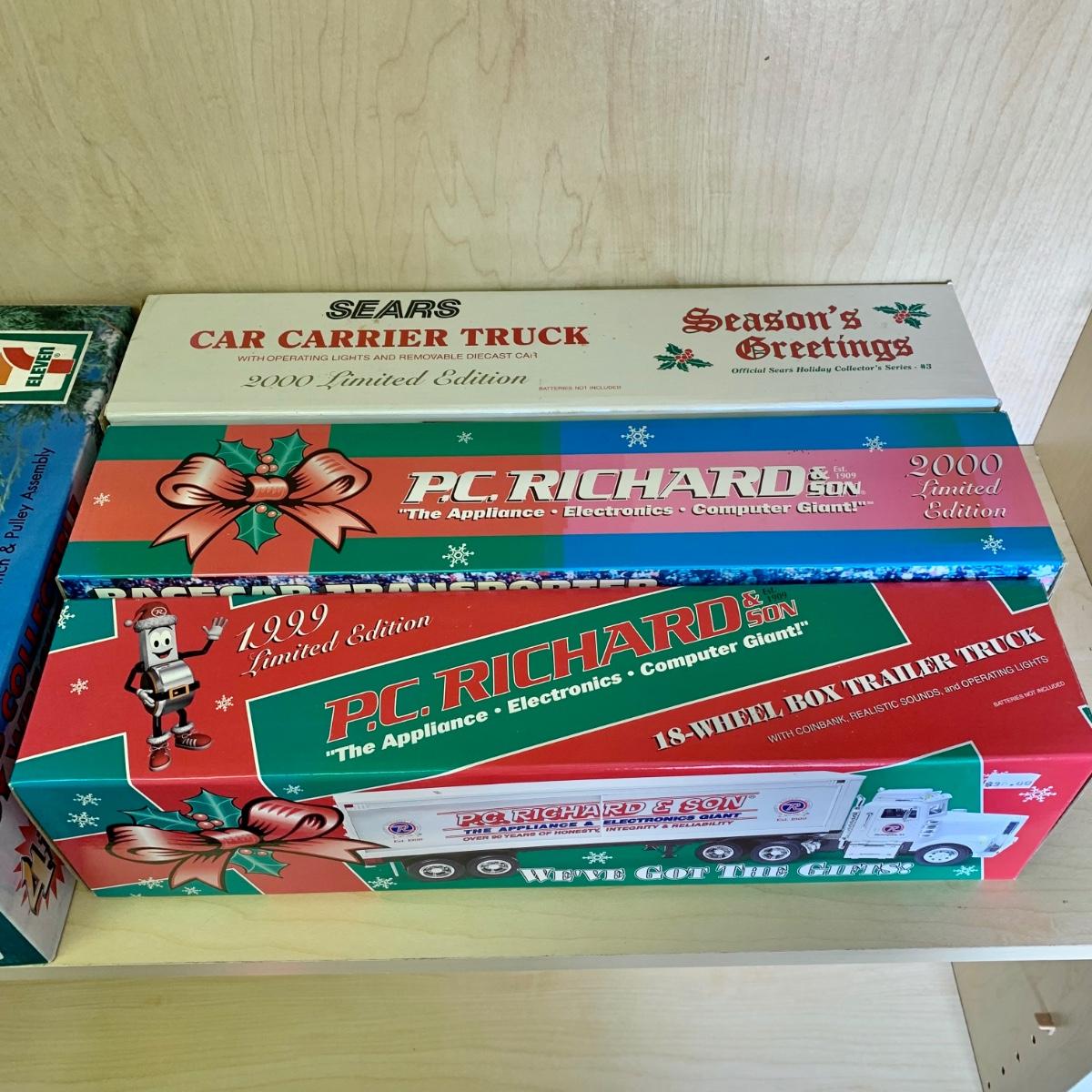 LOT 191: 1998 7/11 Collectible Toy Wrecker, 1993 Pathmark Limited Edition Tractor Trailer Lockable Bank, P.C. Richard & Sons, Sears, QuikTrip, Wawa, & More