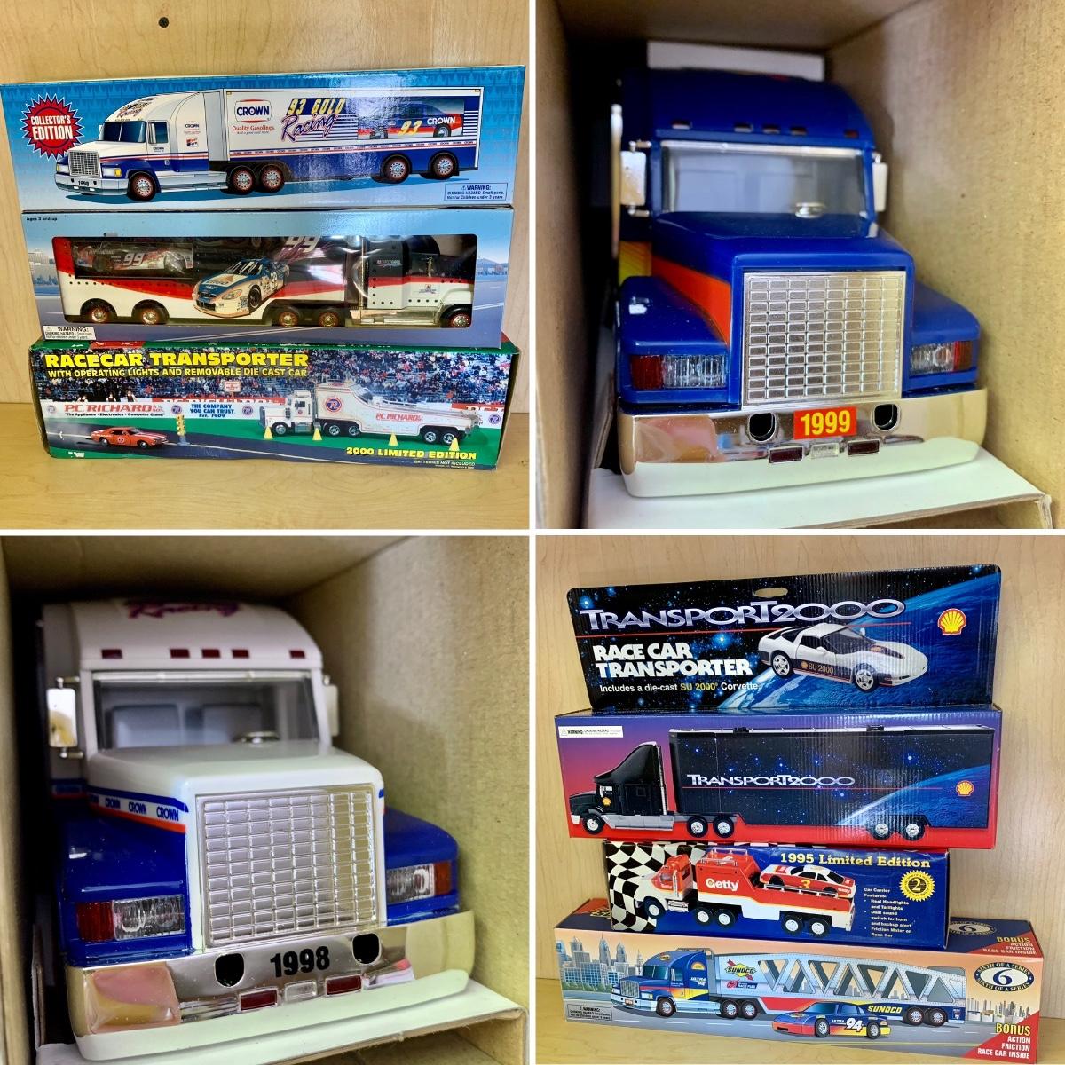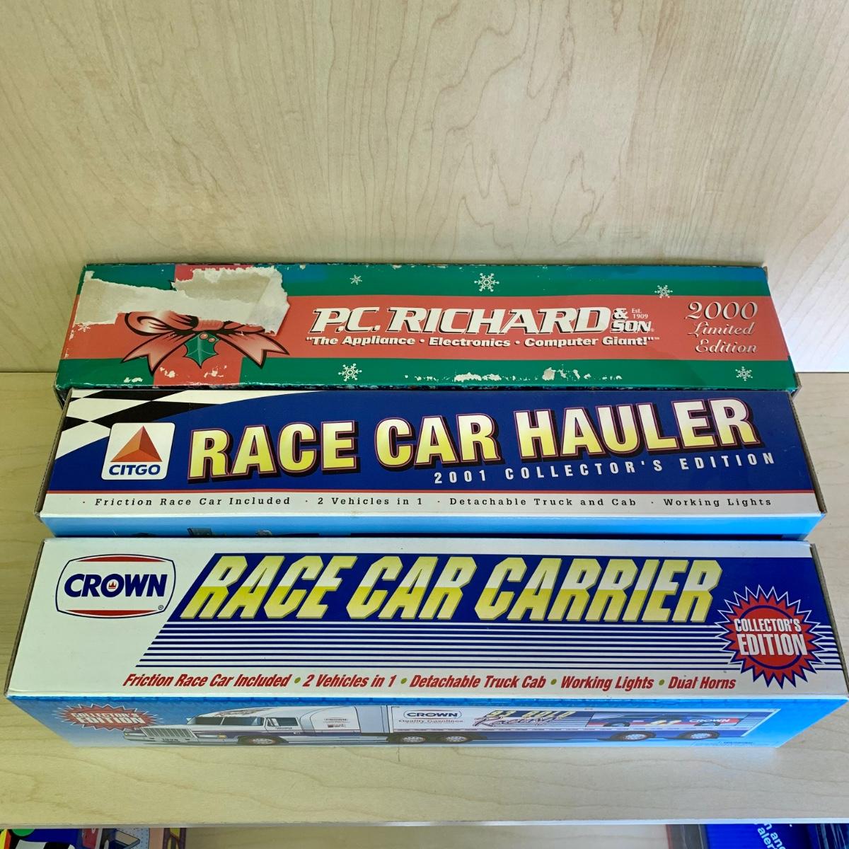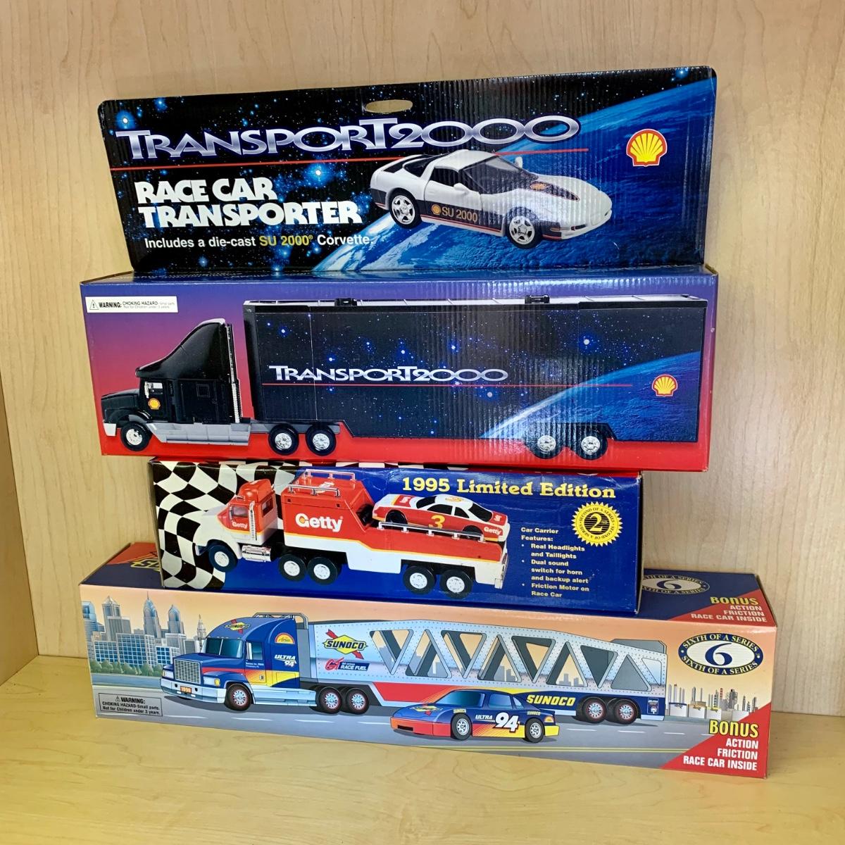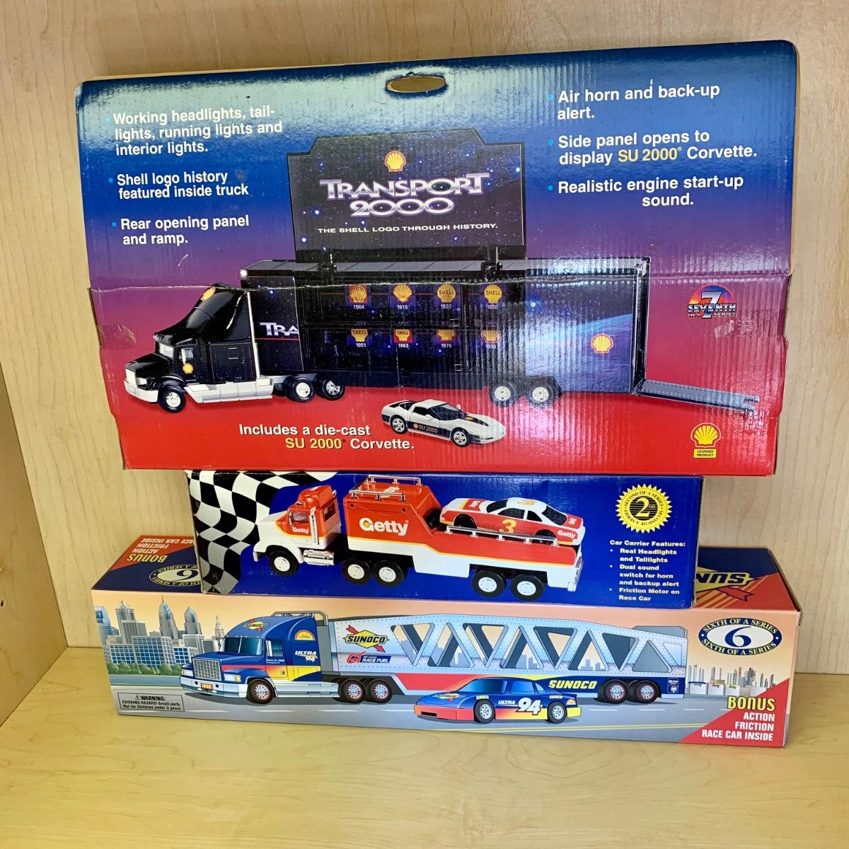 LOT 194: 2001 Collectors Edition Citgo Race Car Hauler, Shell Transport 2000 Race Car Transporter w/ Die-Cast Su 2000 Corvette, Crown, P.C. Richard & Son, Getty, Sunoco, & More