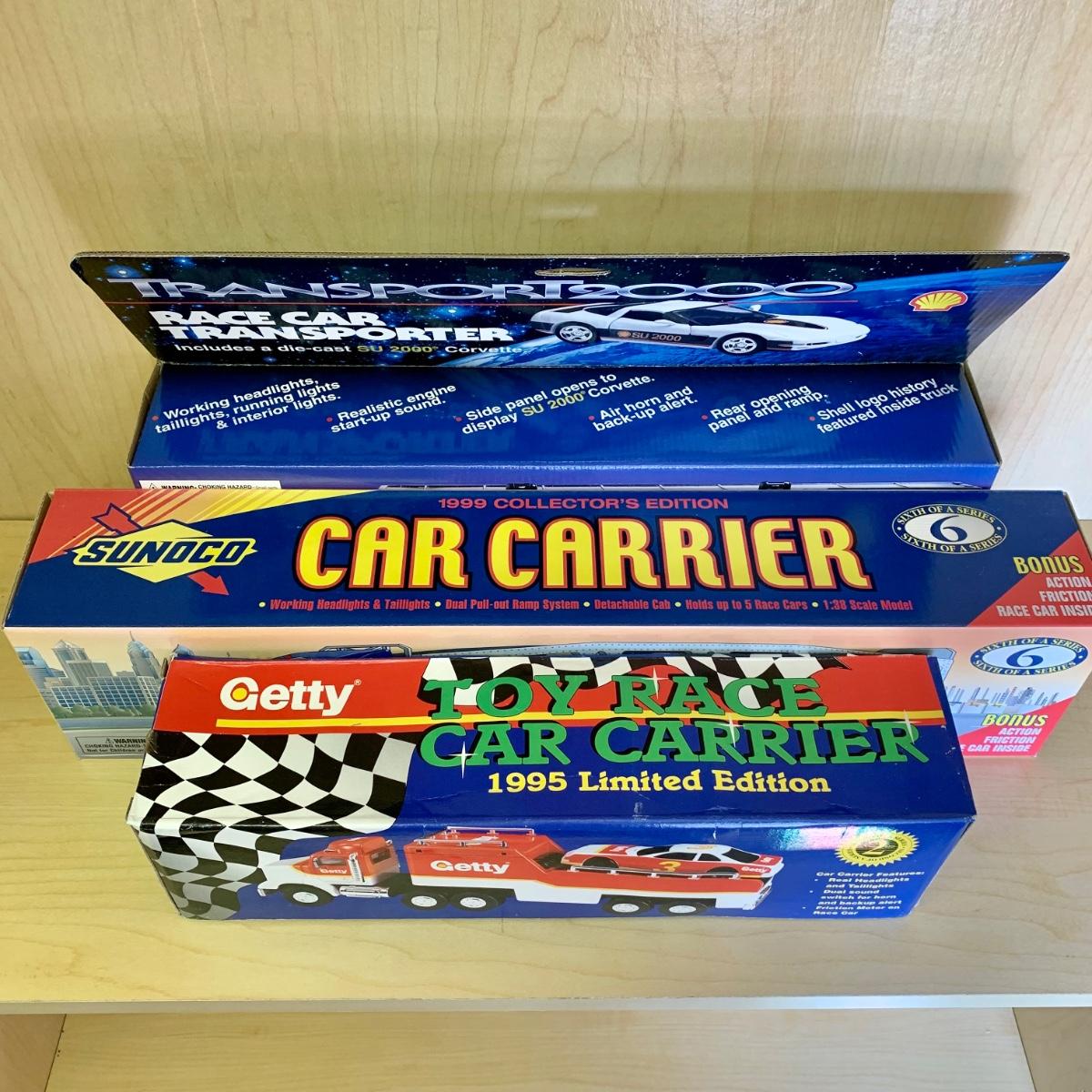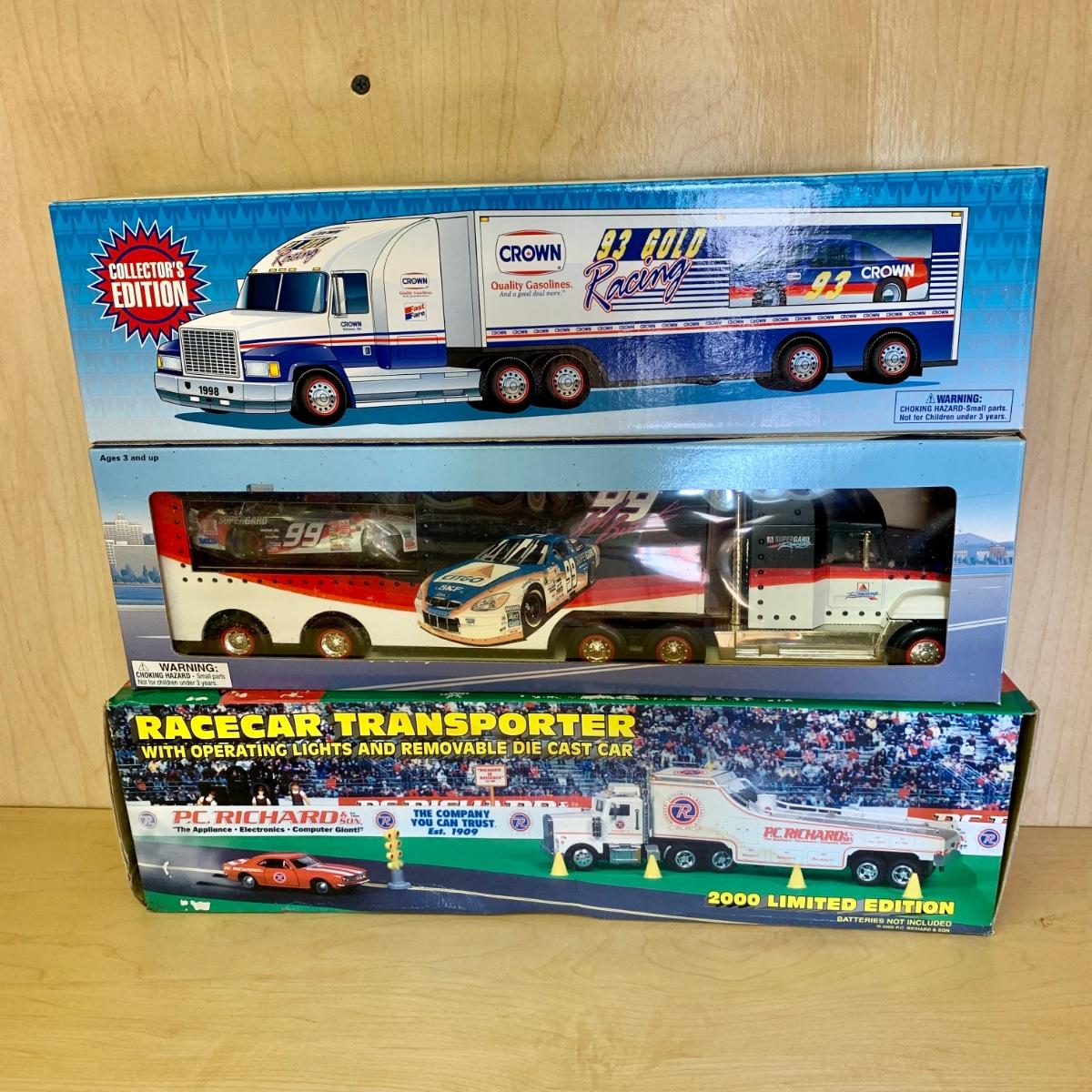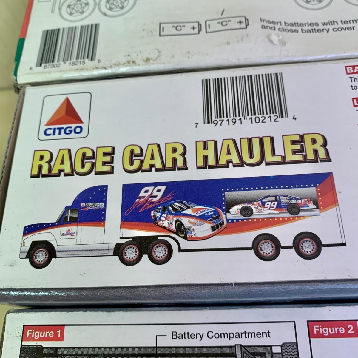 LOT 194: 2001 Collectors Edition Citgo Race Car Hauler, Shell Transport 2000 Race Car Transporter w/ Die-Cast Su 2000 Corvette, Crown, P.C. Richard & Son, Getty, Sunoco, & More