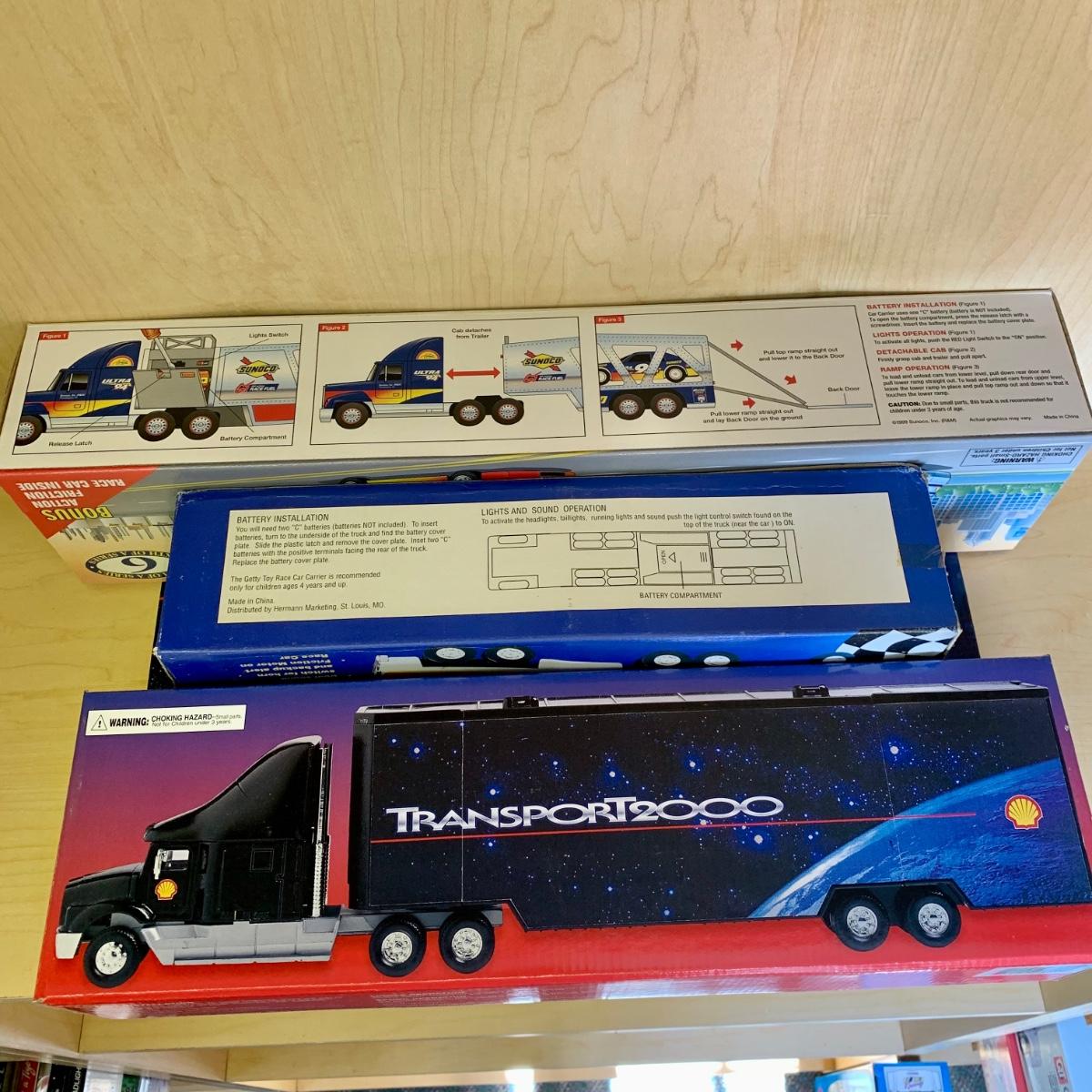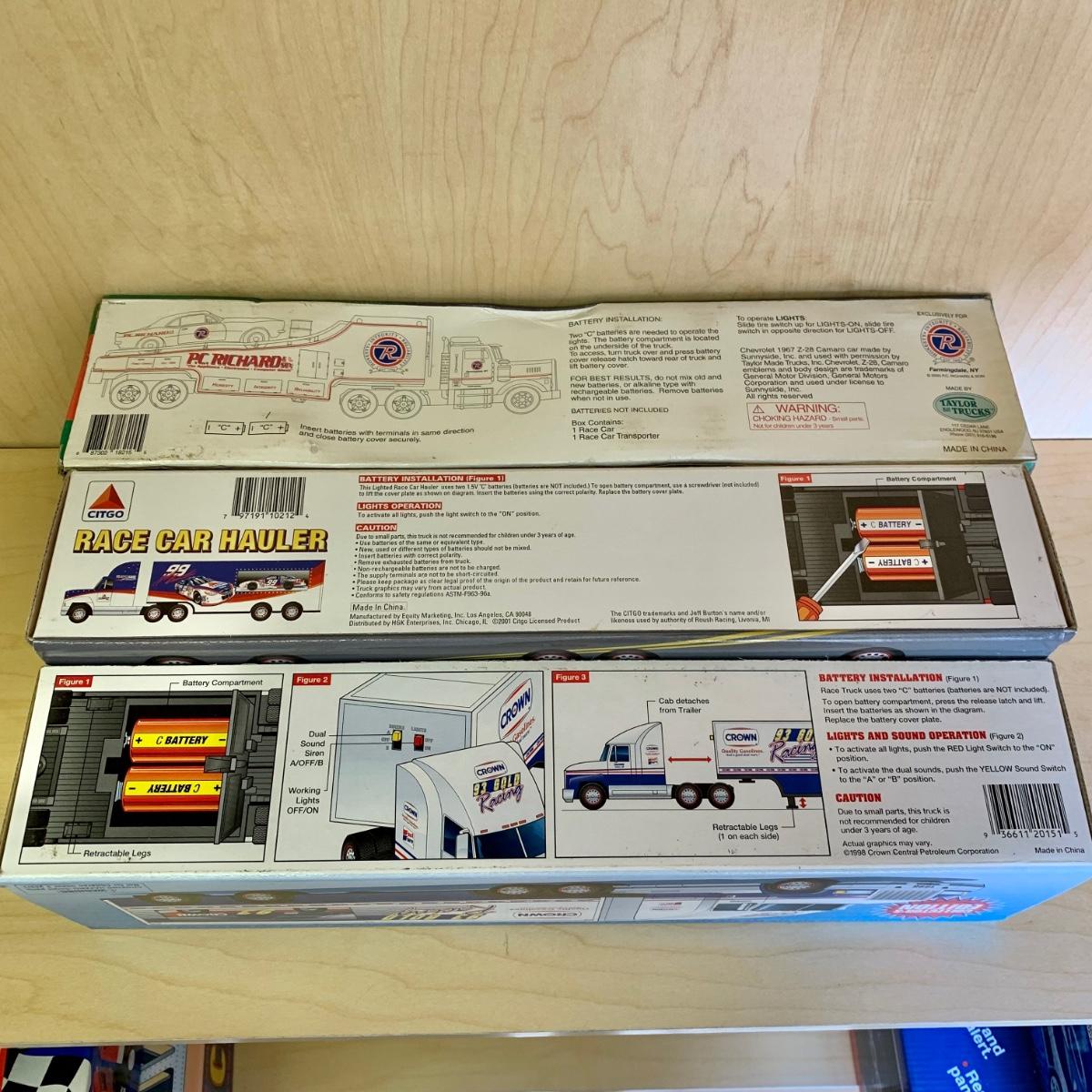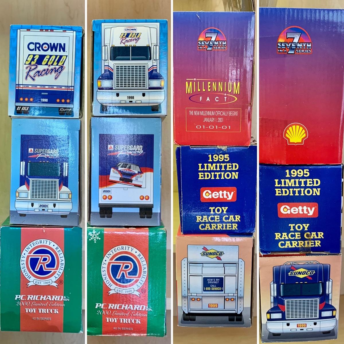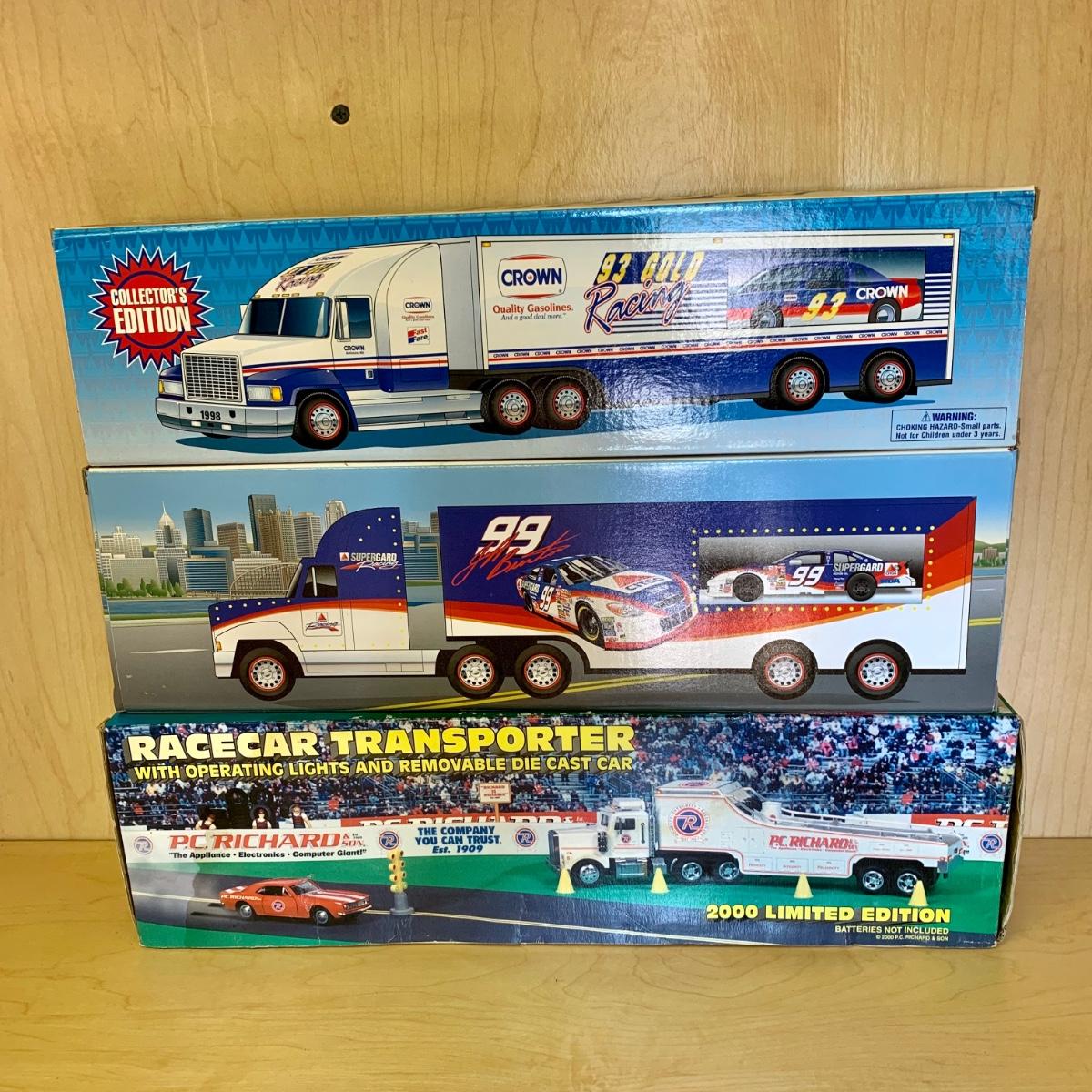 LOT 194: 2001 Collectors Edition Citgo Race Car Hauler, Shell Transport 2000 Race Car Transporter w/ Die-Cast Su 2000 Corvette, Crown, P.C. Richard & Son, Getty, Sunoco, & More