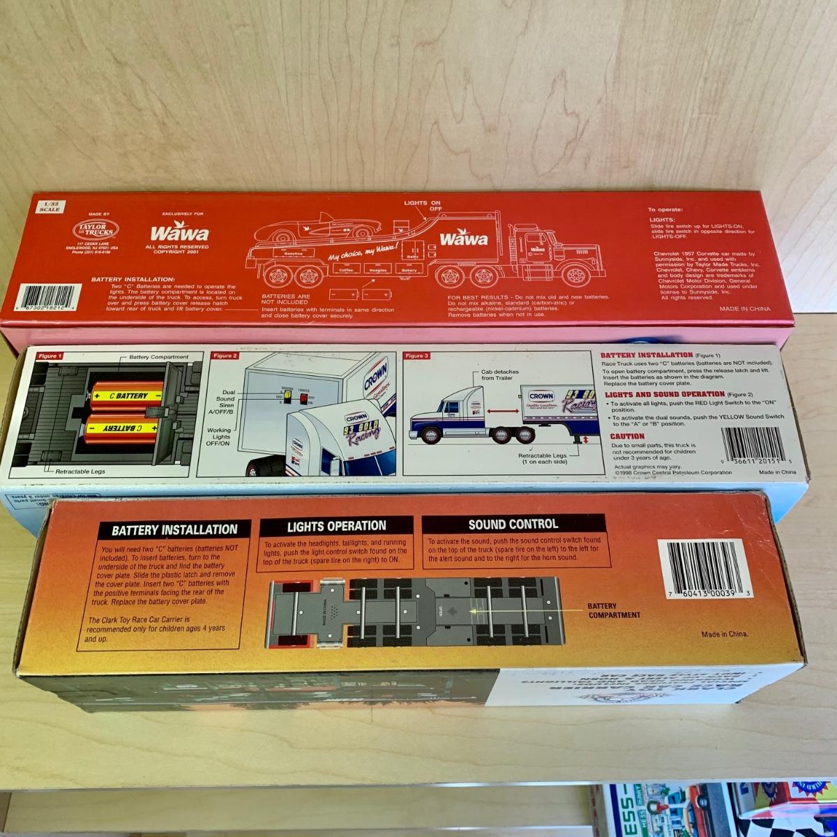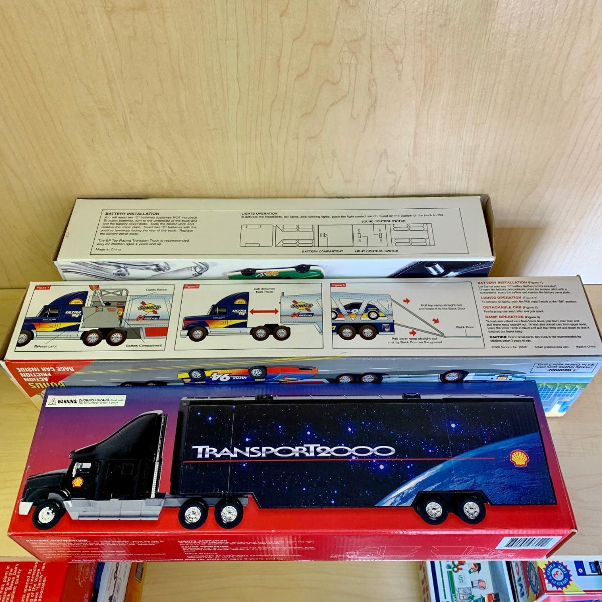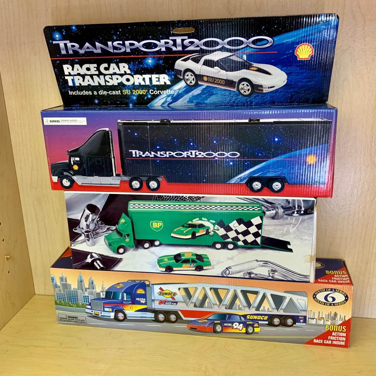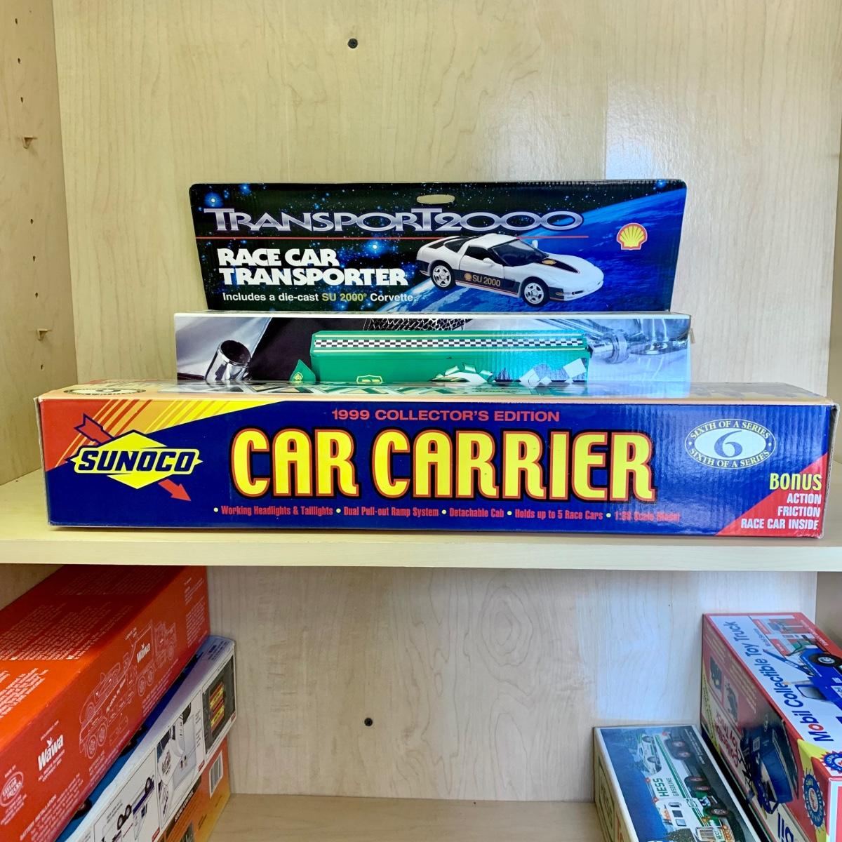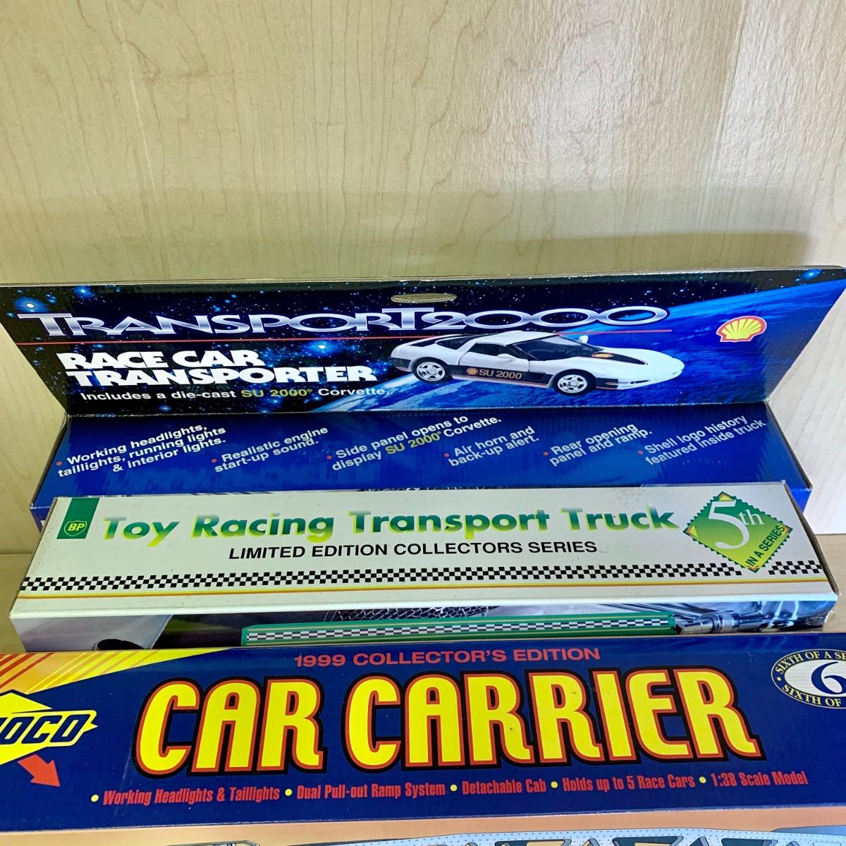 LOT 195: 3rd in Series 1995 Mobil Collectible Toy Truck, 2nd in Series 2001 Wawa Car Carrier Truck w/ Die-Cast Car, Shell, BP, Sunoco, Clark, Crown, Hess, Getty, & More