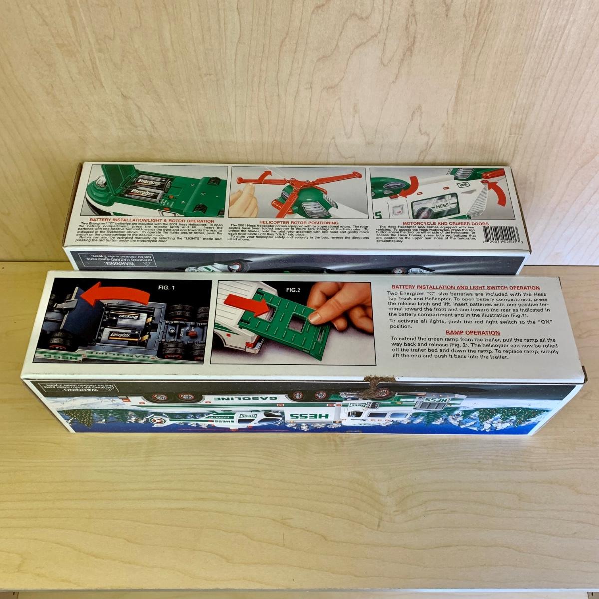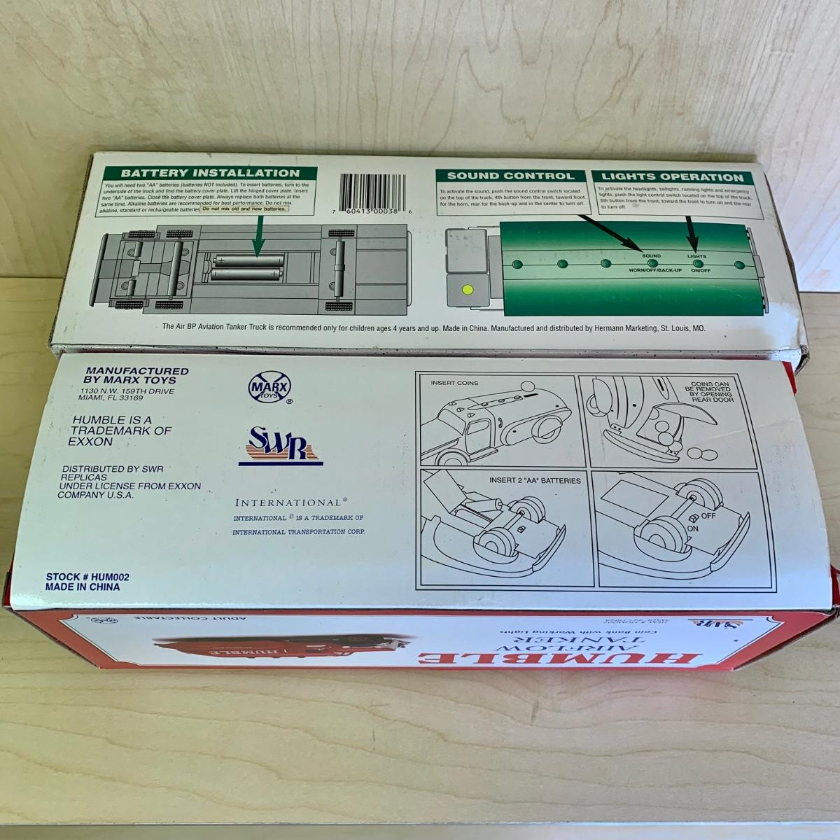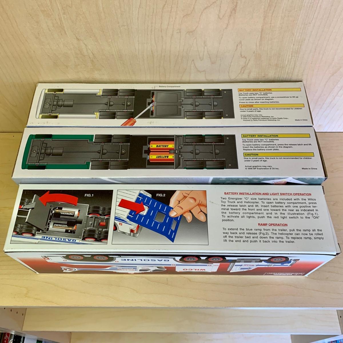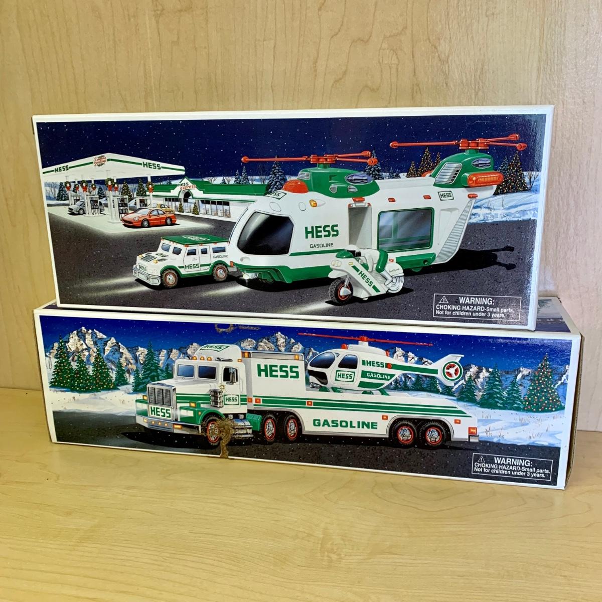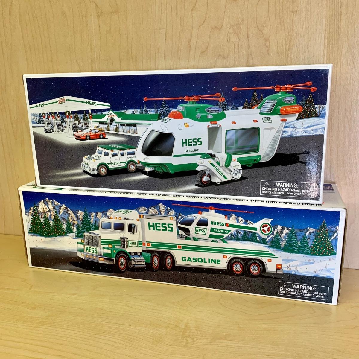 LOT 198: 6 in Series Air BP Aviation Tanker, 2001 Hess Helicopter With Motorcycle And Cruiser, Wilco, Getty, Humble, & More