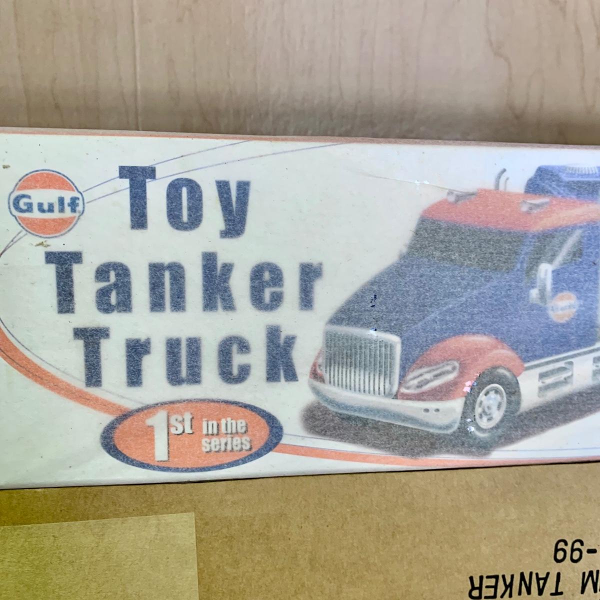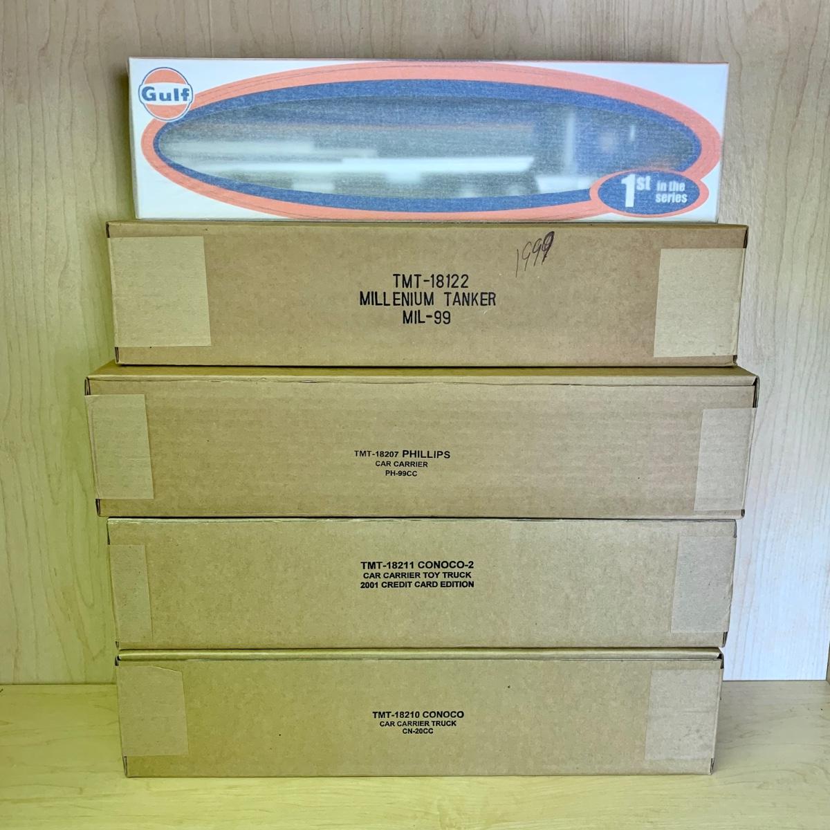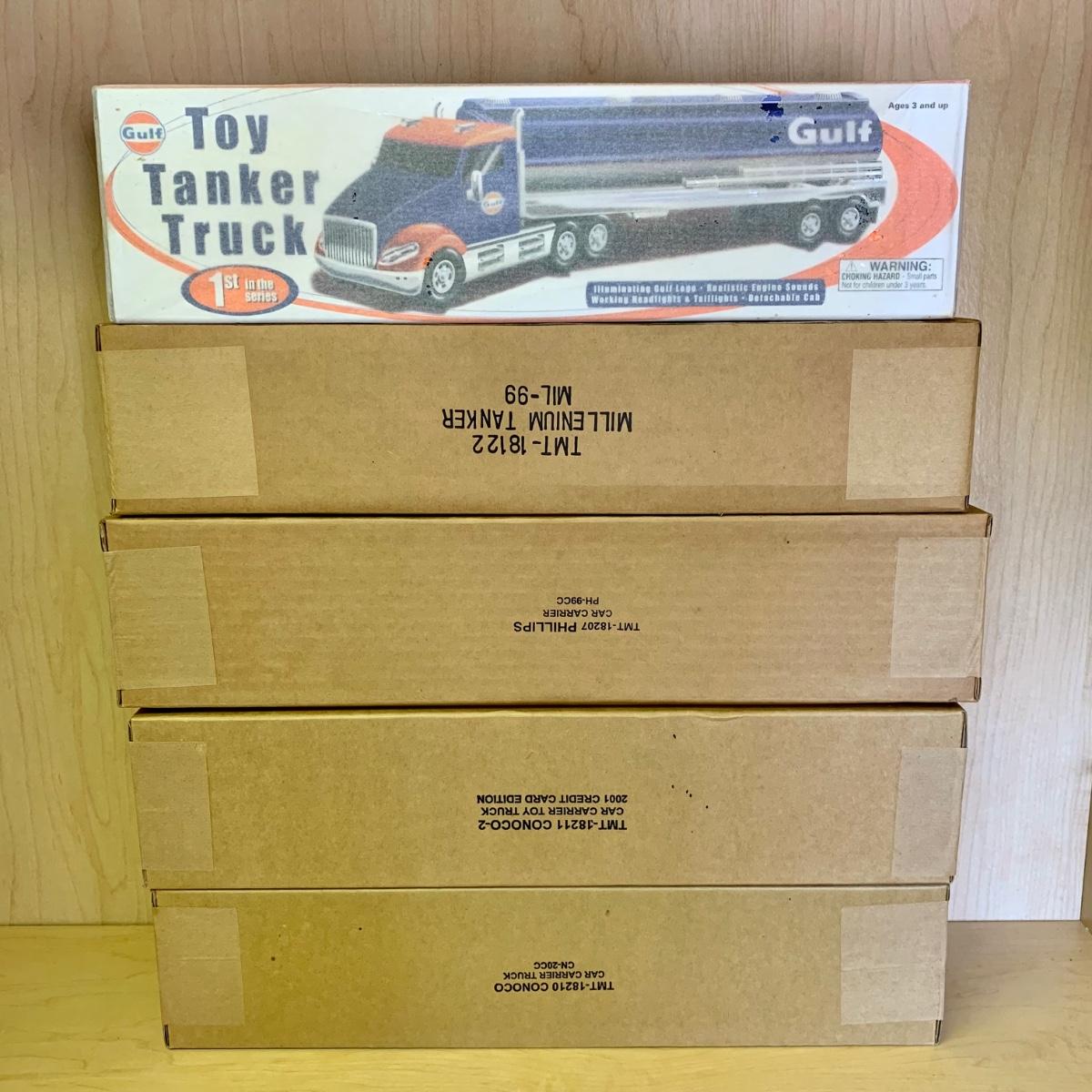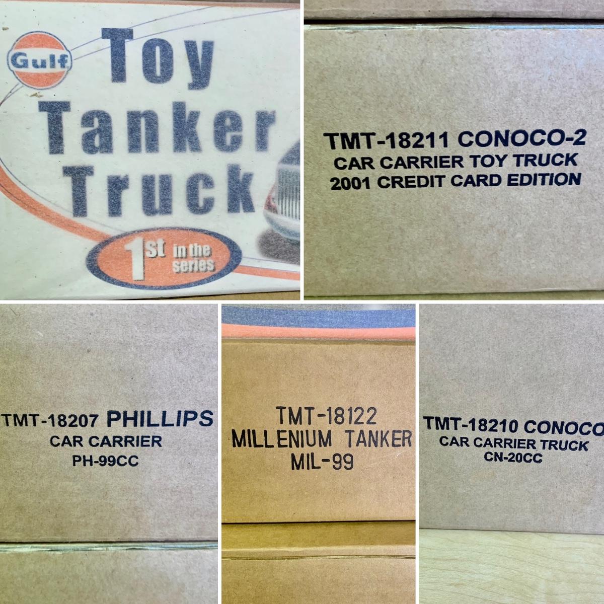 LOT 207: NIP 1st in Series 2004 Gulf Toy Tanker Truck, 1st in Series 2000 Conoco Car Carrier Limited Edition Toy Truck, & More