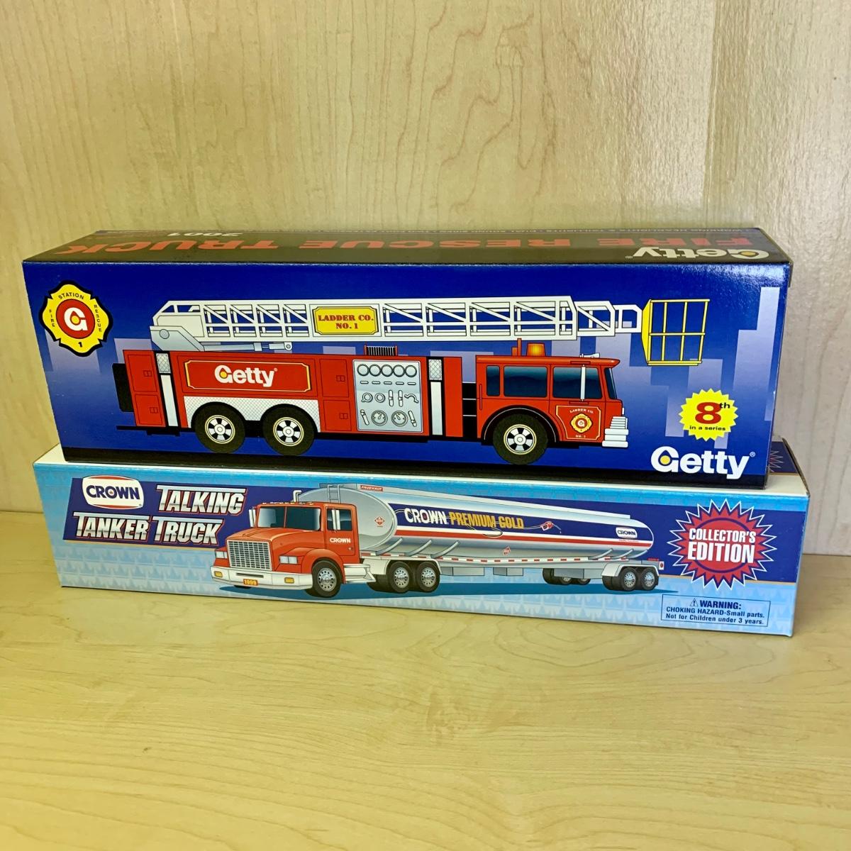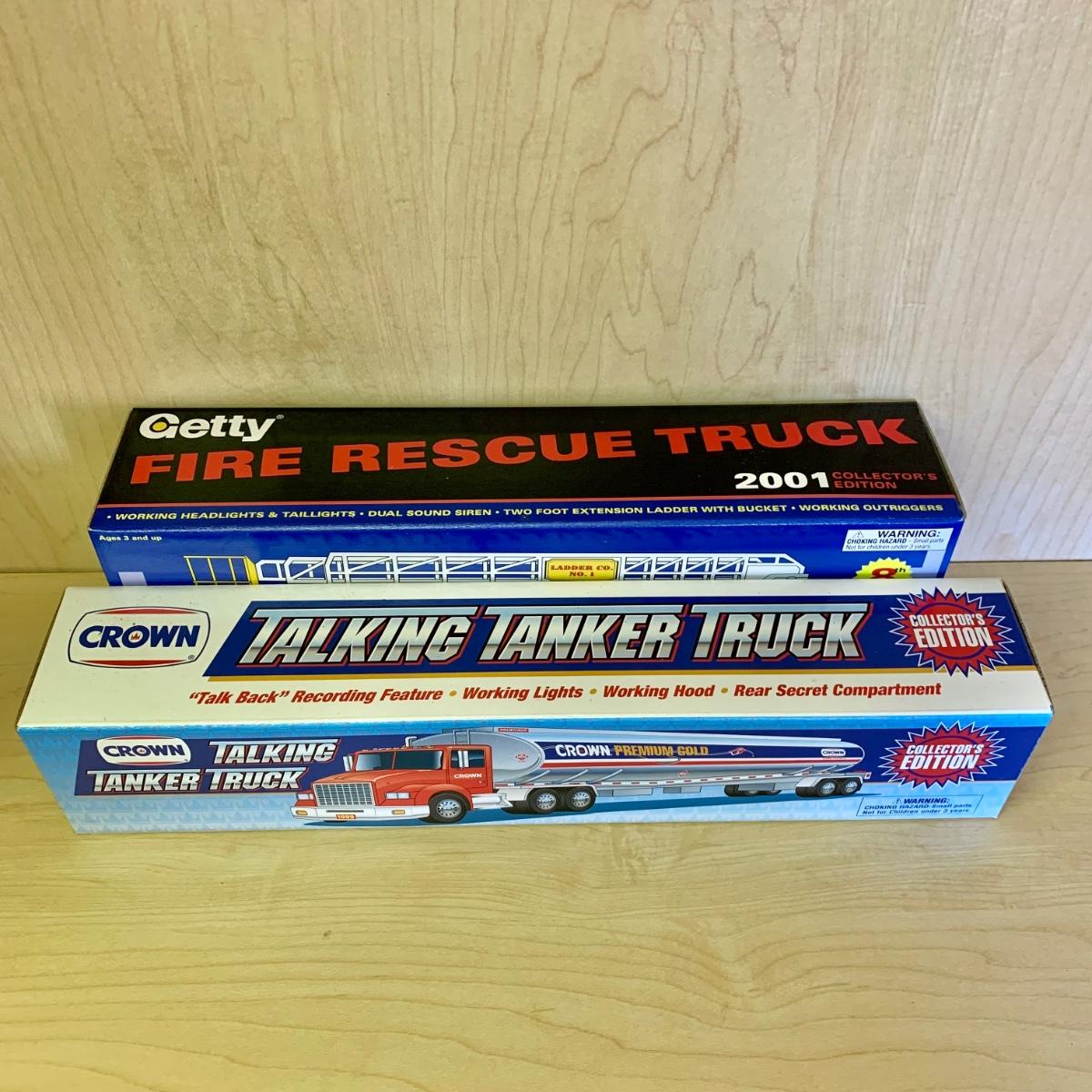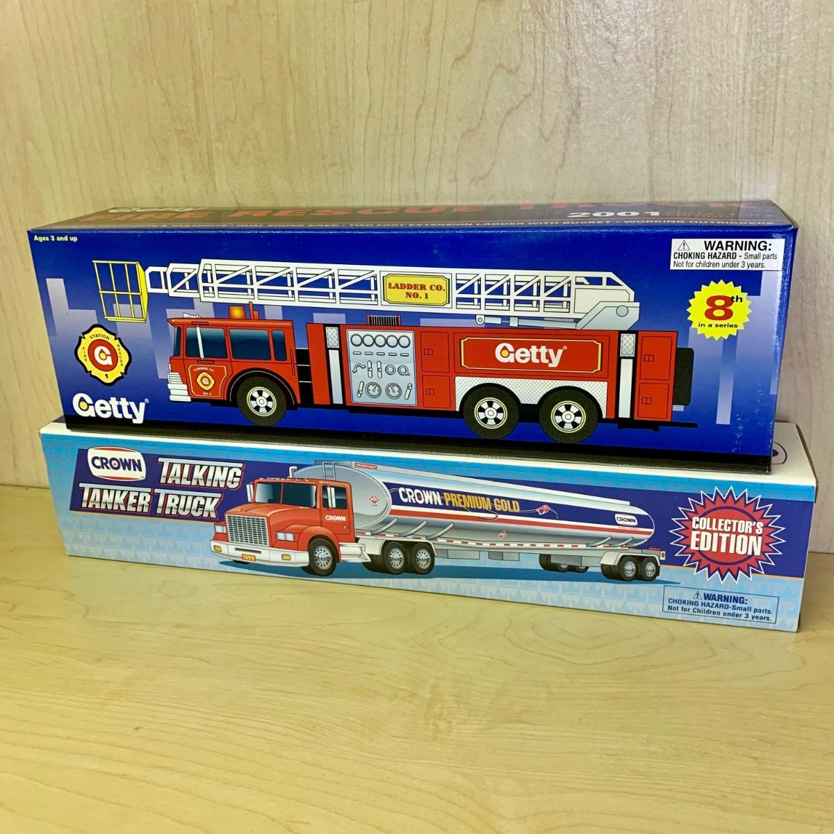 LOT 214: Wilco Toy Truck And Space Shuttle With Satellite, 2001 GettyCollectors Edition Fire Rescue Truck, Crown, & More