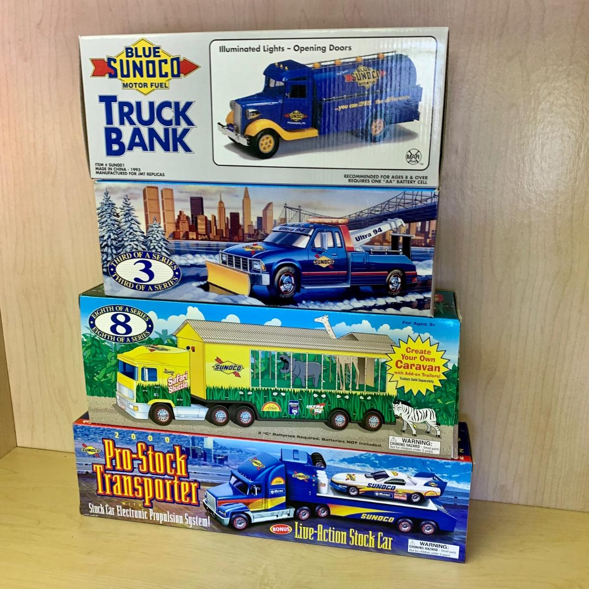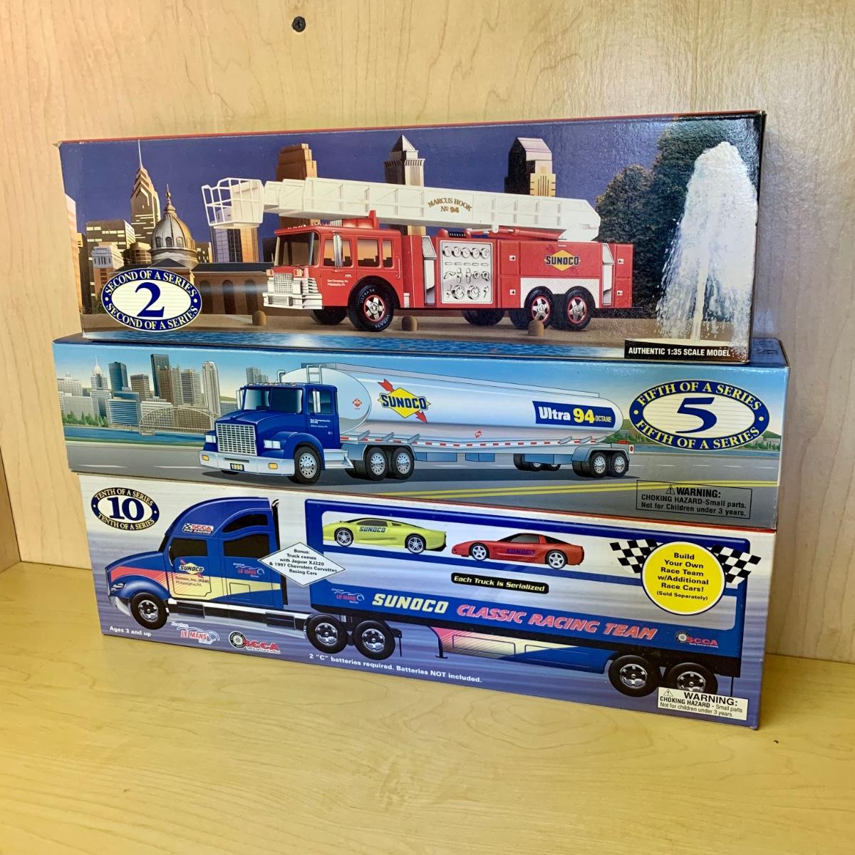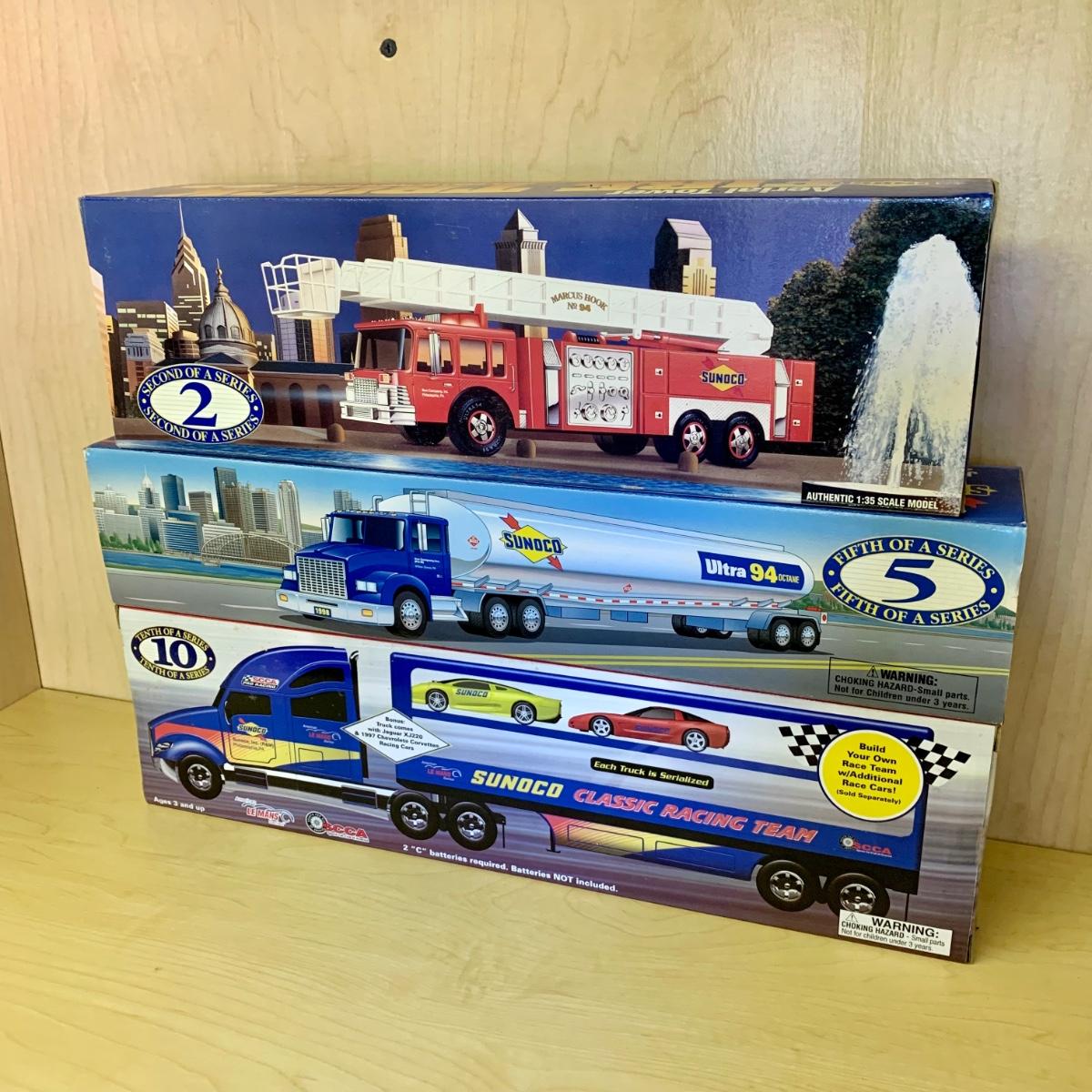 LOT 215: Sunoco Toy Truck Collection: 2003 Sunoco Classic Racing Team 10th Anniversary Truck, 8th in Series 2001 Sunoco Safari Shuttle, & More