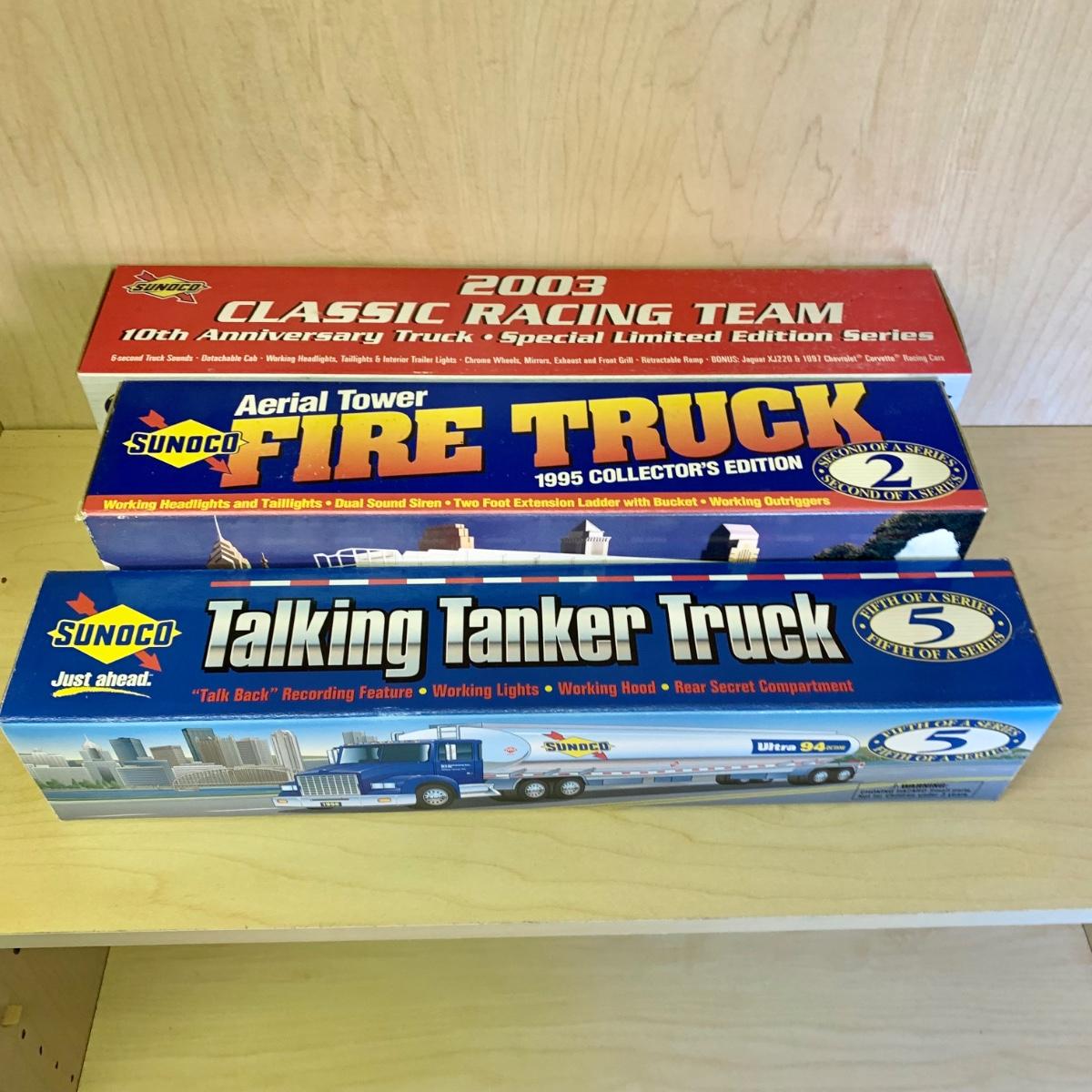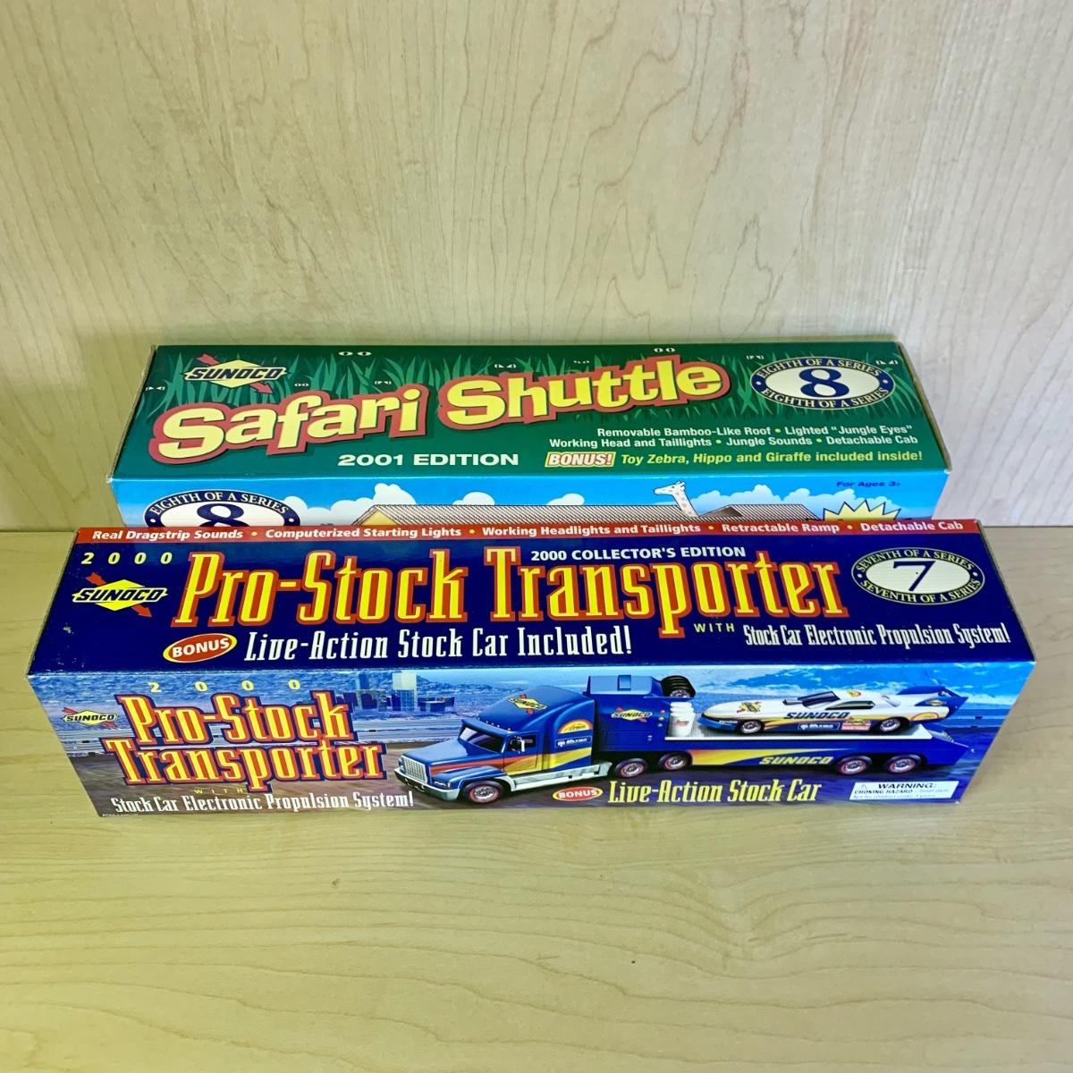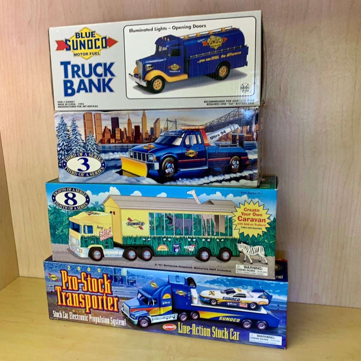 LOT 215: Sunoco Toy Truck Collection: 2003 Sunoco Classic Racing Team 10th Anniversary Truck, 8th in Series 2001 Sunoco Safari Shuttle, & More