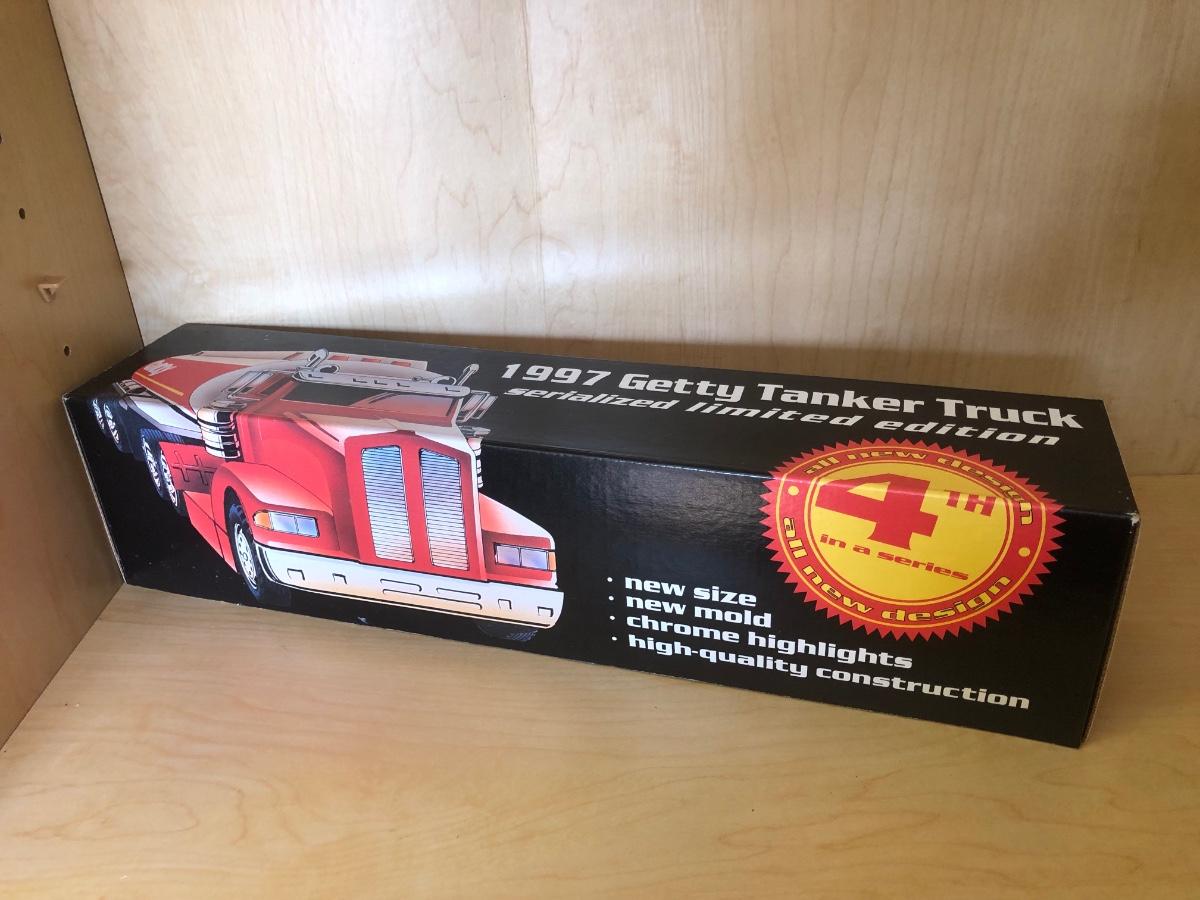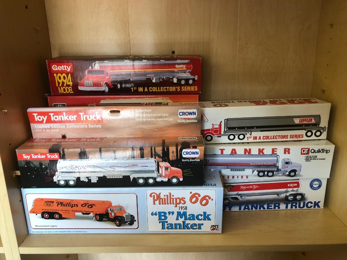 LOT 220: Collectible Tanker Trucks - Philli;s 66 1958 "B" Mack, 1994 Getty Model #1 in Series, 1994 Collector's Ed Sunoco #1 in Series, 1997 Getty Serialized Ltd Ed 4th in Series & More