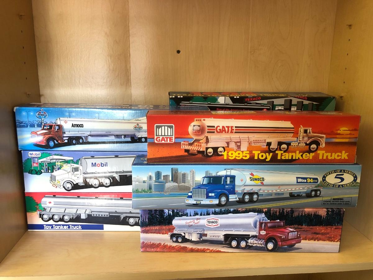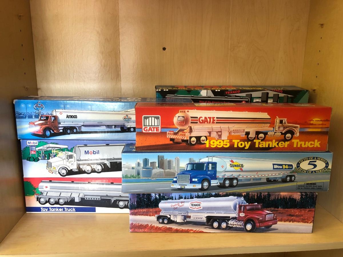 LOT 221: Collectible Toy Tanker Trucks - 1997 Mobil, 1994 Texaco 1st in Series, 1994 Sunoco 1st in Series, 1993 Mobil Ltd Ed, 1995 Gate 1st in Series, Sunoco 5th in Series Talking Tanker Truck & More