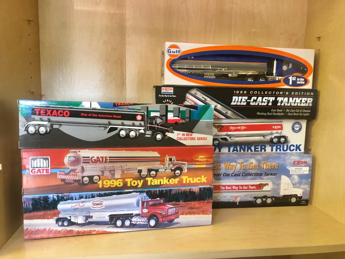 LOT 225: Collectible Toy Tanker Trucks incl 1999 Collector's Edition Exxon Die-Cast Tanker & 2000 Exxon Premier Die Cast Collectible Tanker