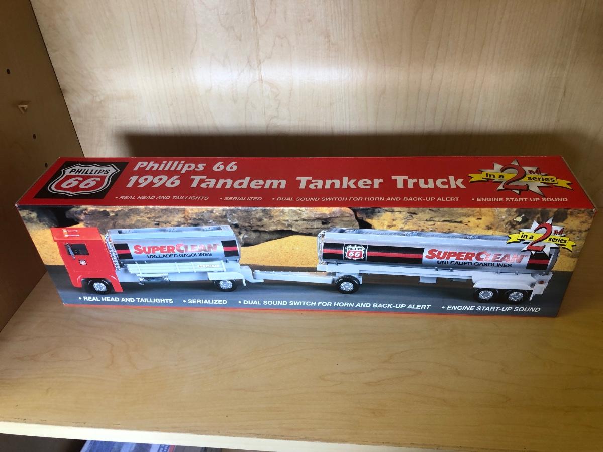 LOT 230: Collectible Toy Tanker Trucks - 1994 Texaco, Phillips 66 1958 "B" Mack Tanker, Phillips 66 1966 Tandem 2nd in Series, Texaco 1975 Truck 1995 Edition & More