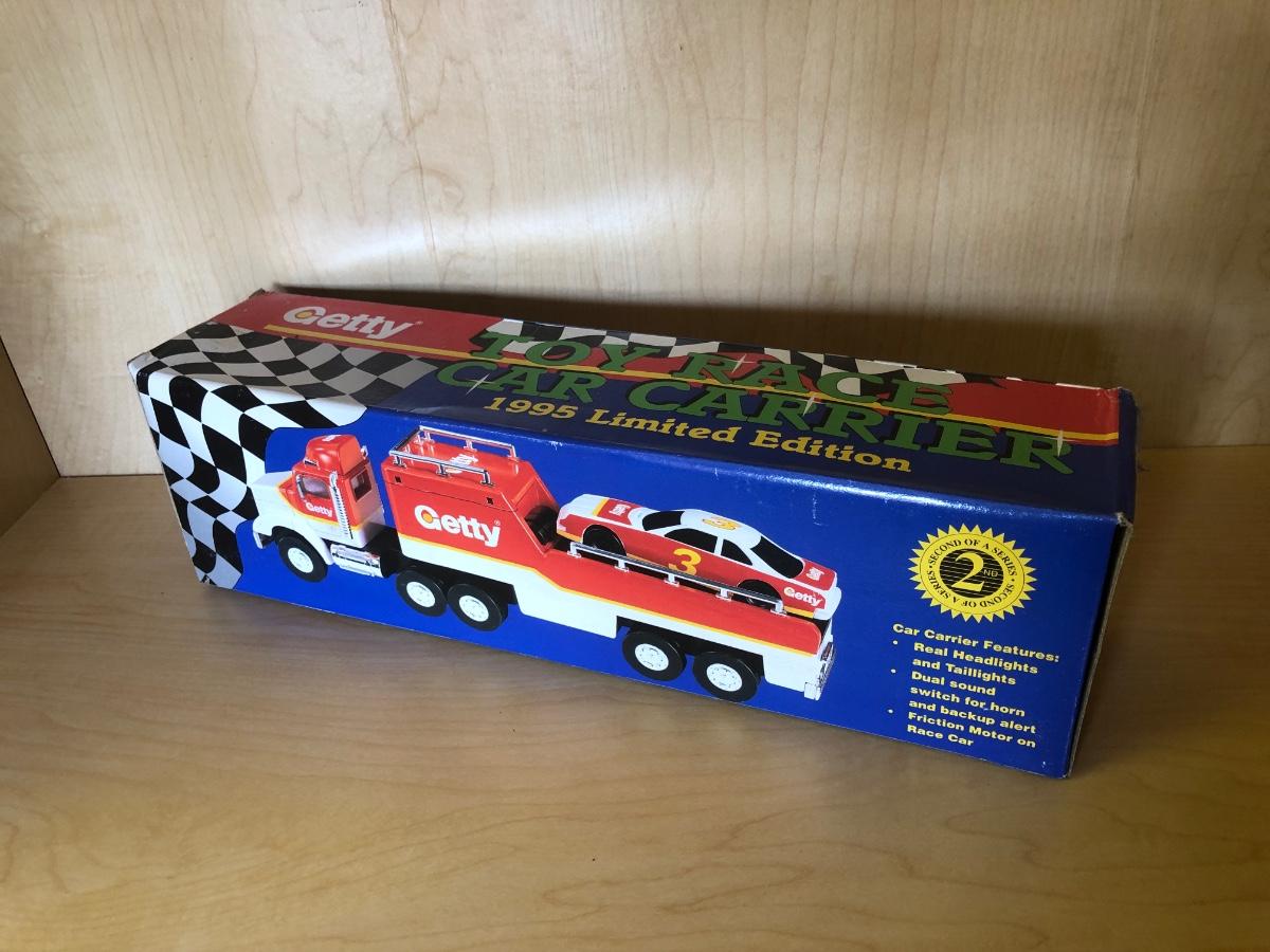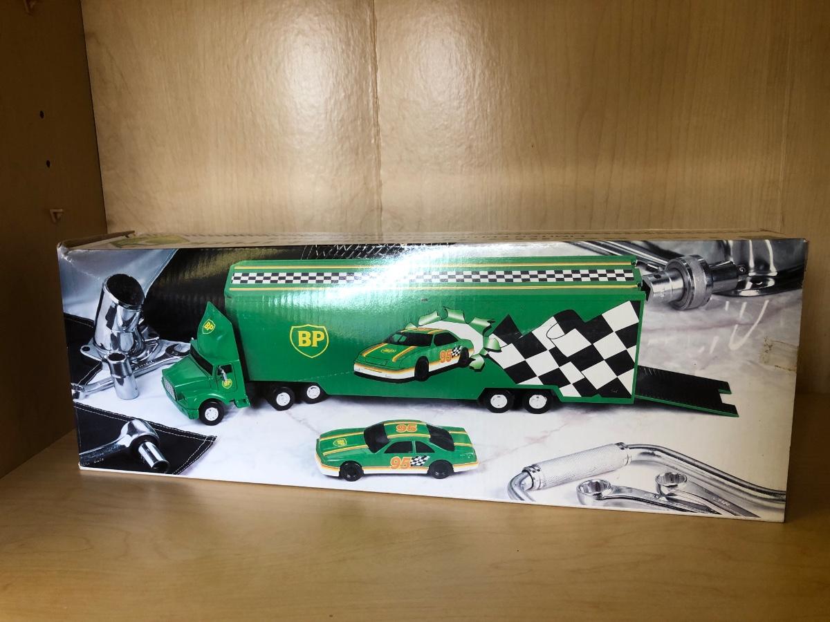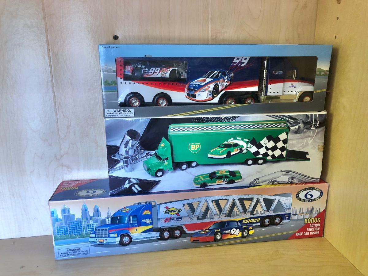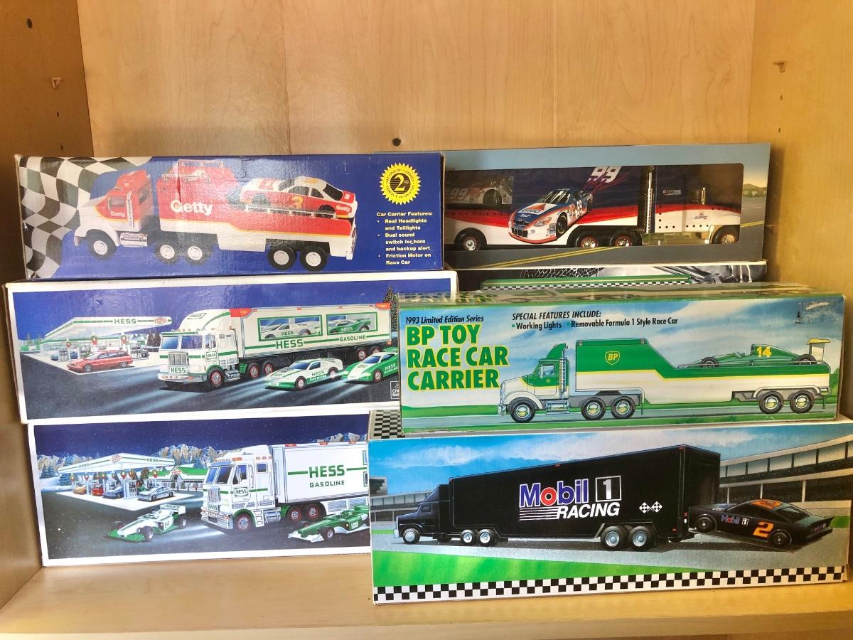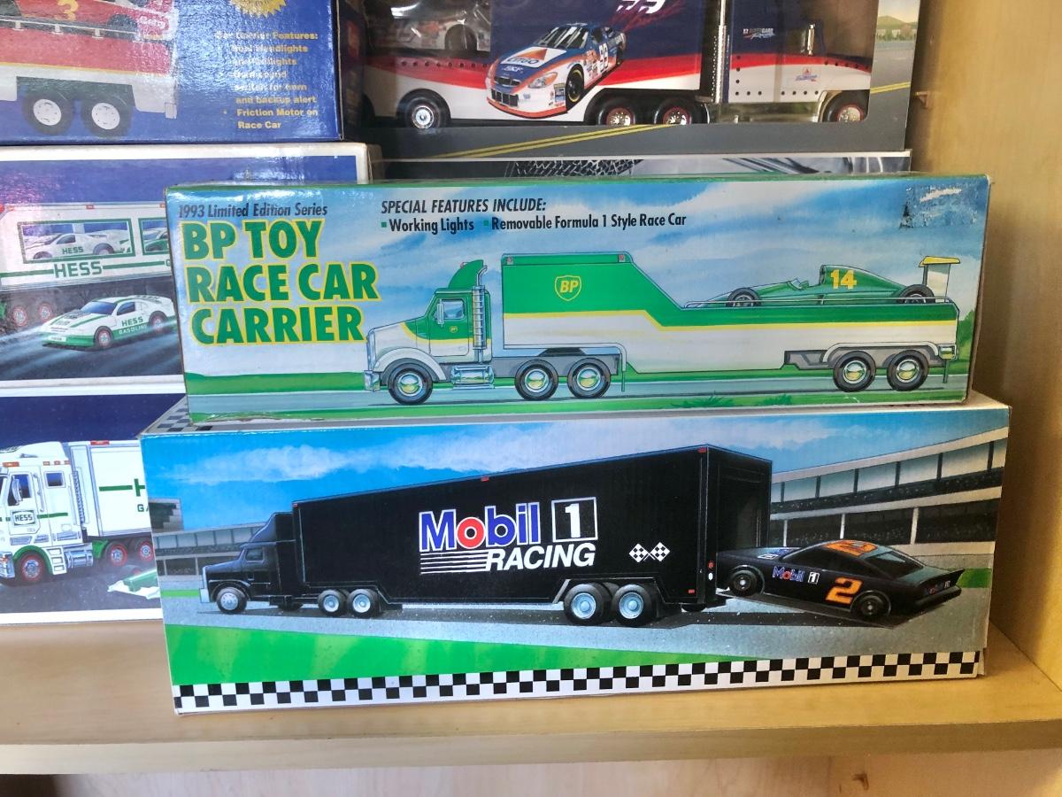 LOT 233: Collectible Race Car Carrier Trucks - BP, Mobil, Hess, Getty, Sunoco & Citgo