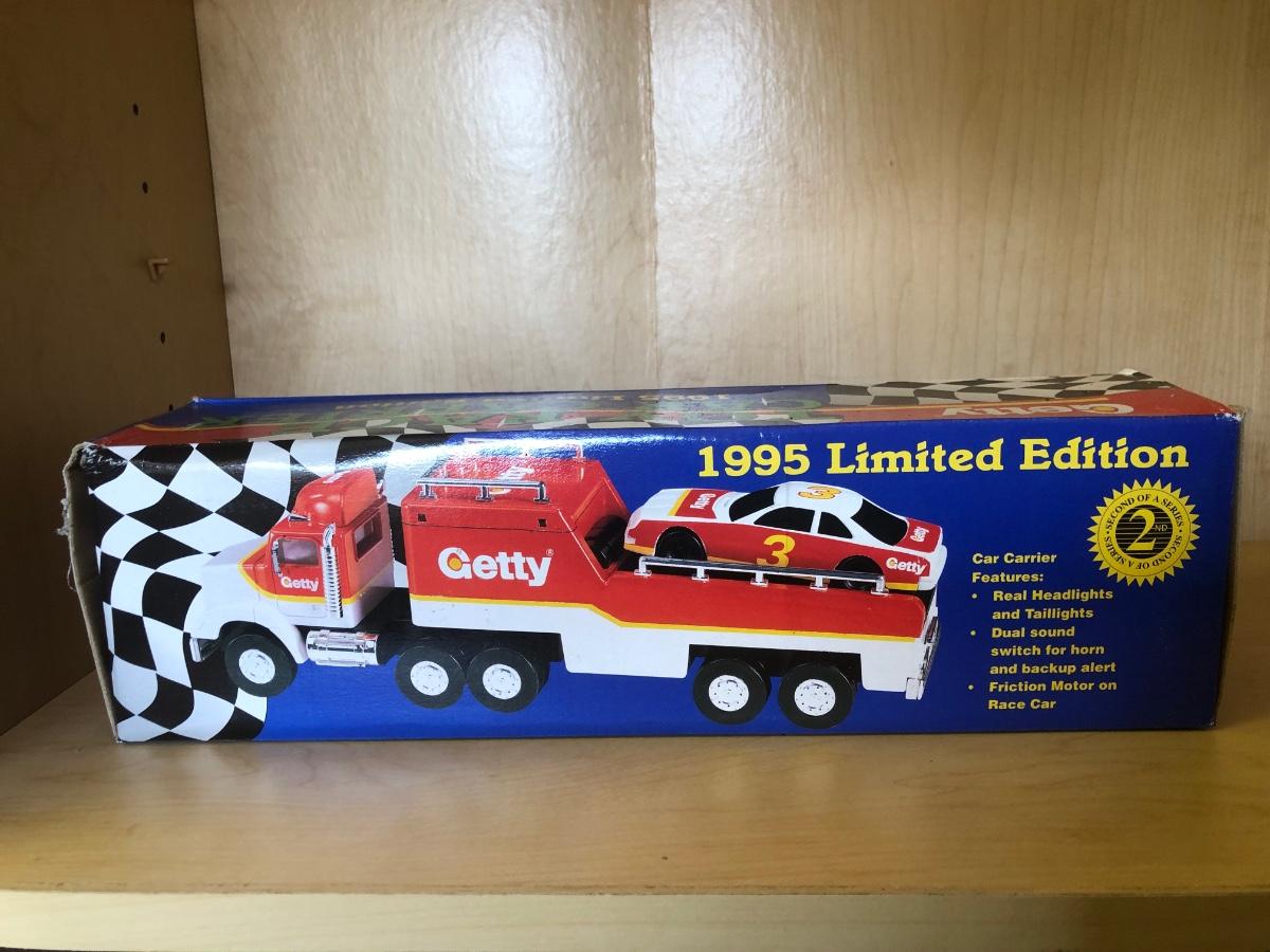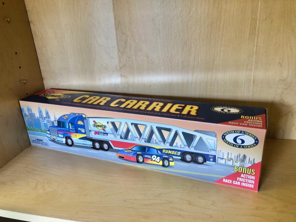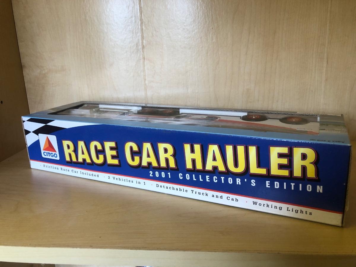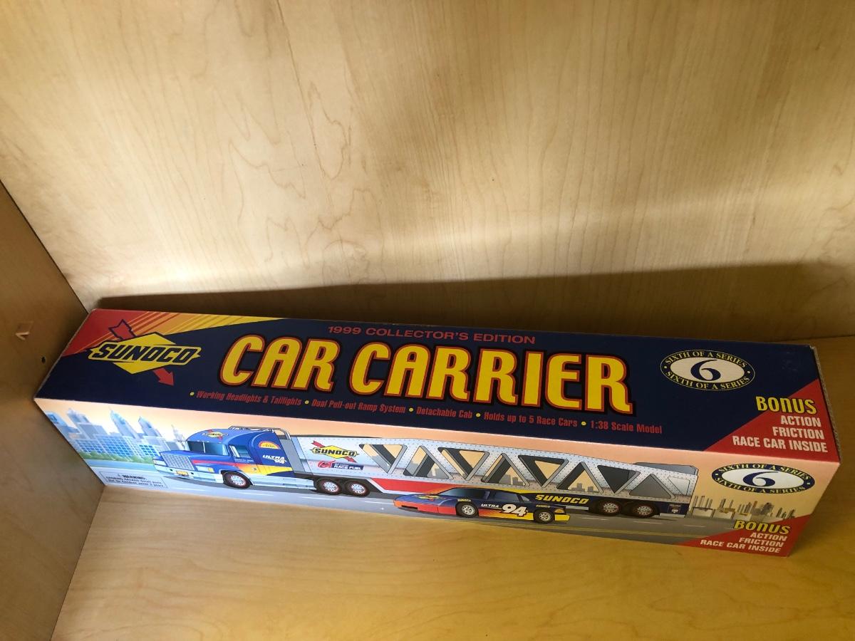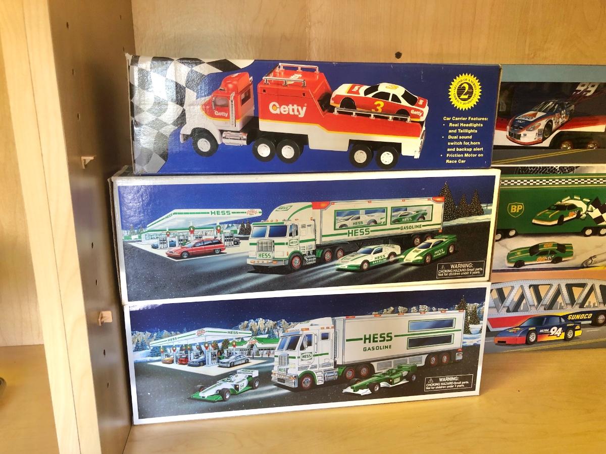 LOT 233: Collectible Race Car Carrier Trucks - BP, Mobil, Hess, Getty, Sunoco & Citgo
