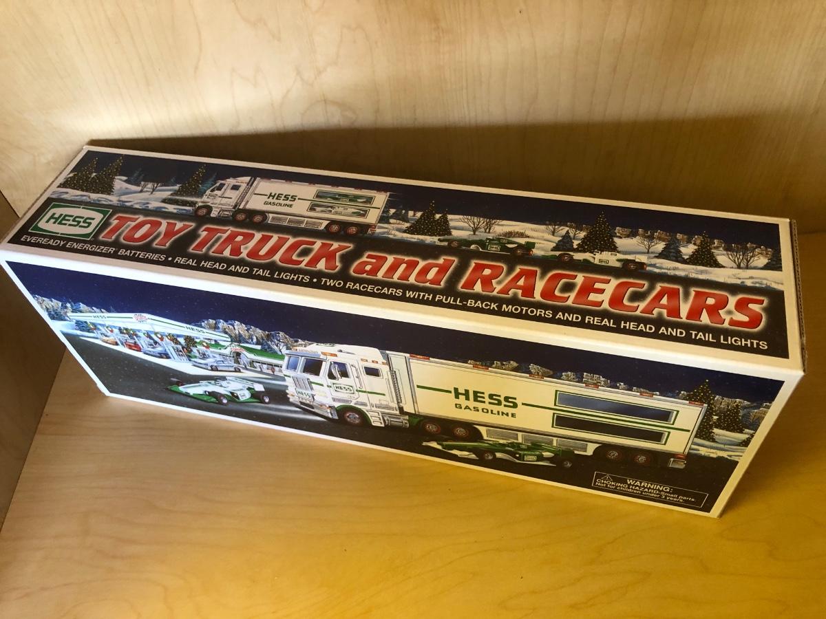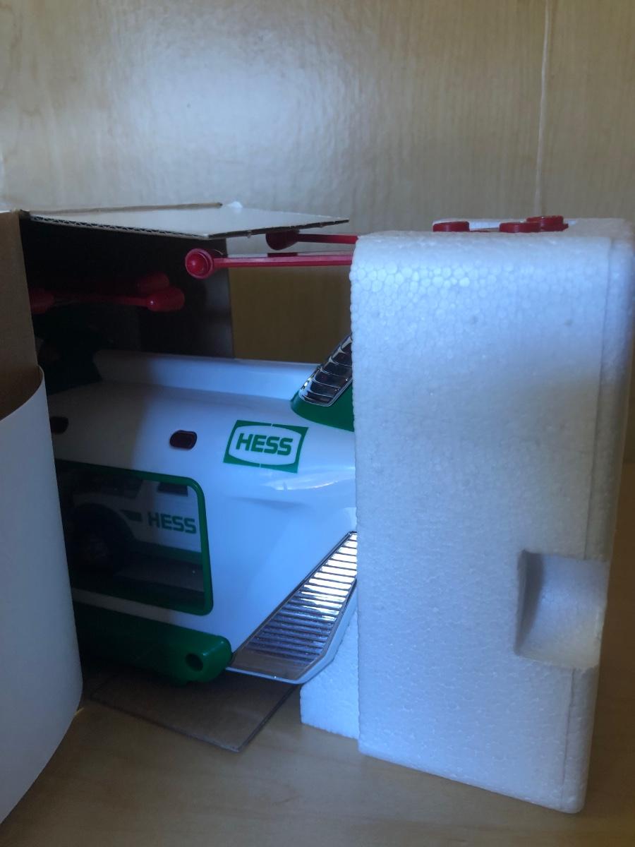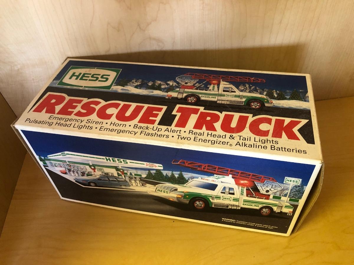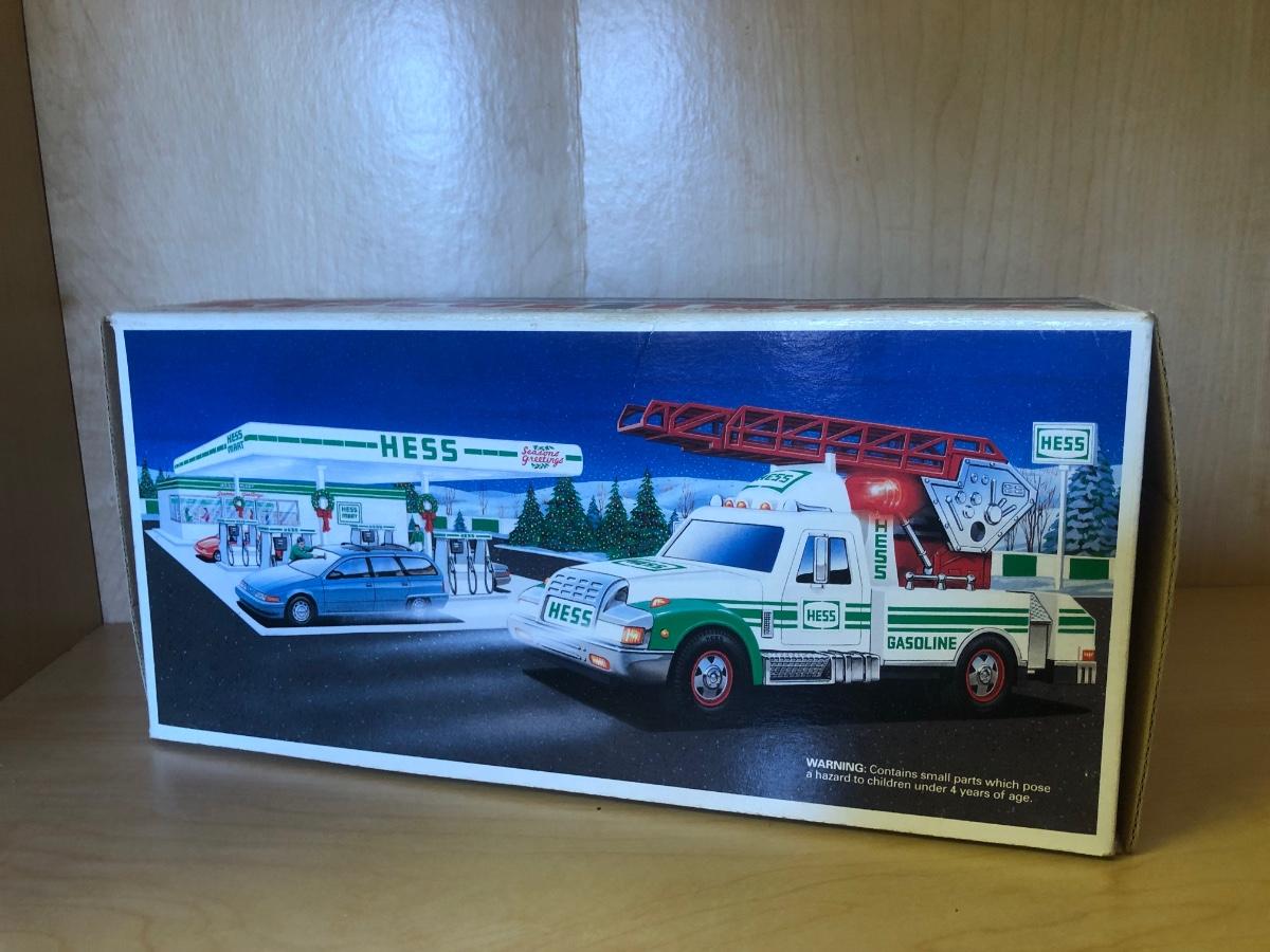 LOT 237: Hess Collectibles - Rescue Truck, Fire Truck, Toy Truck & Racecars, Toy Truck & Airplane, Helicopter w/ Motorcycle & Cruiser