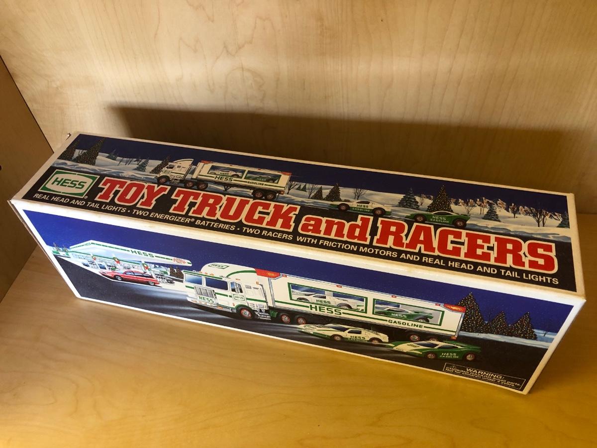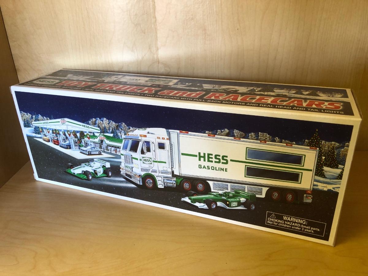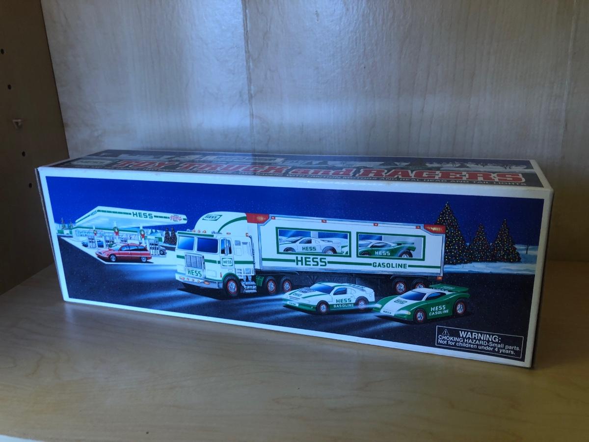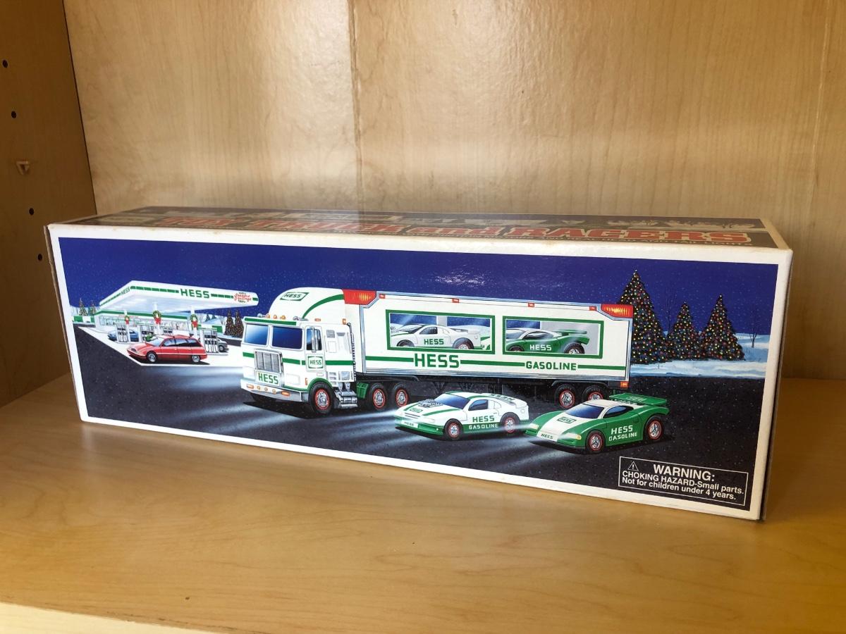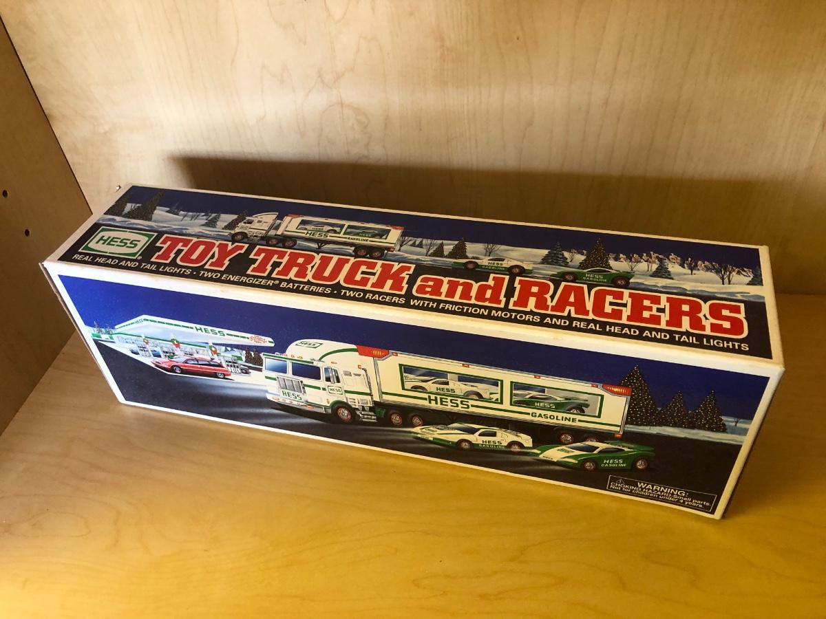 LOT 237: Hess Collectibles - Rescue Truck, Fire Truck, Toy Truck & Racecars, Toy Truck & Airplane, Helicopter w/ Motorcycle & Cruiser