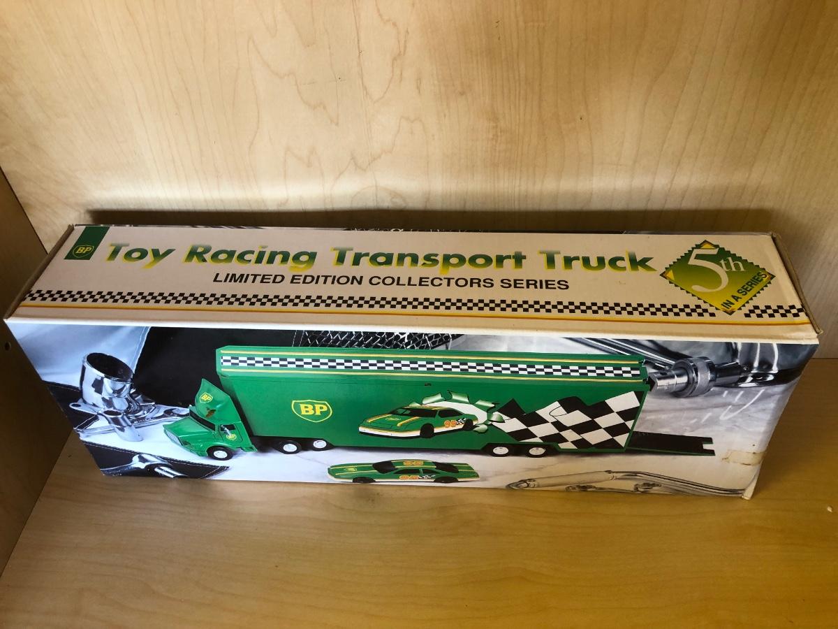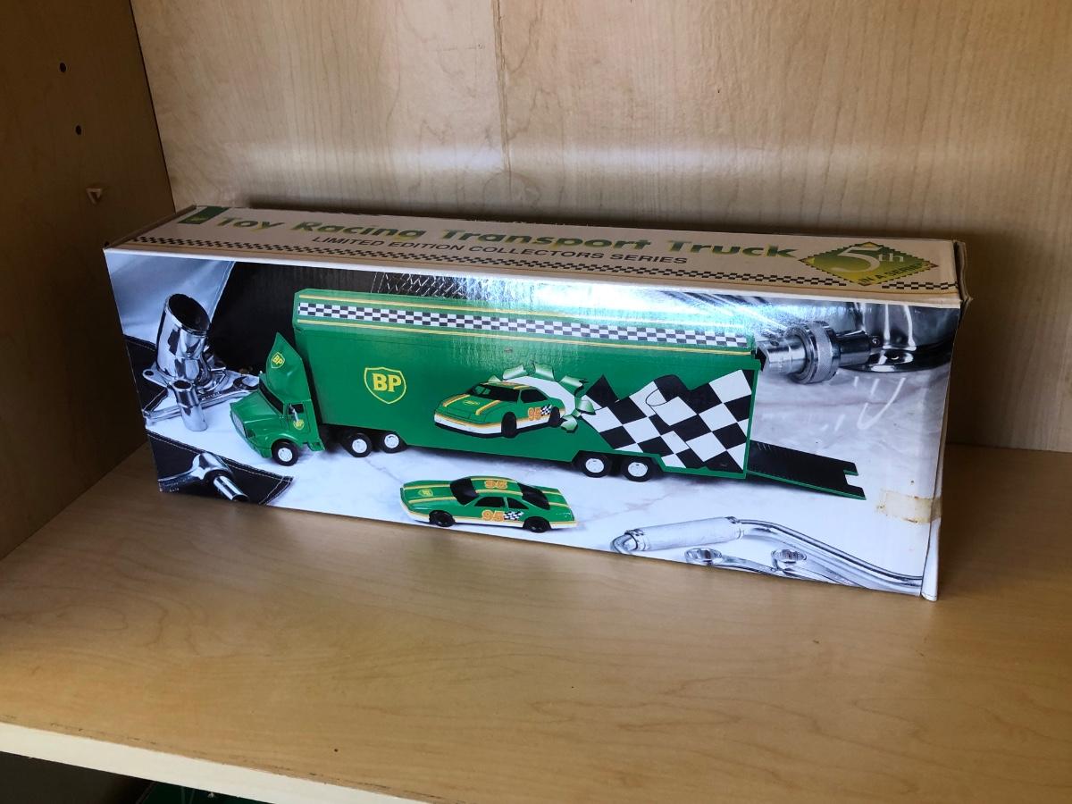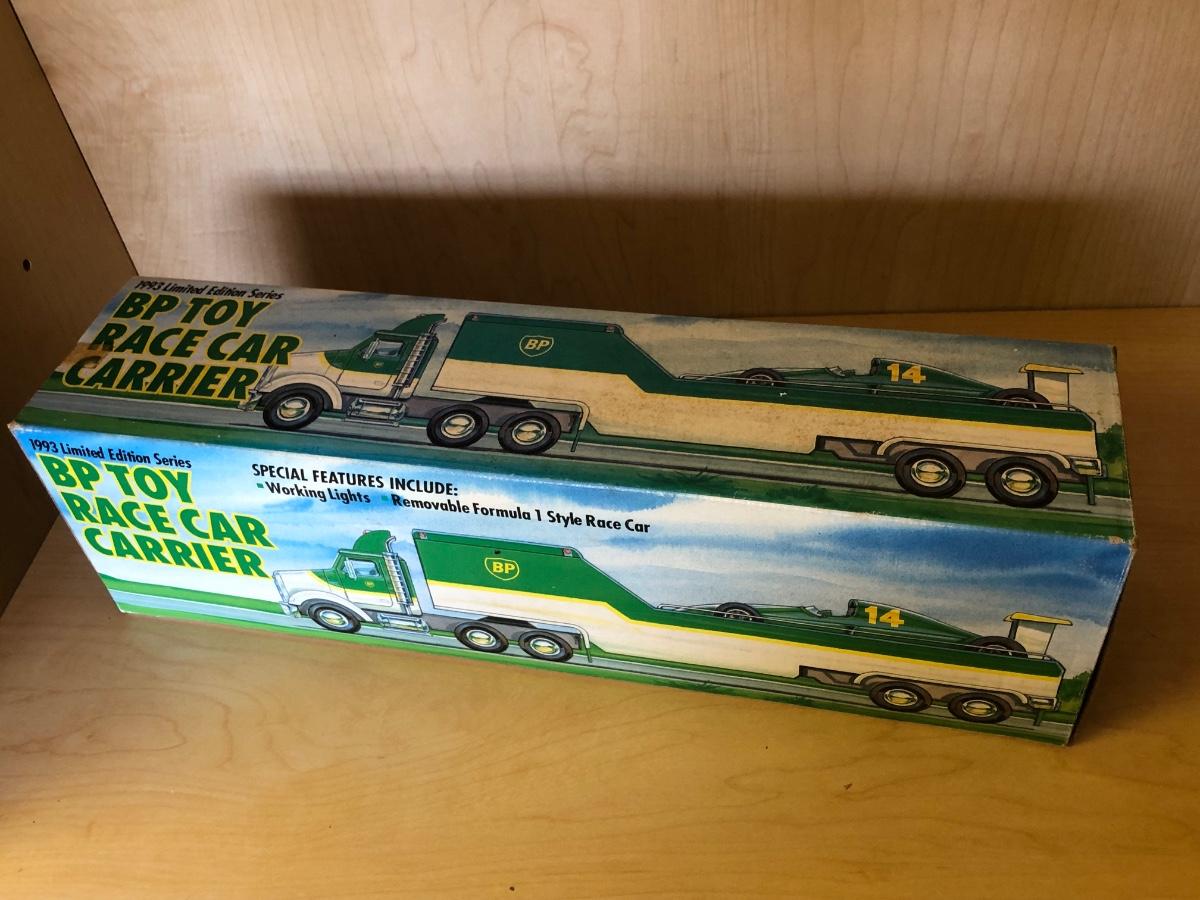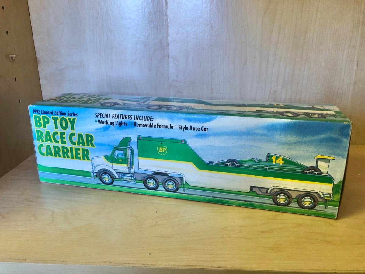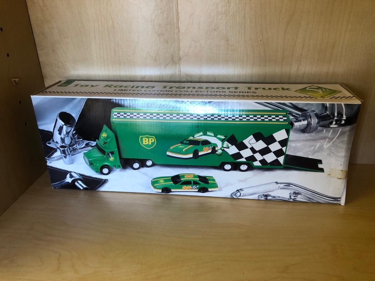 LOT 238: BP Collection - Build Your Own BP Model Service Station, Toy Tanker Truck, Toy Race Car Carrier, Aviation Tanker & More