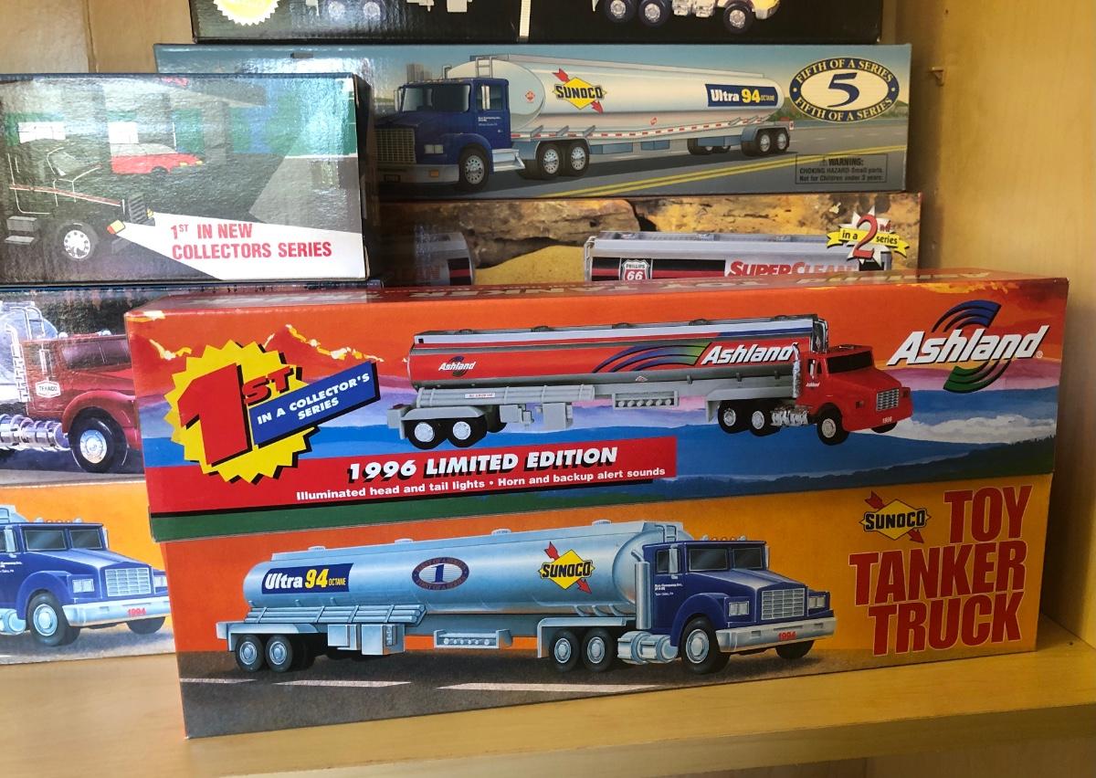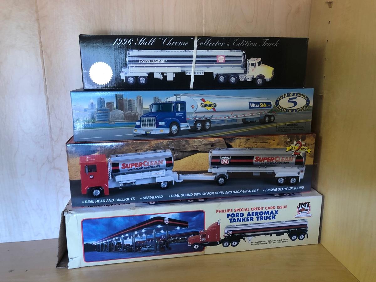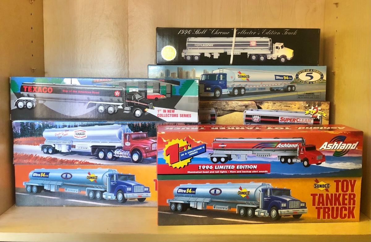 LOT 239: Collectible Tanker Trucks - 1996 Shell Chrome Collector's Edition, Sunoco 5th in Series, Texaco 1st in Series, 1996 Ltd Ed Ashland 1st in Series, Sunoco & More