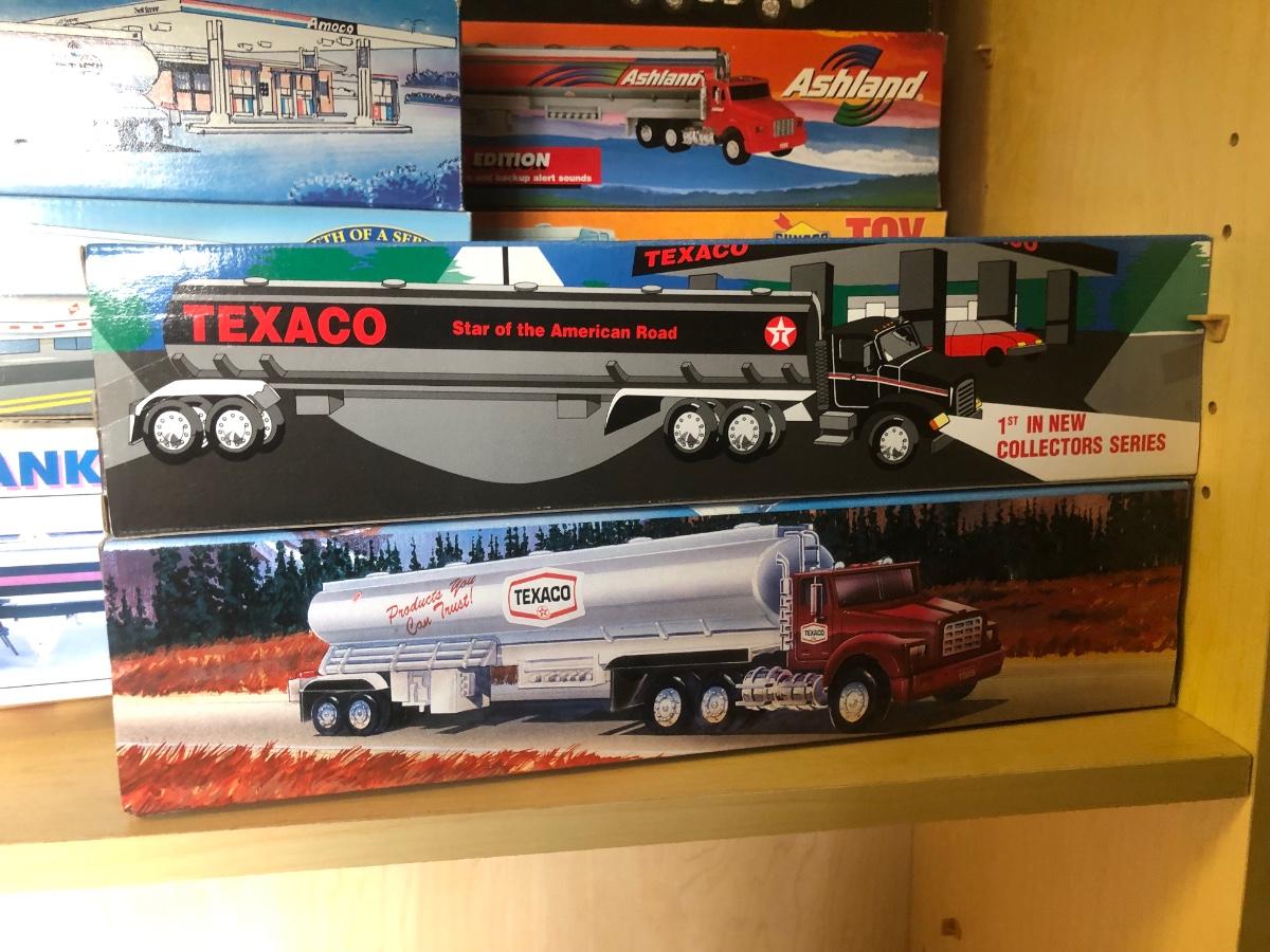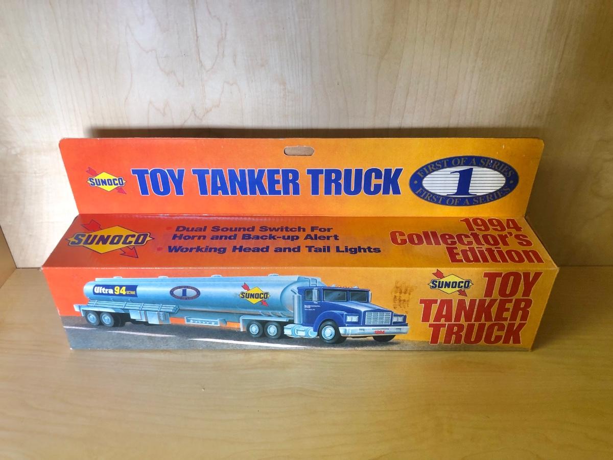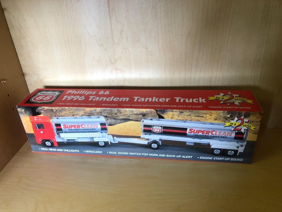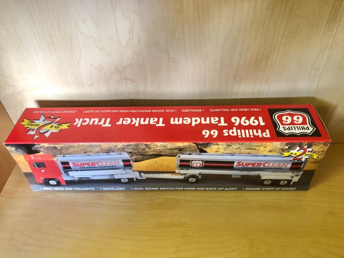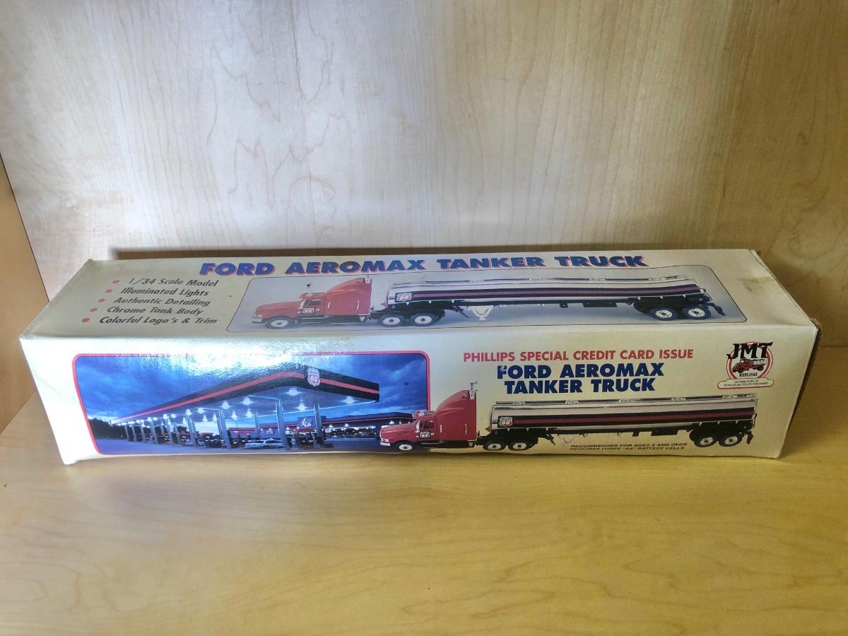 LOT 241: Collectible Toy Tanker Trucks - 1996 Shell Chrome Collector's Edition, Amoco, Phillips 66 Ford Aeromax, 1994 Texaco, Sunoco