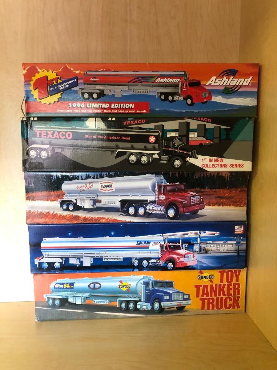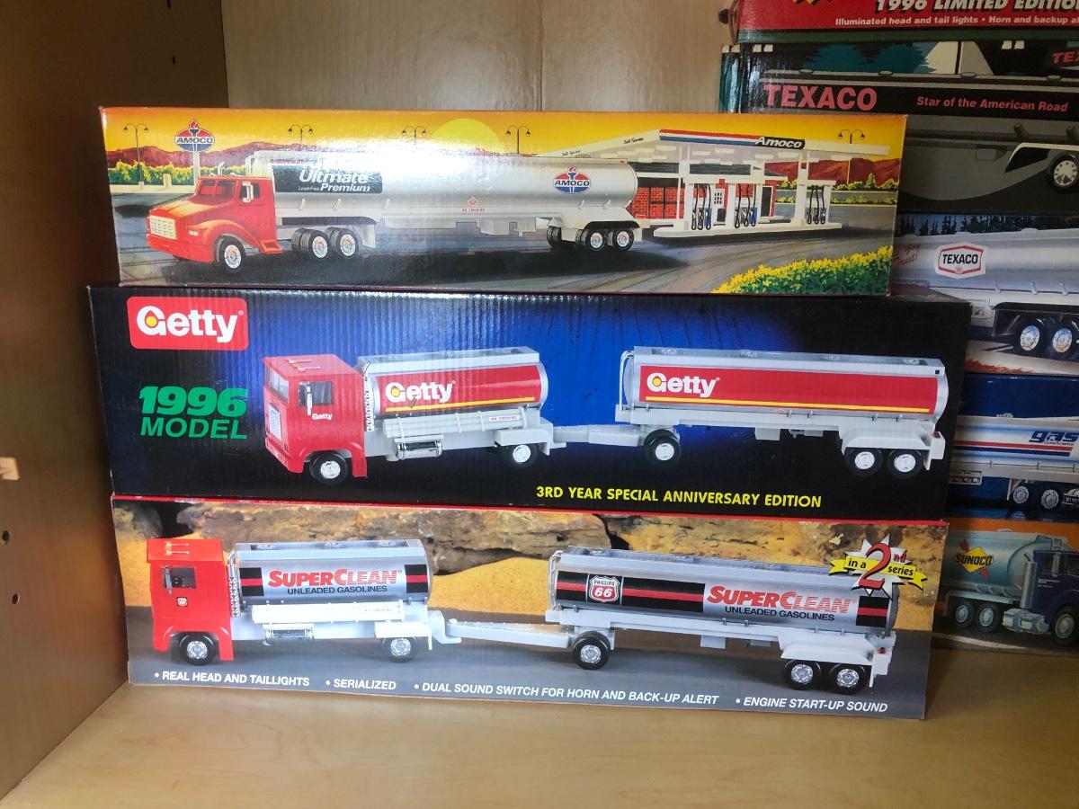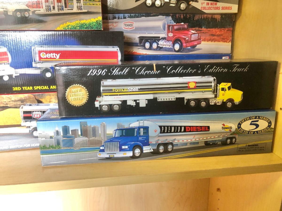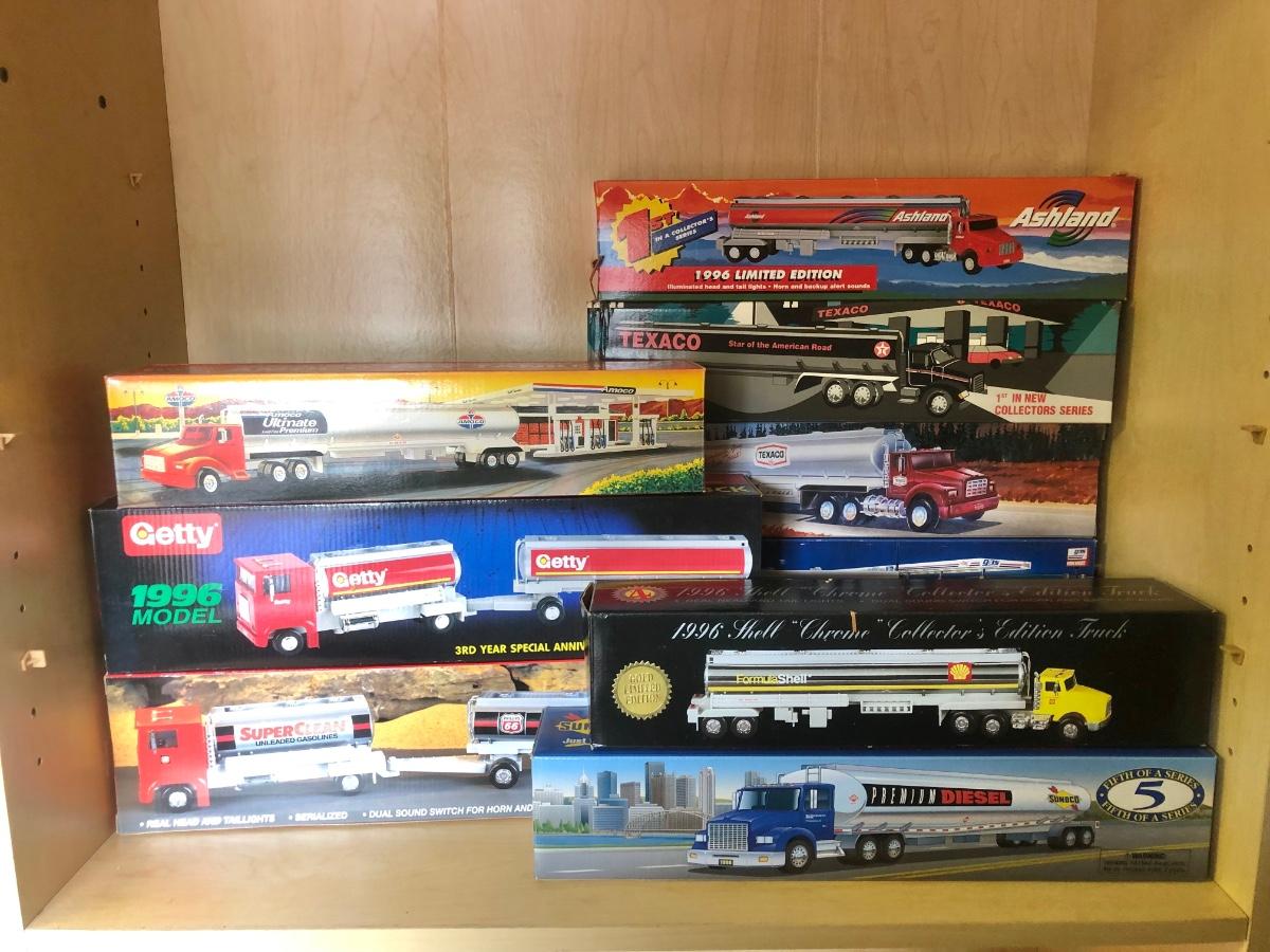 LOT 242: Collectible Toy Tanker Trucks - 1996 Shell Chrome Collector's Edition, Getty 1996 Model, 1996 Ashland, Texaco, Sunoco & More