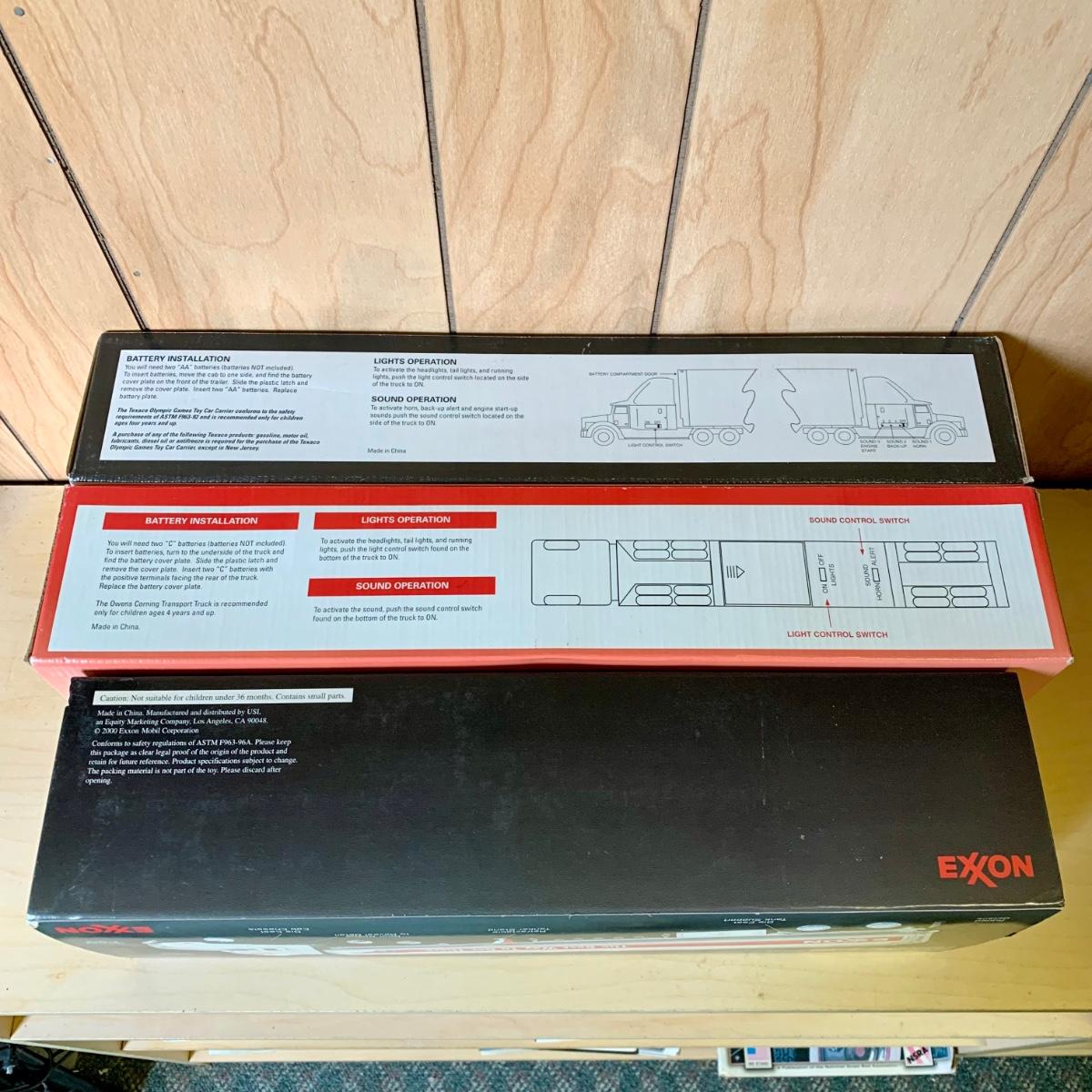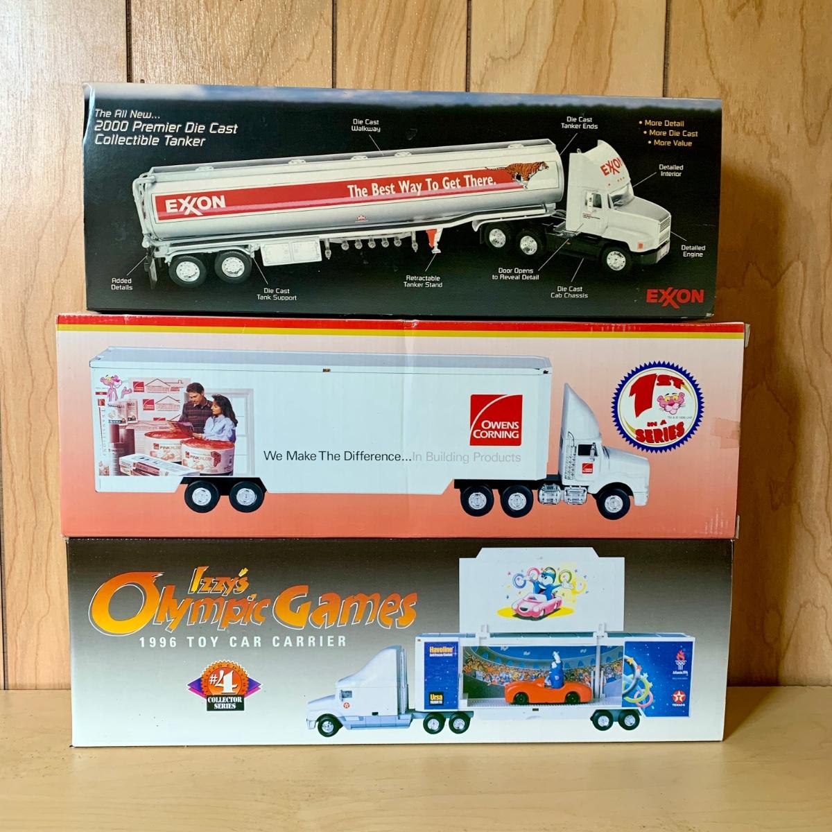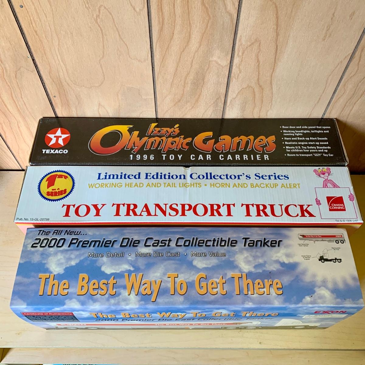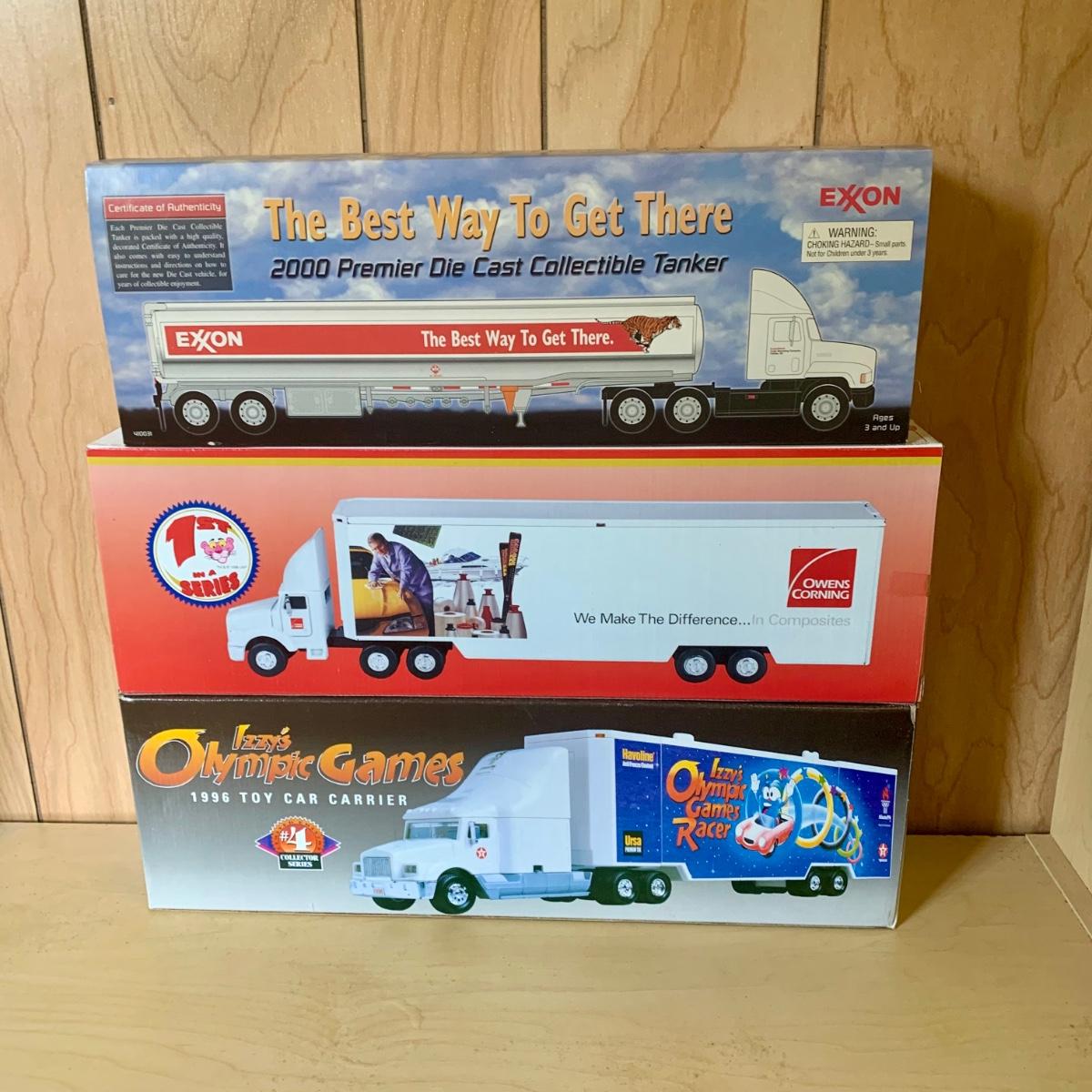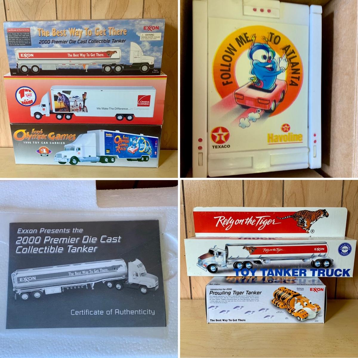 LOT 244: 2000 Exxon Premier Die-Cast Collectible Tanker, 1st in Series Owens Corning Limited Edition Toy Transport Truck, Texaco, & More